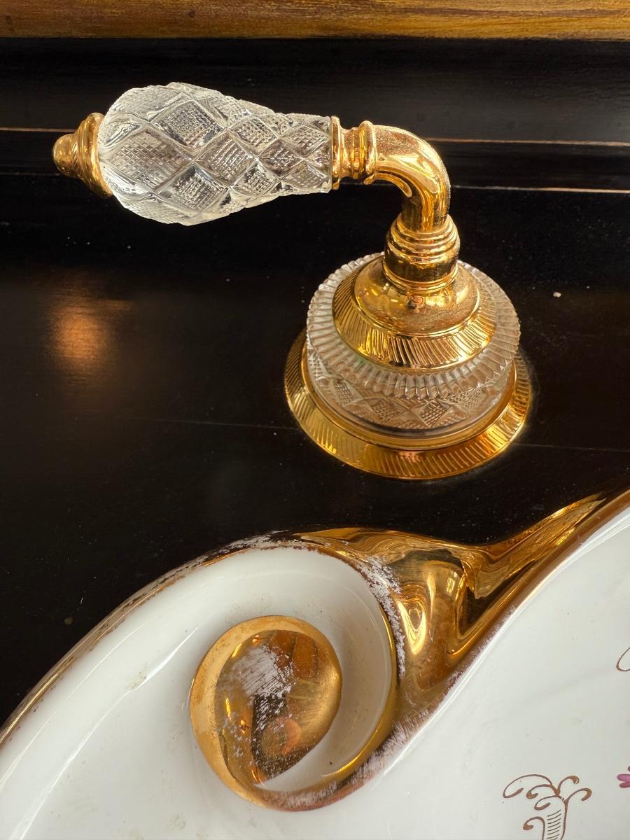 The sink is upgraded with Sigma 3200 Series Luxembourg Crystal hot and cold levers.