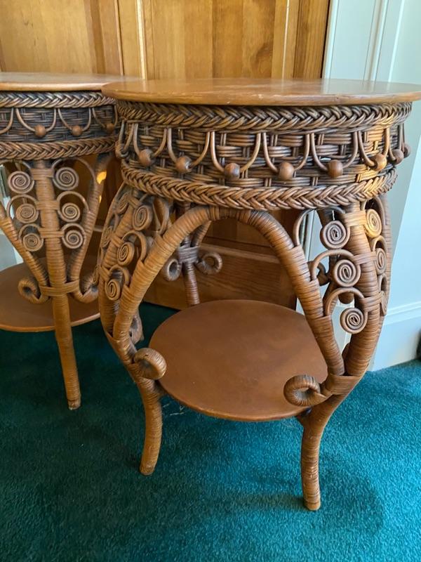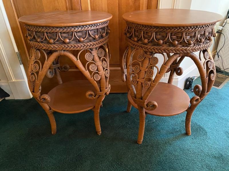 A Pair of Rattan End Tables - measures 24.75” Tall x 16.25” Round