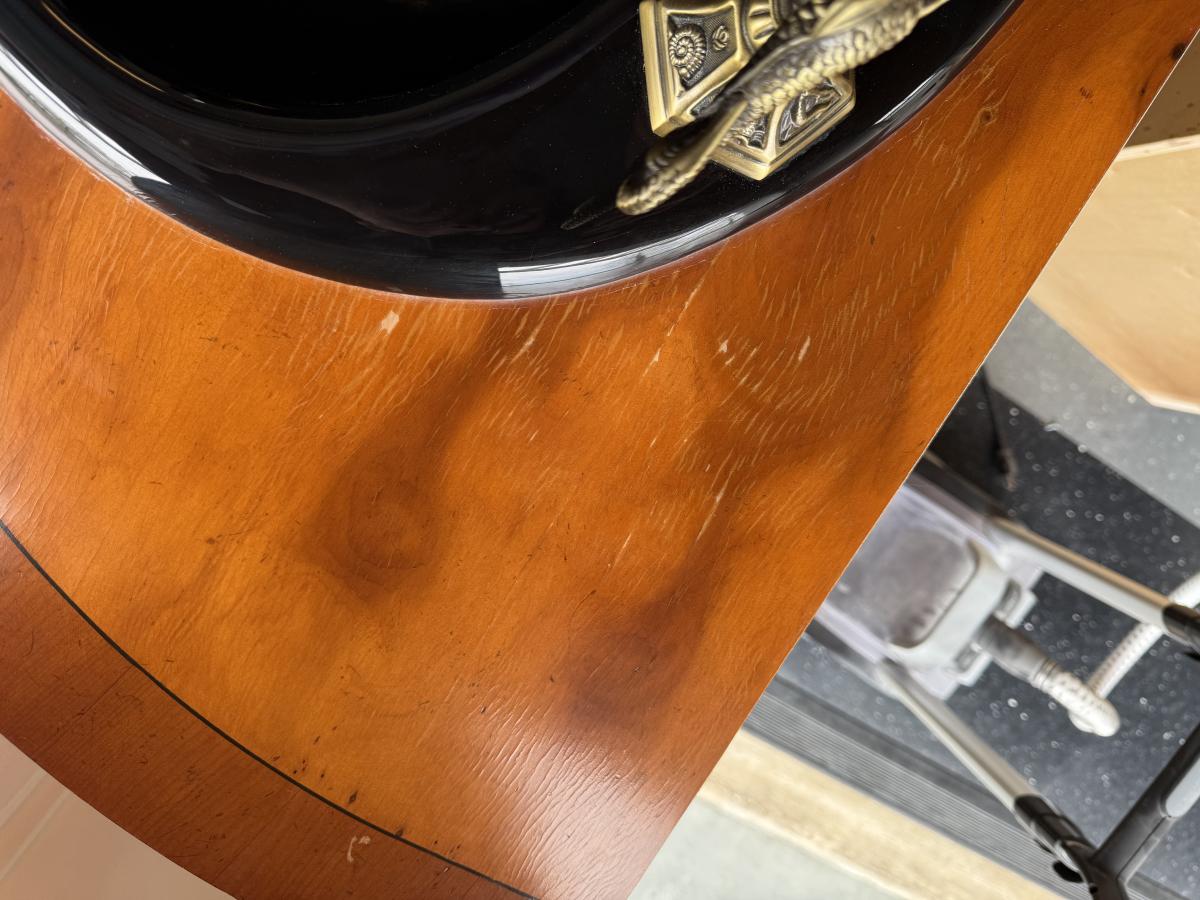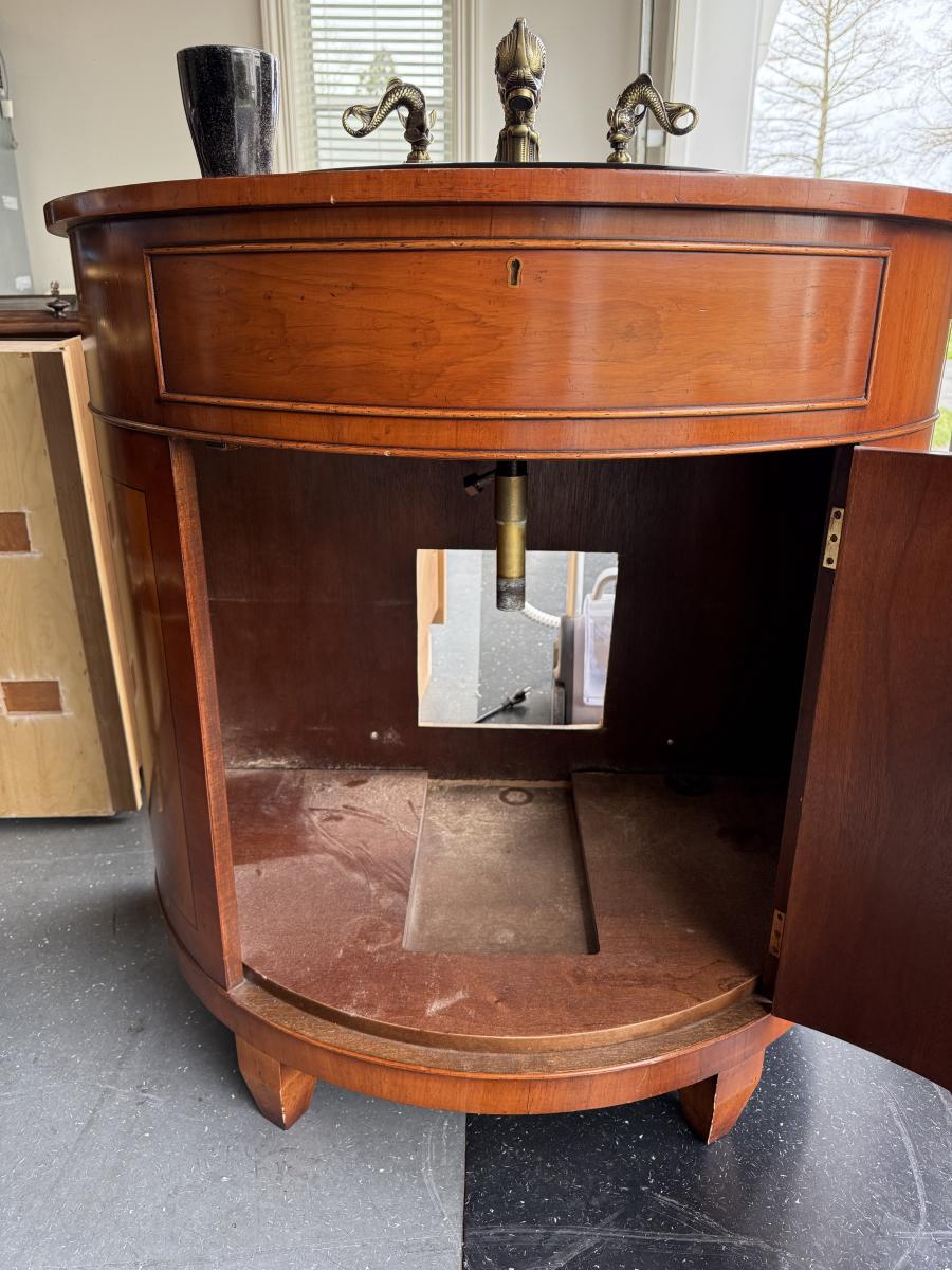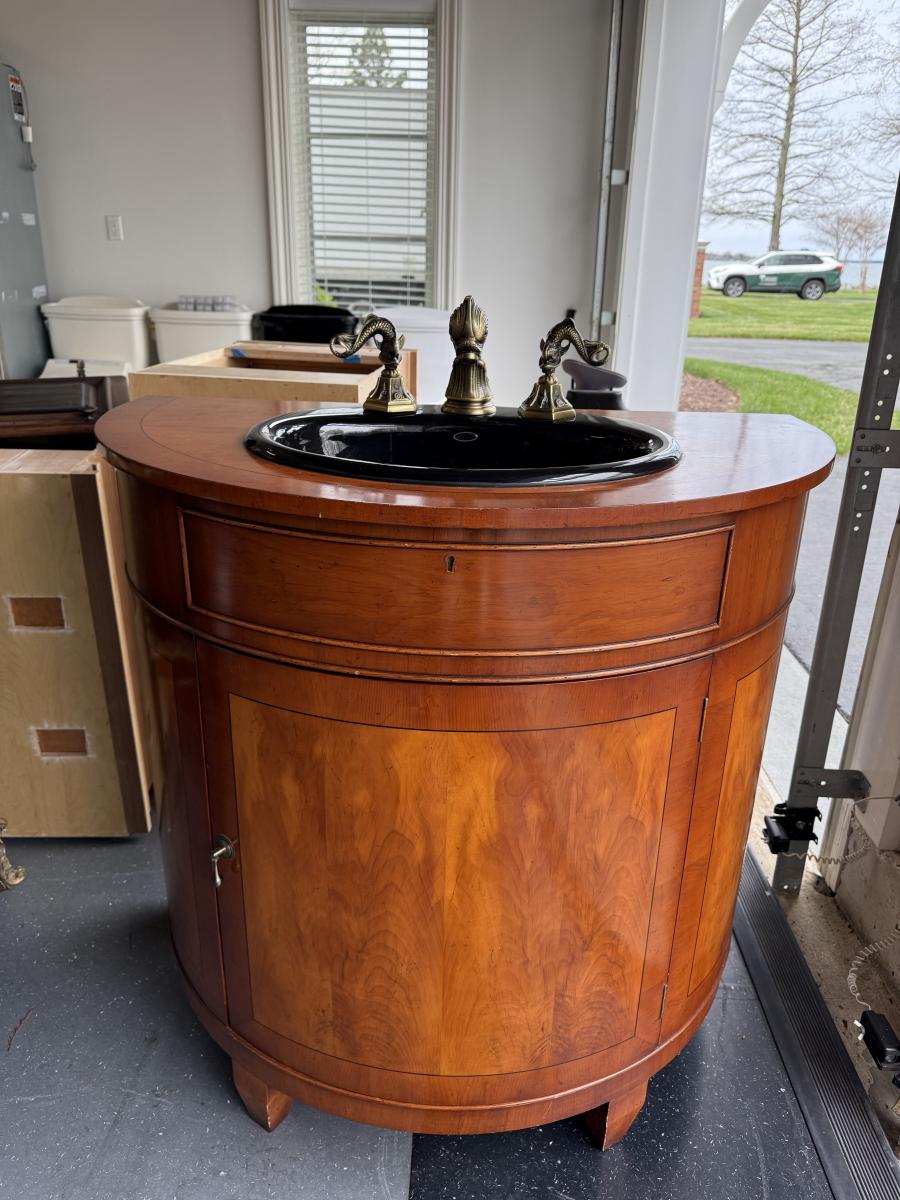 Great addition to any bathroom. Does have slight water damage on top, just needs a little stain