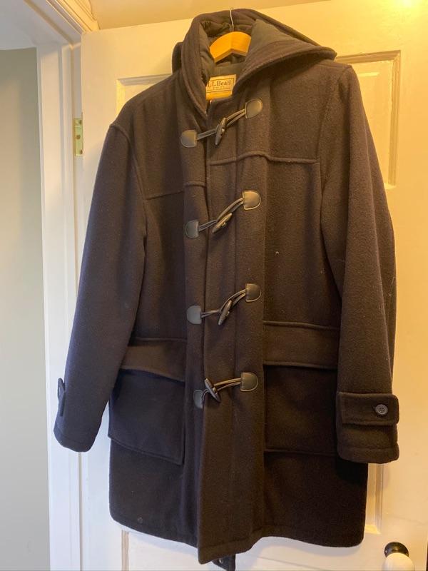 Mens L.L. Bean Hooded, Wool, 3/4 length coat, Size Regular Medium