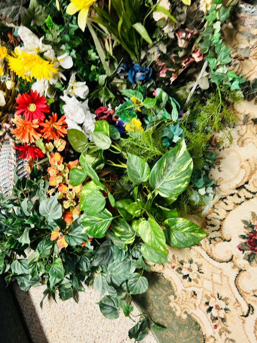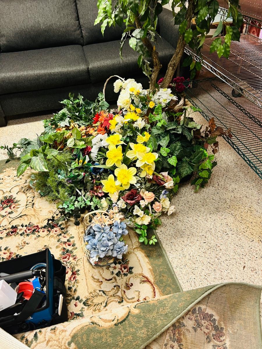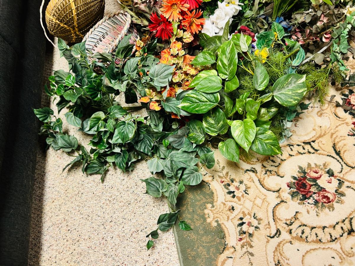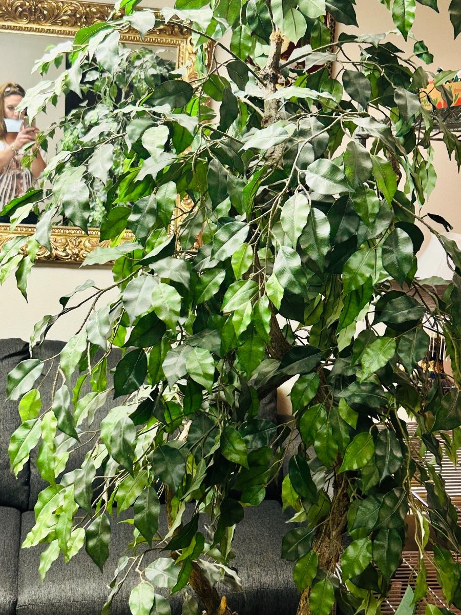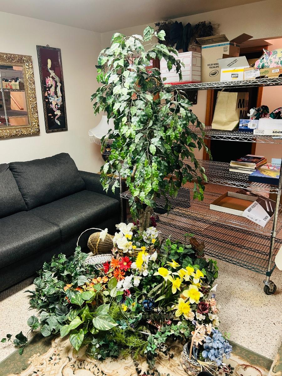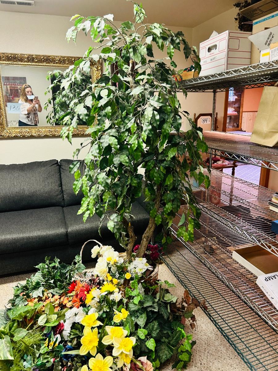 6-1/2’ FICUS TREE AND A FAUX FLOWERS & GREENERY
