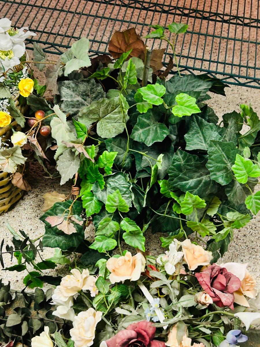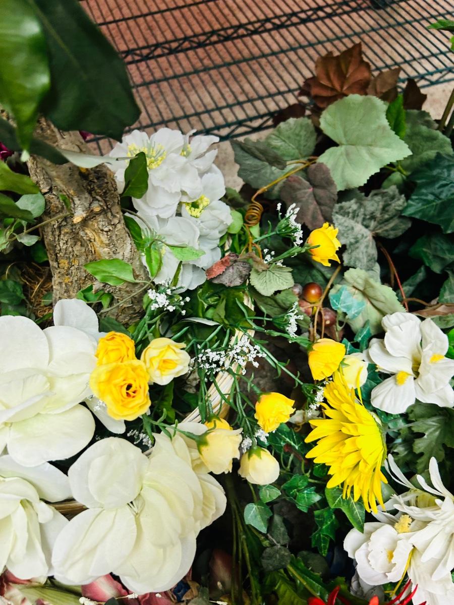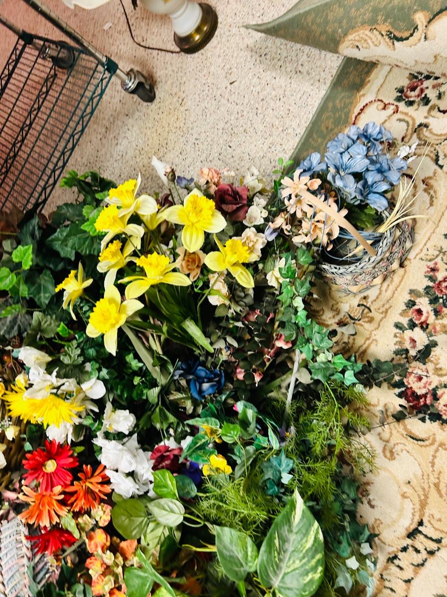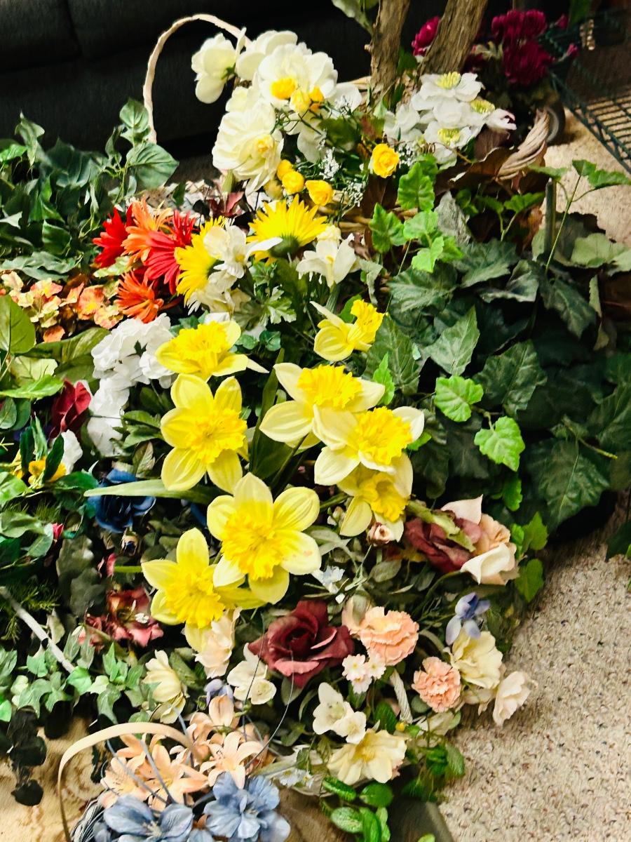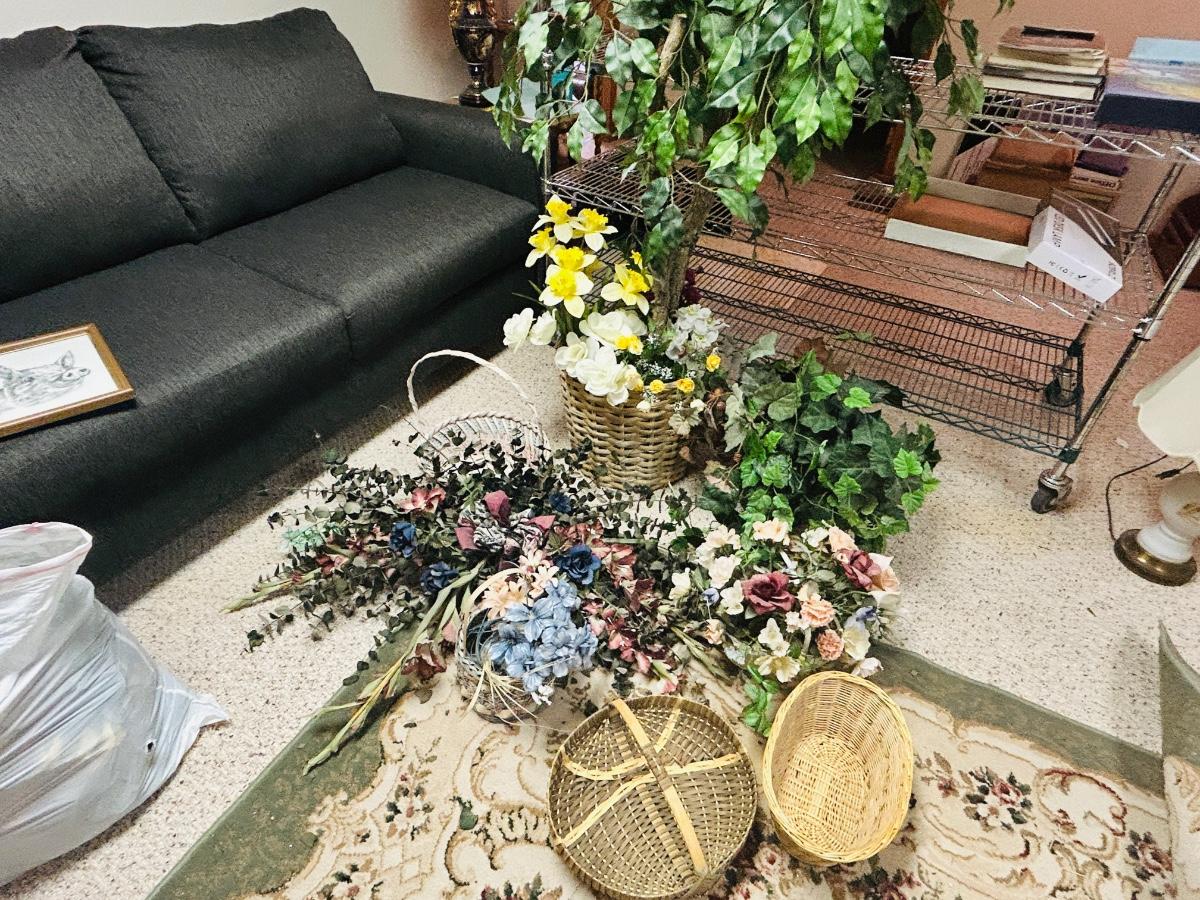 6-1/2’ FICUS TREE AND A FAUX FLOWERS & GREENERY
