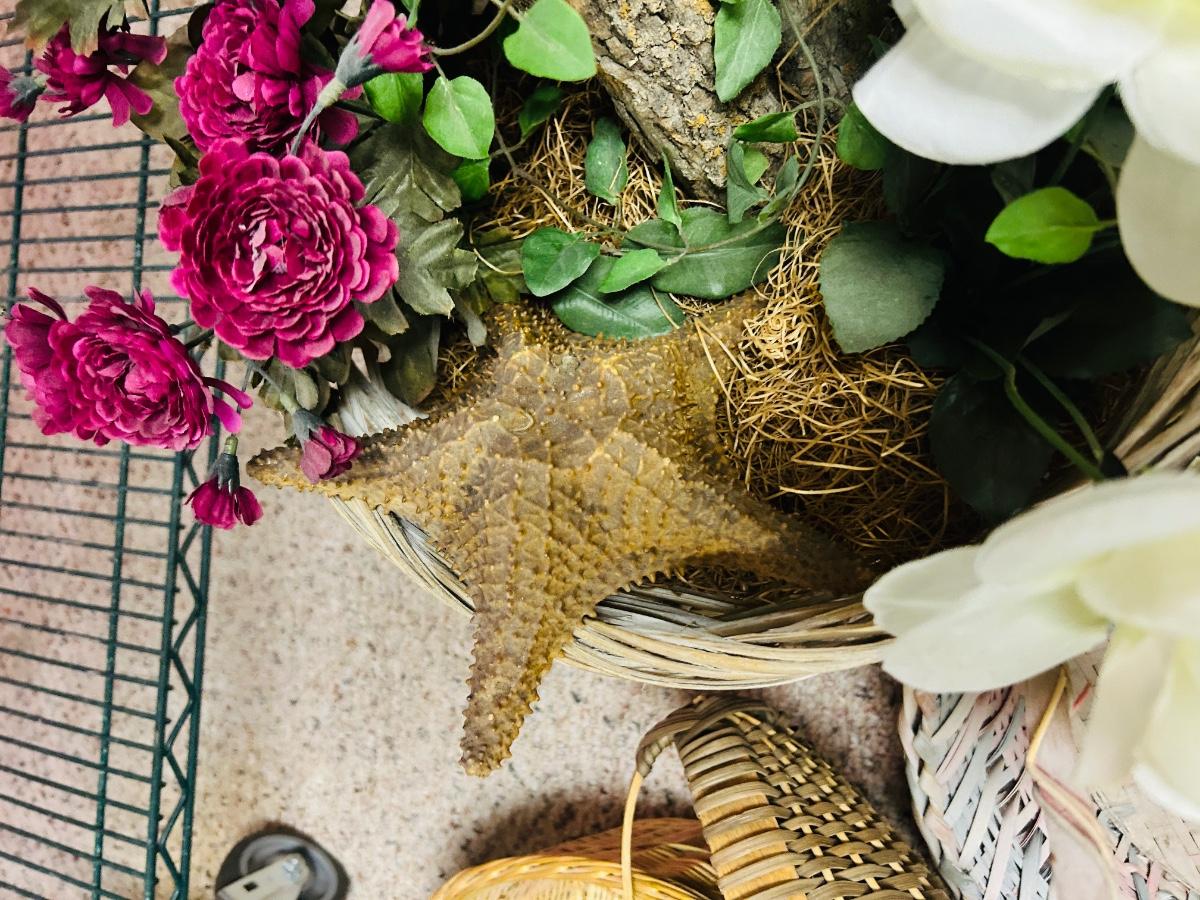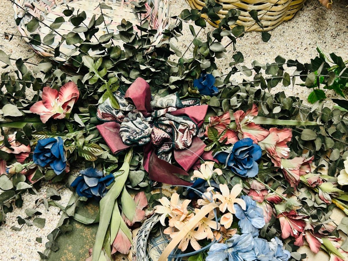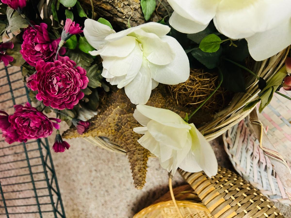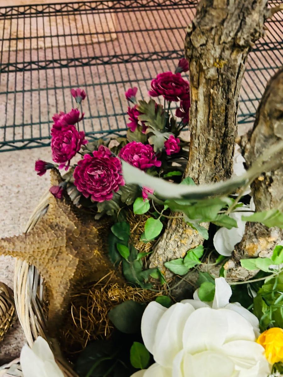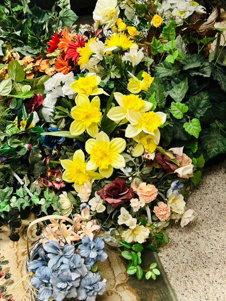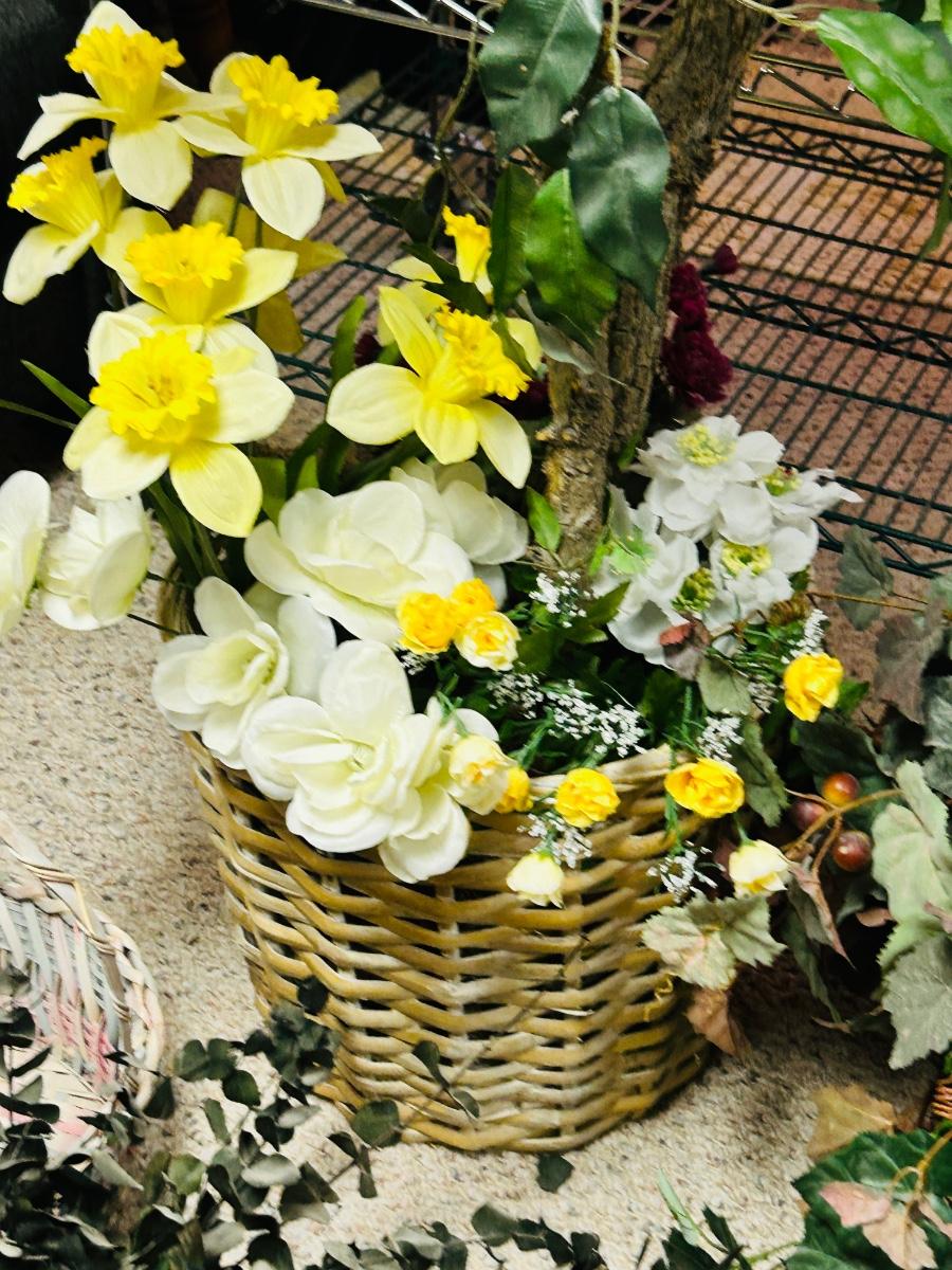 6-1/2’ FICUS TREE AND A FAUX FLOWERS & GREENERY