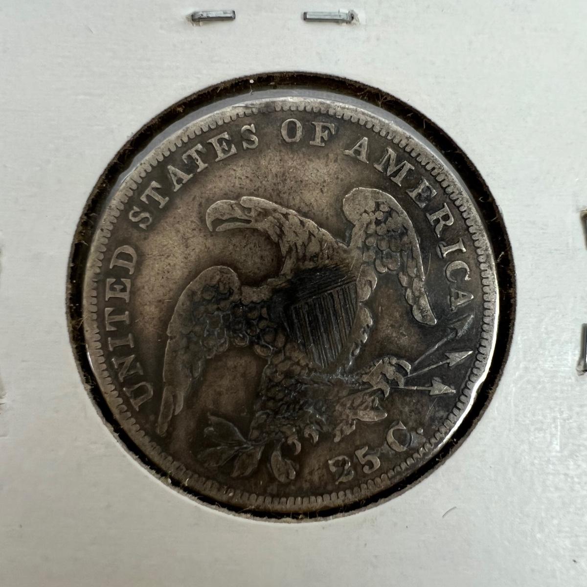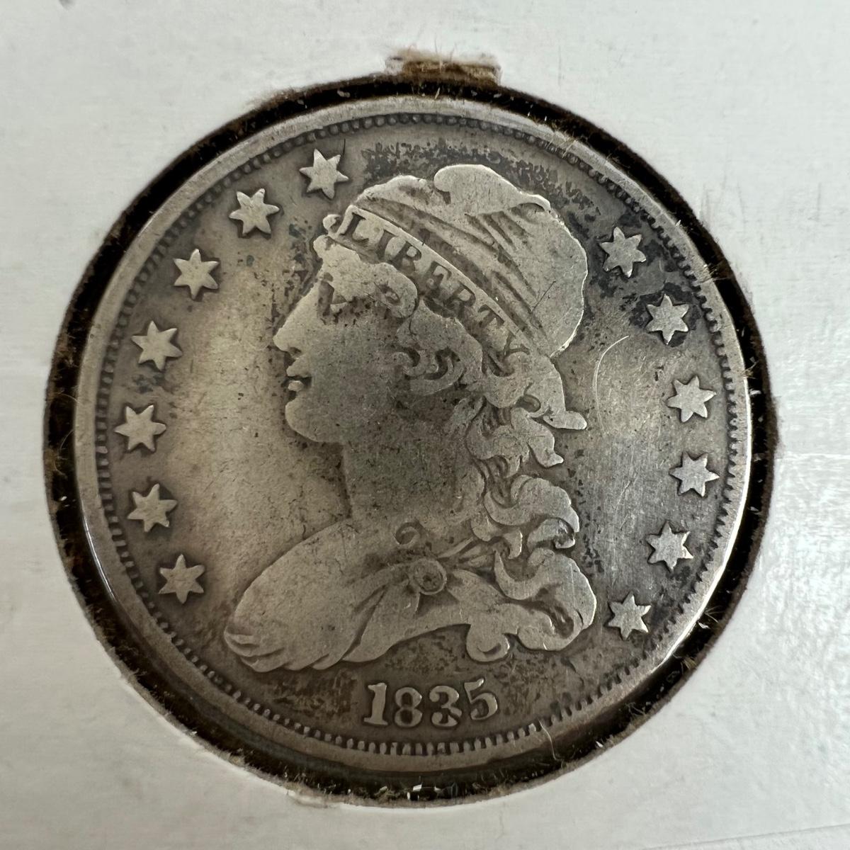 1835 Capped Bust 25 Cents (Condition VF-20) U.S. Coin.