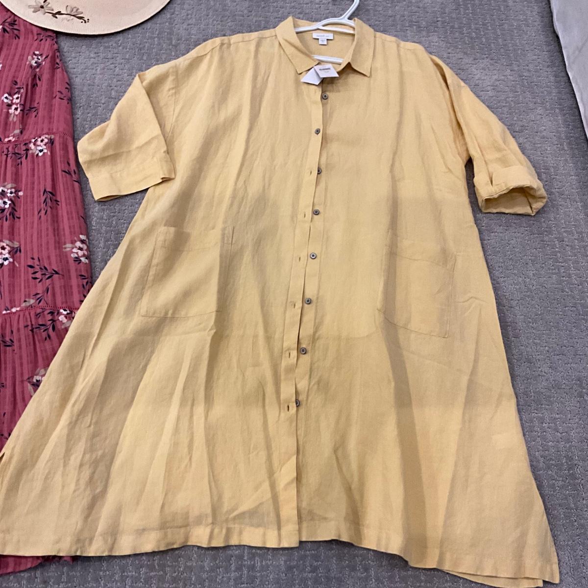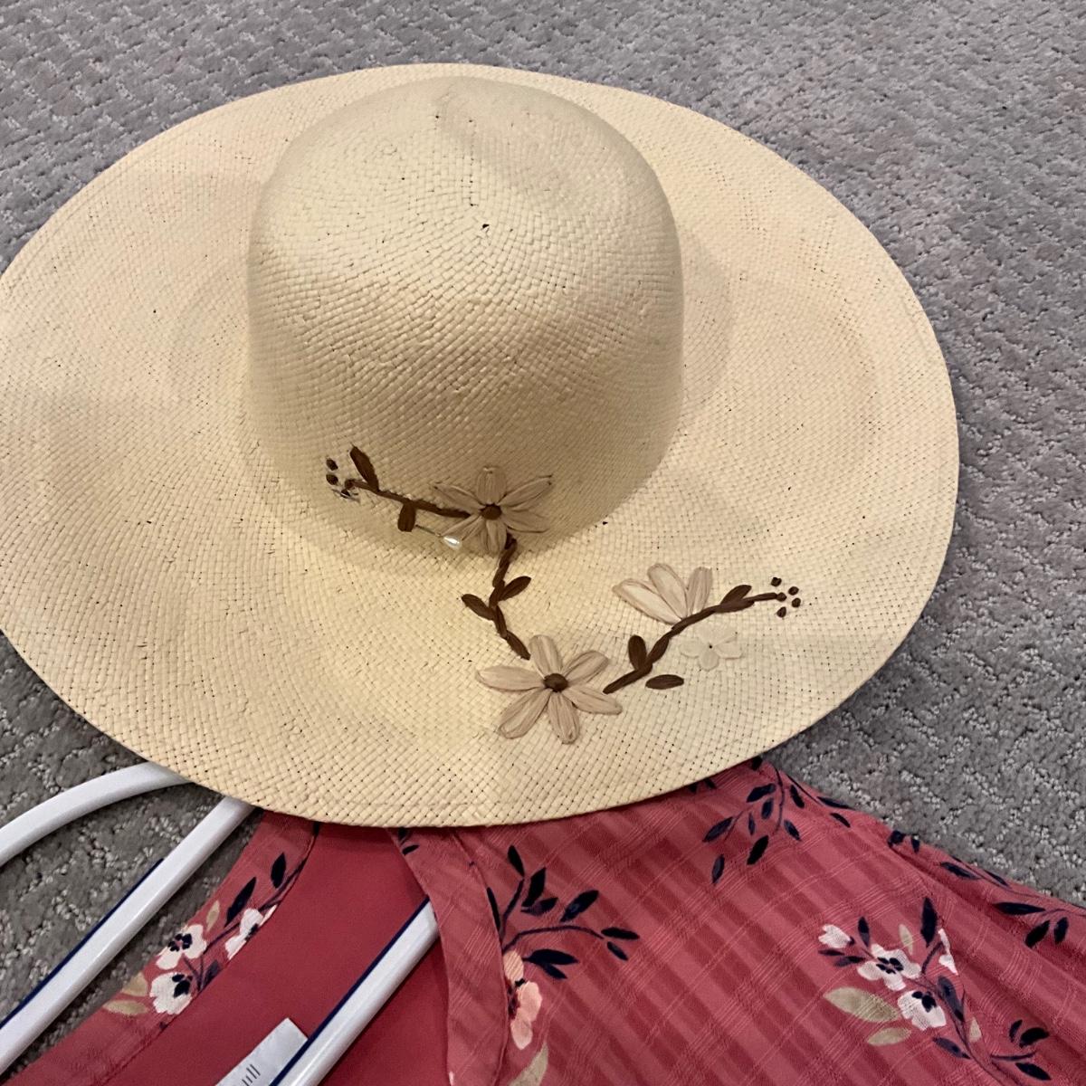 613 New with Tag J.Jill Yellow Linen Dress with Floral Dress and Panama Jack Straw Hat
