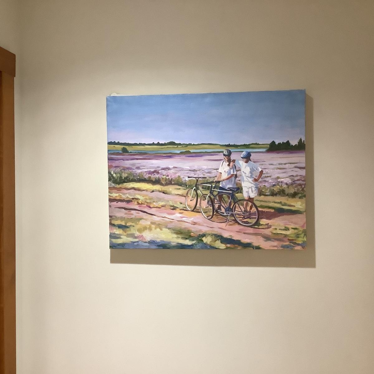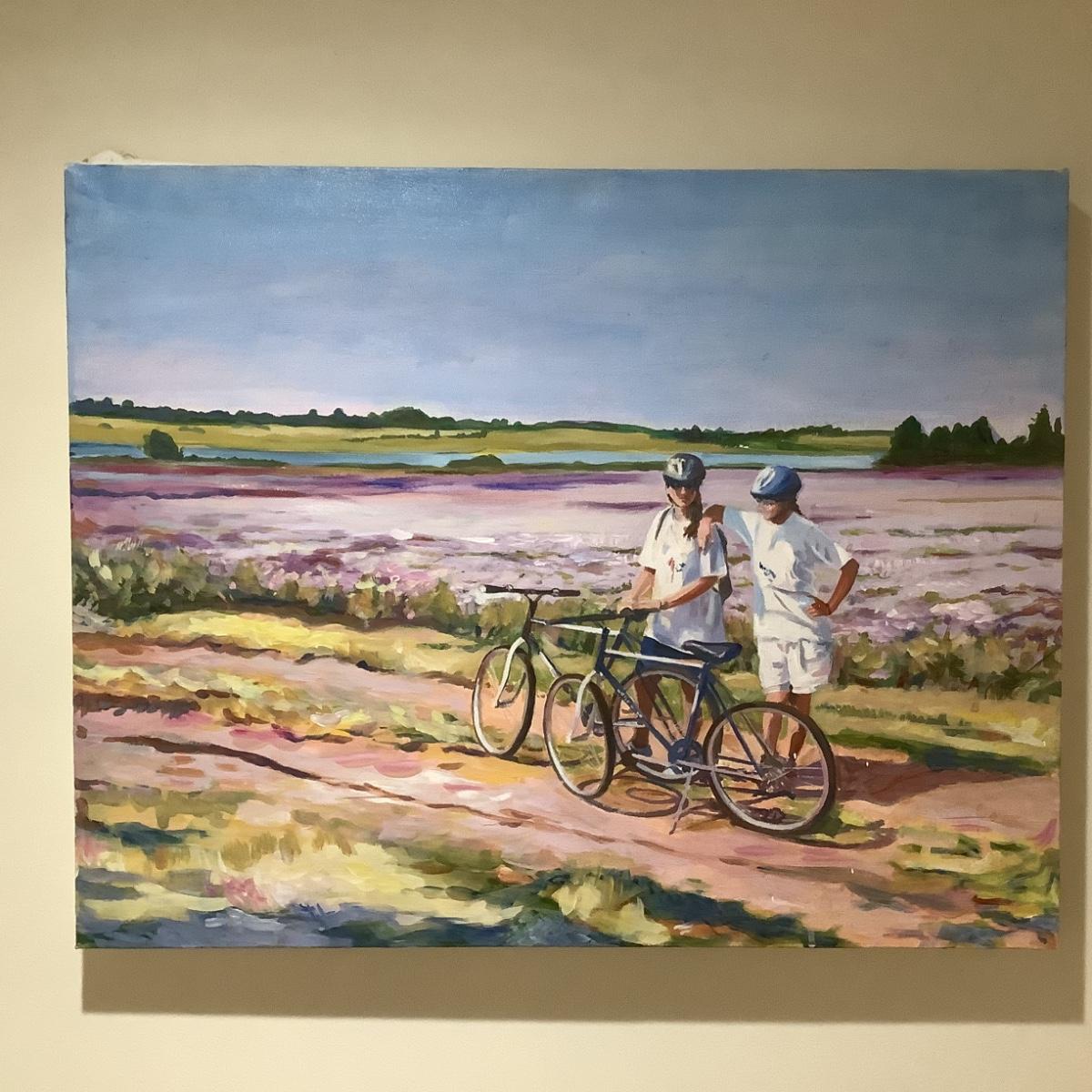 613 Original Acrylic Painting on Canvas "Bicyclers Taking Rest" by Marlen Binder