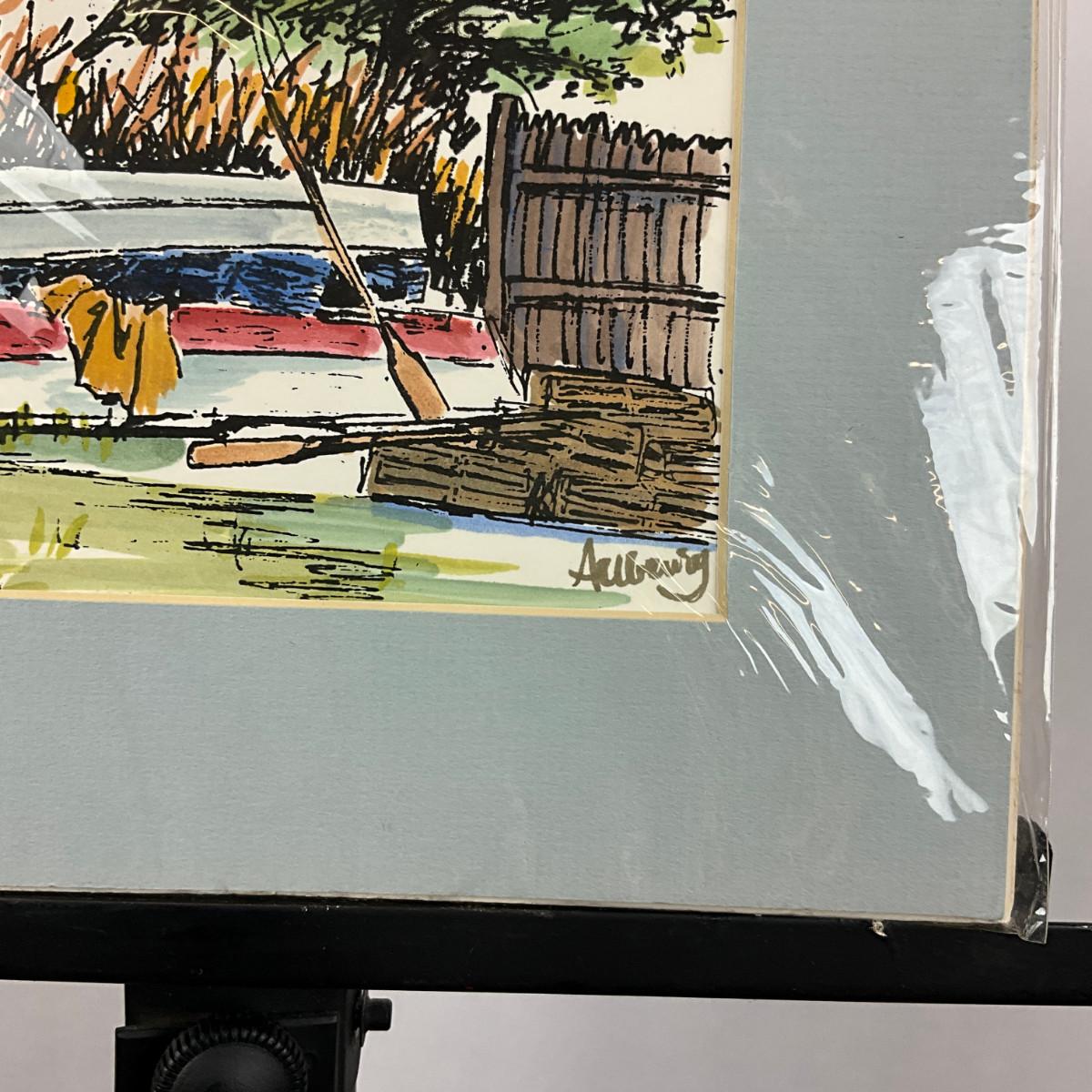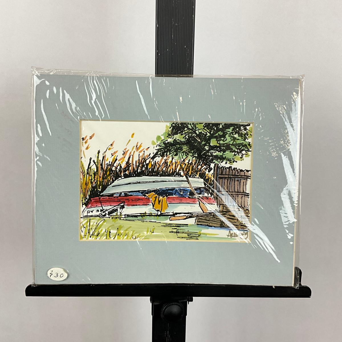 616 Hand-Watercolored Silk Screen "Backyard Boats"