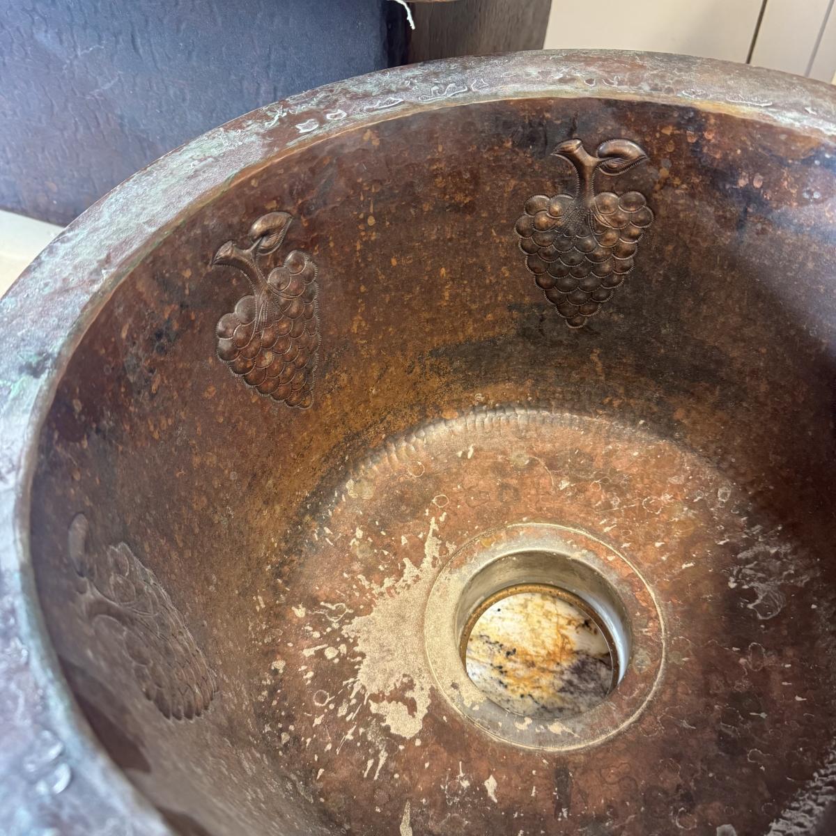 16” Diameter. A spectacular edition to any bar or serving area. Embossed with Grapevine throughout high-quality currently has a garbage disposal mount on the bottom.