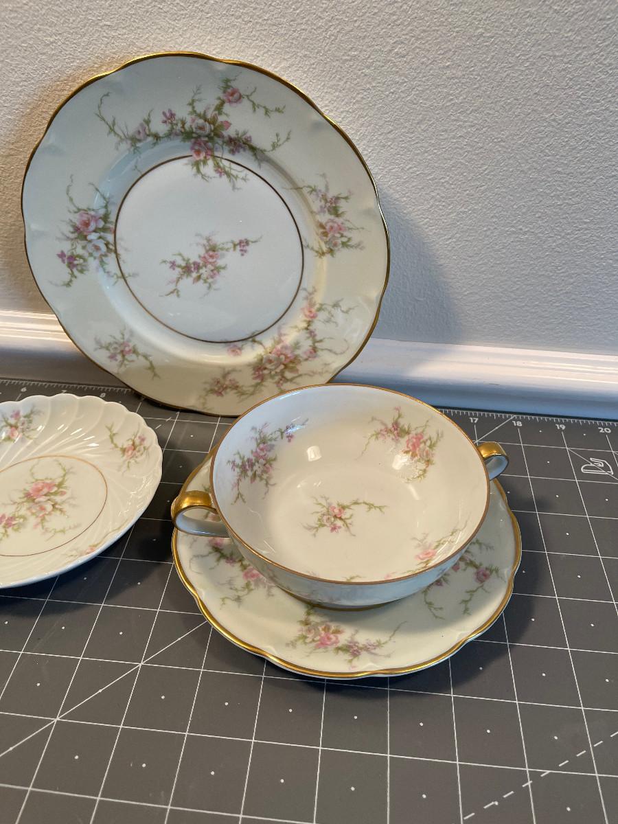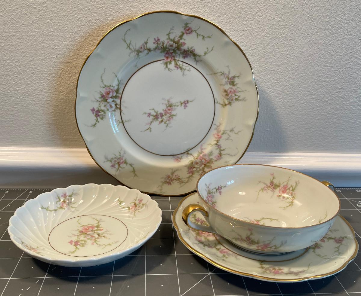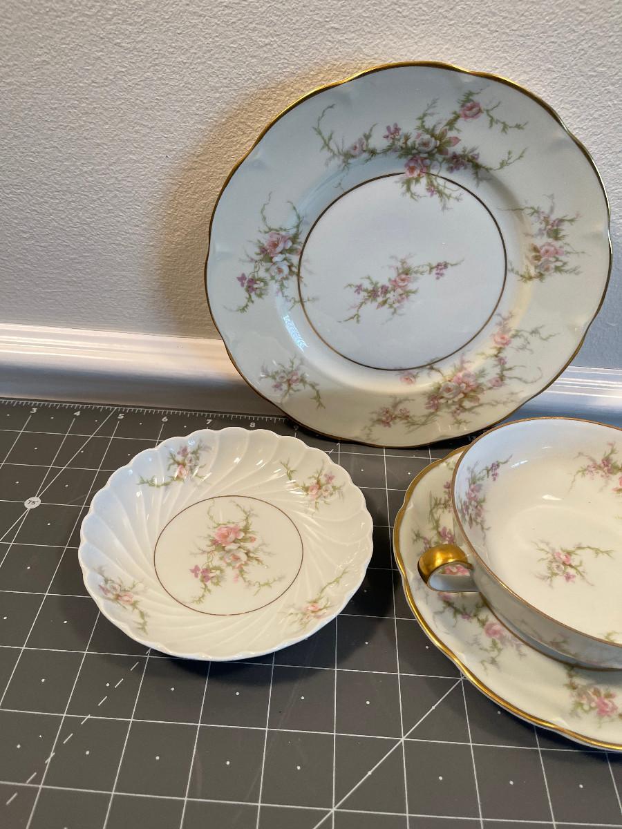 #618 Rose Linde China Plates and Small Bowl