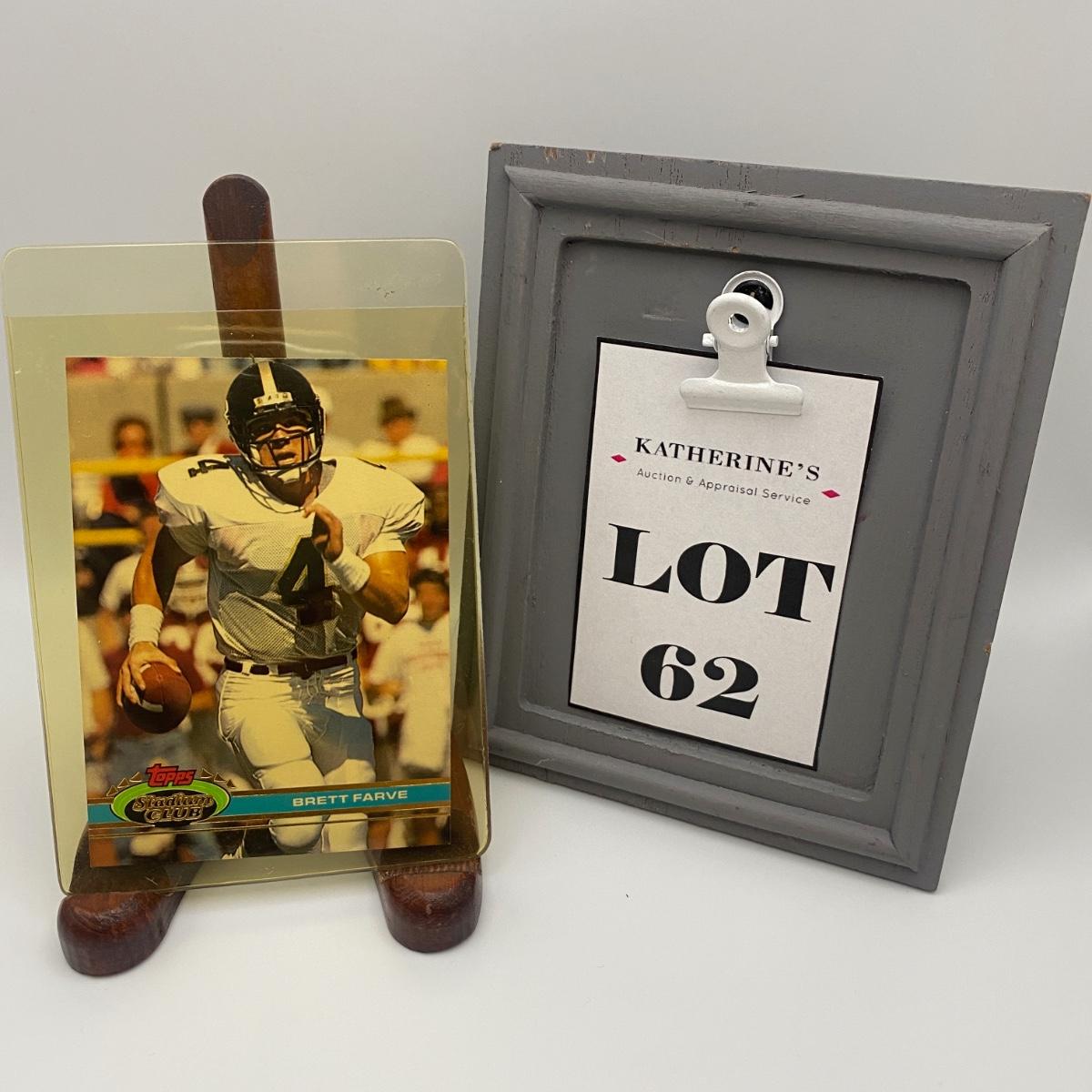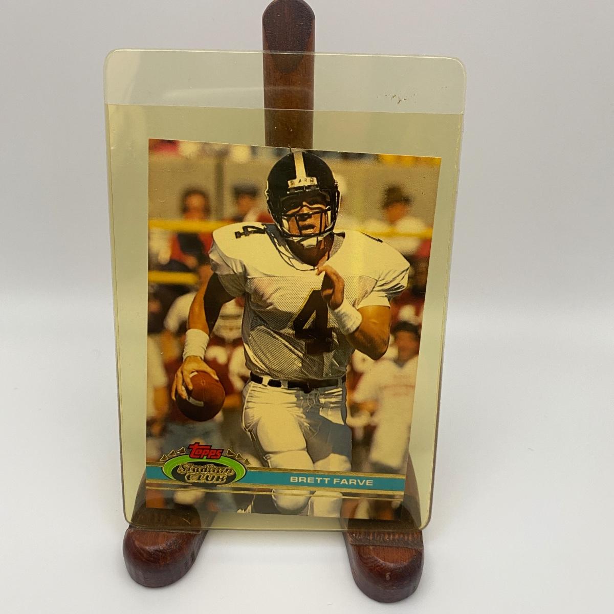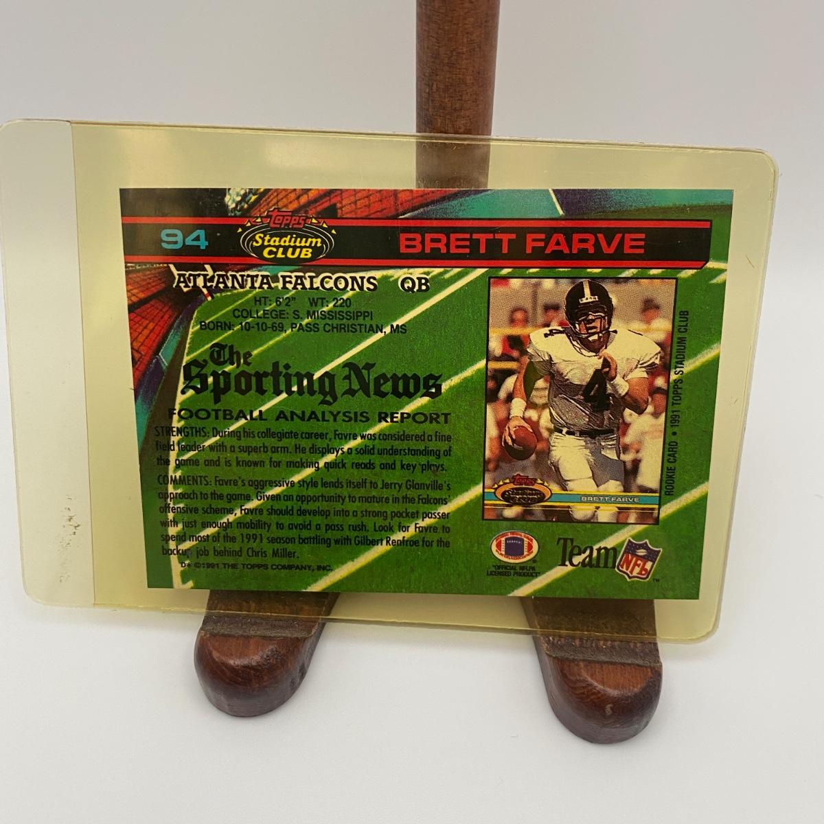 1991 Topps stadium card Atlanta Falcons rookie Brett Favre card. Please see photos for details and condition. ::: Shipping is available on this lot. If you require shipping you must let us know at the close of the auction. We will coordinate with you after the item has been won. Shipping fees will include insurance up to or exceeding the value of all items being mailed. If you have any questions regarding this lot please contact the auctioneer either via this website, by direct email or by phone. PICK UP TIMES and other important information can be found in the TERMS and DESCRIPTION of the auction. Please take a look for pertinent information. Thanks!