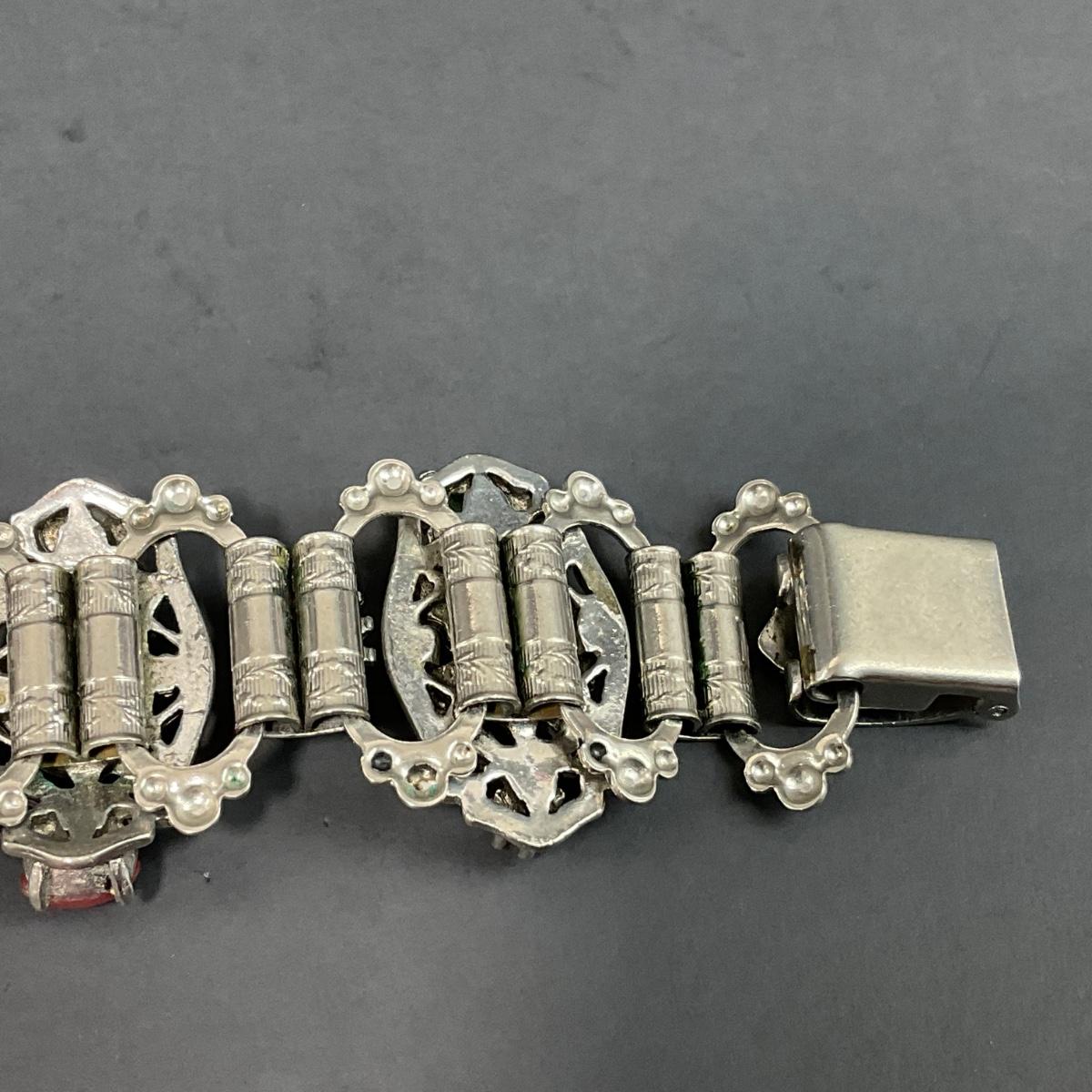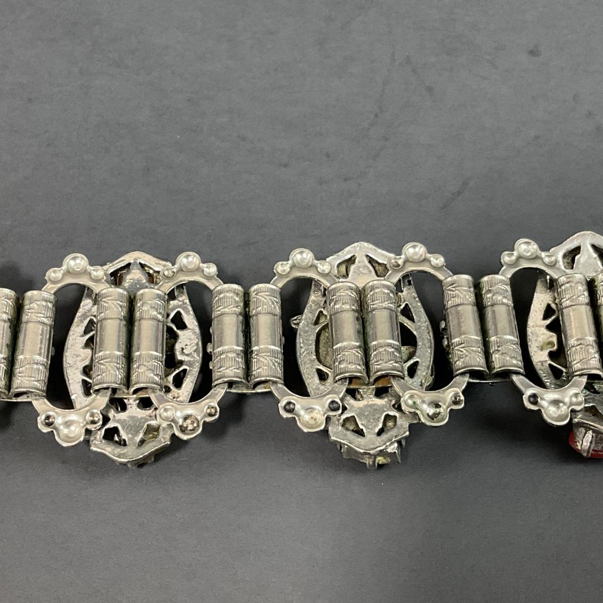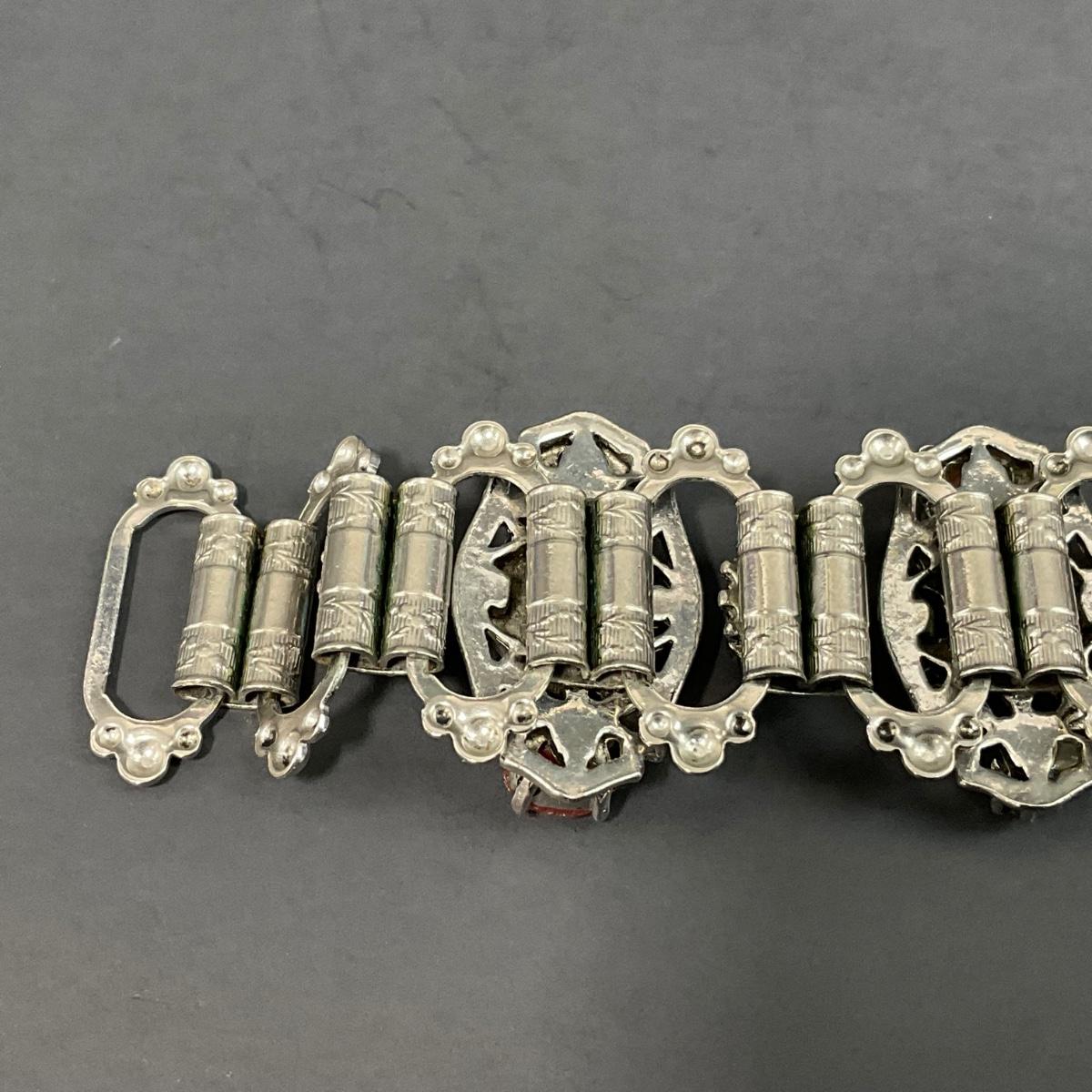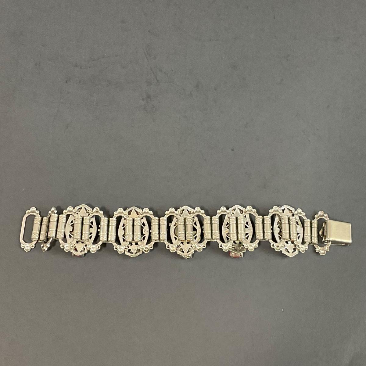 One vintage gemstone Mythological bracelet. This piece does have some scuffs, scratches, marks, or slight damage, but otherwise appears to be in great shape. Please see photos for details and condition. Any condition statement is given as a courtesy to a client, is an opinion, and should not be treated as a statement of fact. Reference to condition written, oral or within a condition report shall not be regarded as a full account of condition and may not include all defects, alterations, or restorations. Absence of a condition report does not imply a lot is flawless or lacking imperfections or damage. Katherine’s Auction & Appraisal Service shall have no responsibility for any error or omission. Returns shall not be accepted on the basis of condition. ::: Shipping is available on this lot. If you require shipping you must let us know at the close of the auction. We will coordinate with you after the item has been won. Shipping fees will include insurance up to or exceeding the value of all items being mailed. If you have any questions regarding this lot please contact the auctioneer either via this website, by direct email or by phone. PICK UP TIMES and other important information can be found in the TERMS and DESCRIPTION of the auction. Please take a look for pertinent information. Thanks!