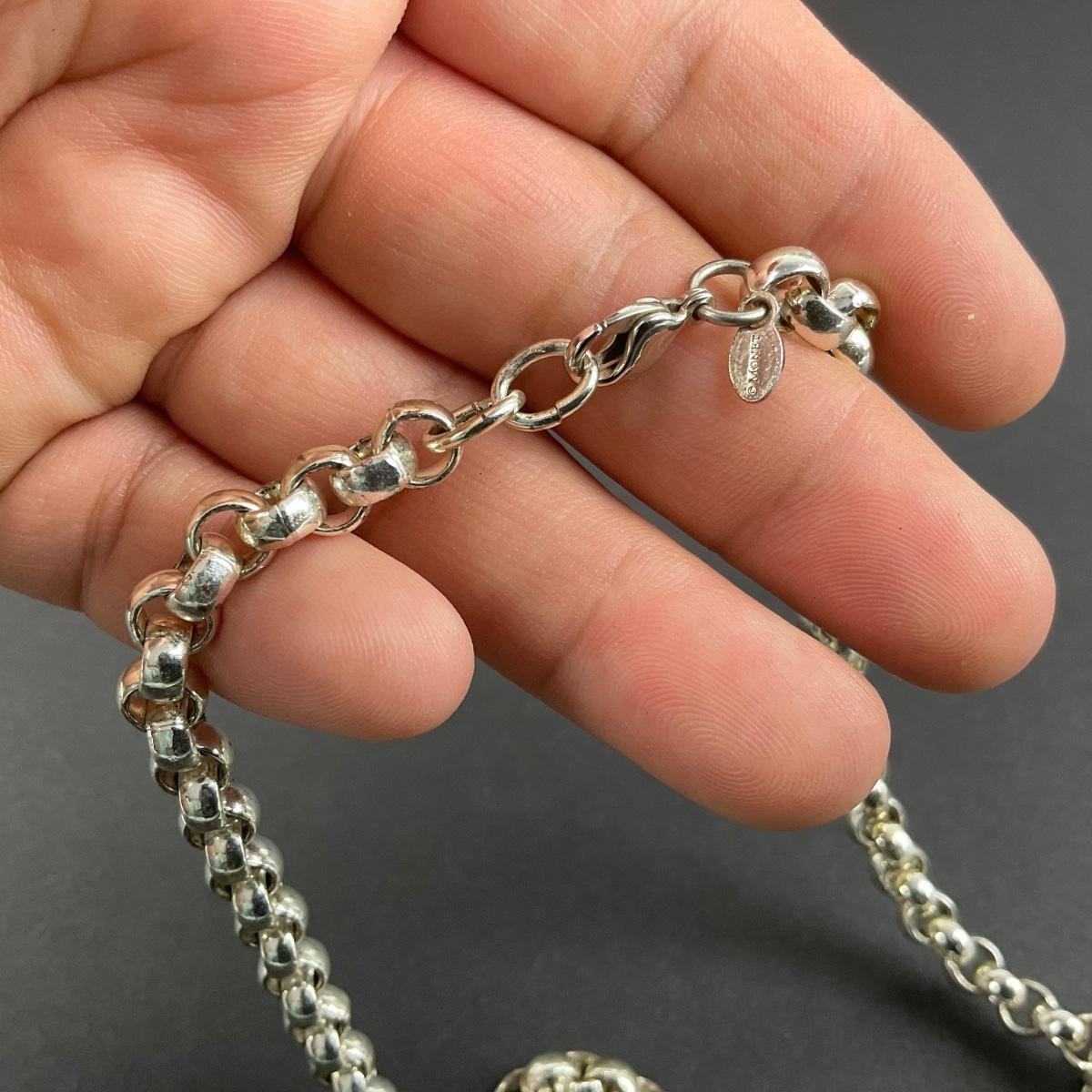 One vintage Monet signed silver tone necklace. Please see photos for details and condition. Any condition statement is given as a courtesy to a client, is an opinion, and should not be treated as a statement of fact. Reference to condition written, oral or within a condition report shall not be regarded as a full account of condition and may not include all defects, alterations, or restorations. Absence of a condition report does not imply a lot is flawless or lacking imperfections or damage. Katherine’s Auction & Appraisal Service shall have no responsibility for any error or omission. Returns shall not be accepted on the basis of condition. ::: Shipping is available on this lot. If you require shipping you must let us know at the close of the auction. We will coordinate with you after the item has been won. Shipping fees will include insurance up to or exceeding the value of all items being mailed. If you have any questions regarding this lot please contact the auctioneer either via this website, by direct email or by phone. PICK UP TIMES and other important information can be found in the TERMS and DESCRIPTION of the auction. Please take a look for pertinent information. Thanks!