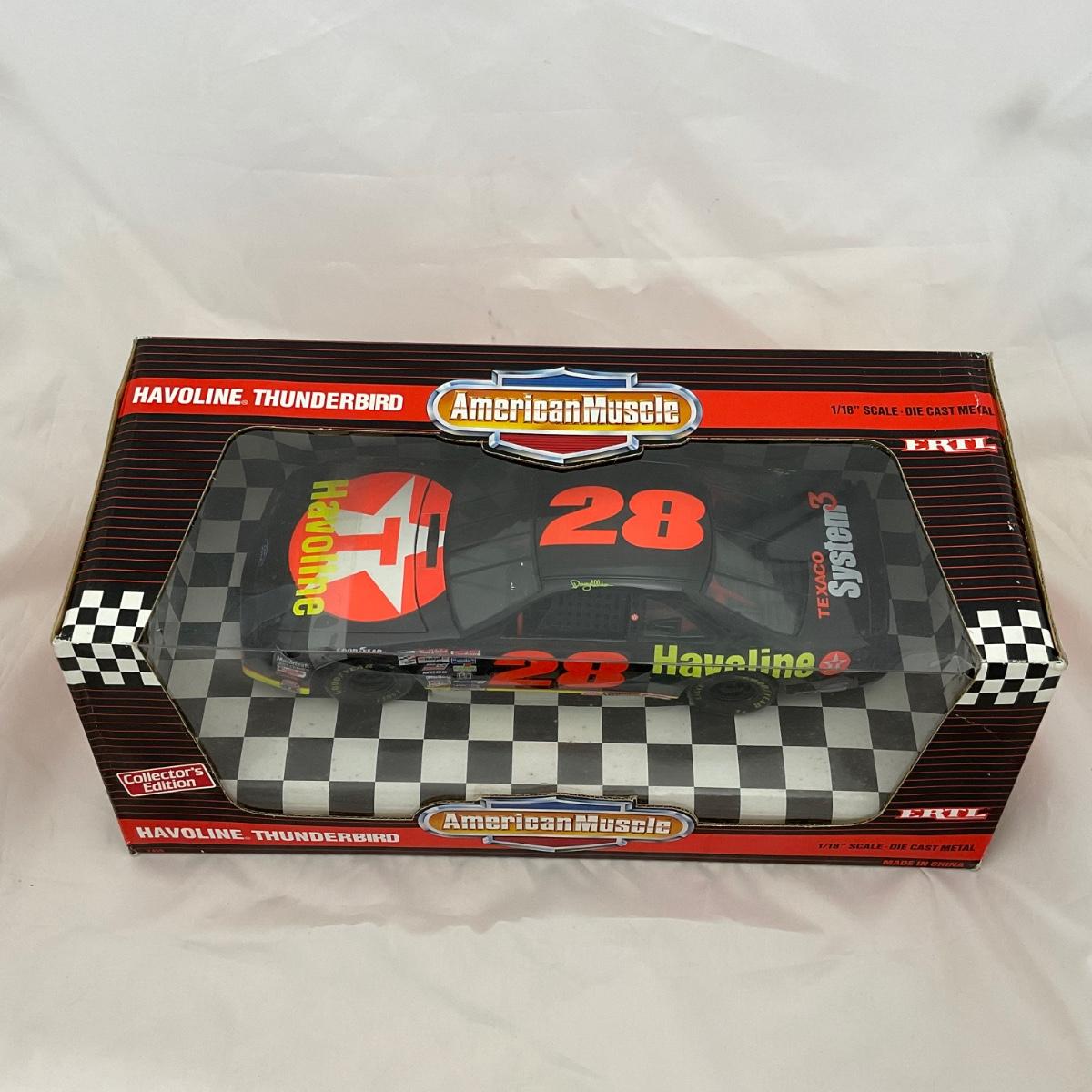 One NASCAR die cast 1:18 scale Havoline Thunderbird in box. Please see photos for details and condition. ::: Shipping is available on this lot. If you require shipping you must let us know at the close of the auction. We will coordinate with you after the item has been won. Shipping fees will include insurance up to or exceeding the value of all items being mailed. If you have any questions regarding this lot please contact the auctioneer either via this website, by direct email or by phone. PICK UP TIMES and other important information can be found in the TERMS and DESCRIPTION of the auction. Please take a look for pertinent information. Thanks!