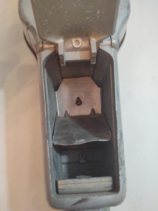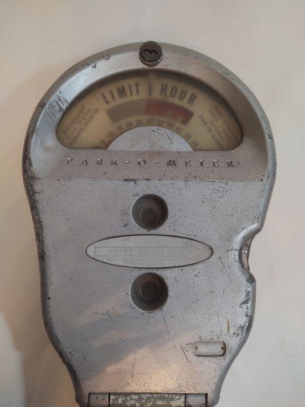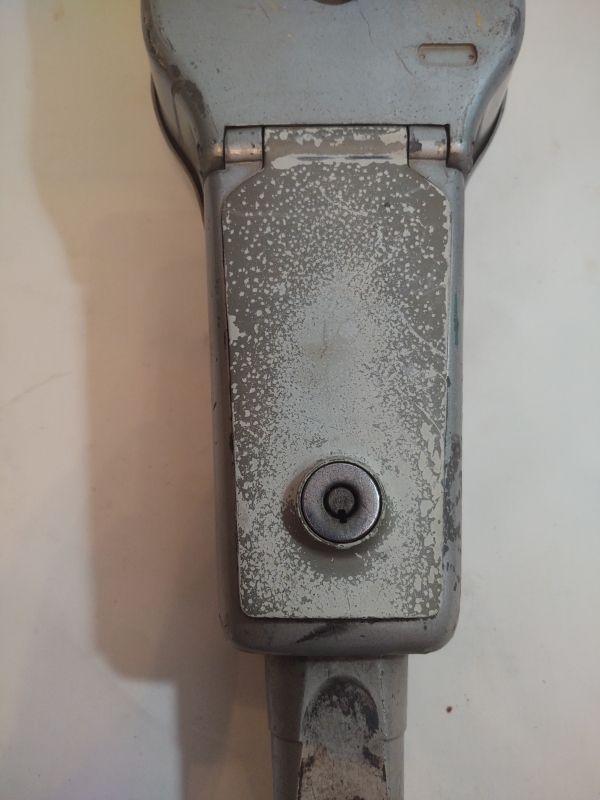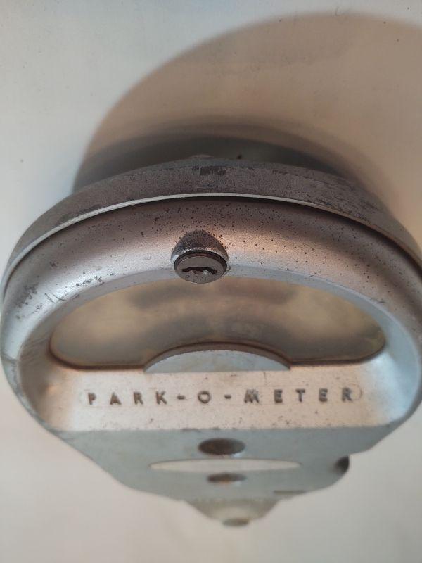 Municipal parking meter that was pulled from service. Coin box is open. No key available.