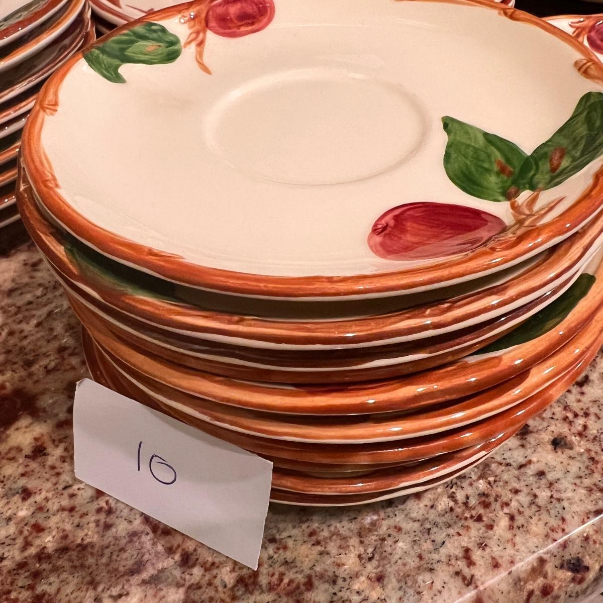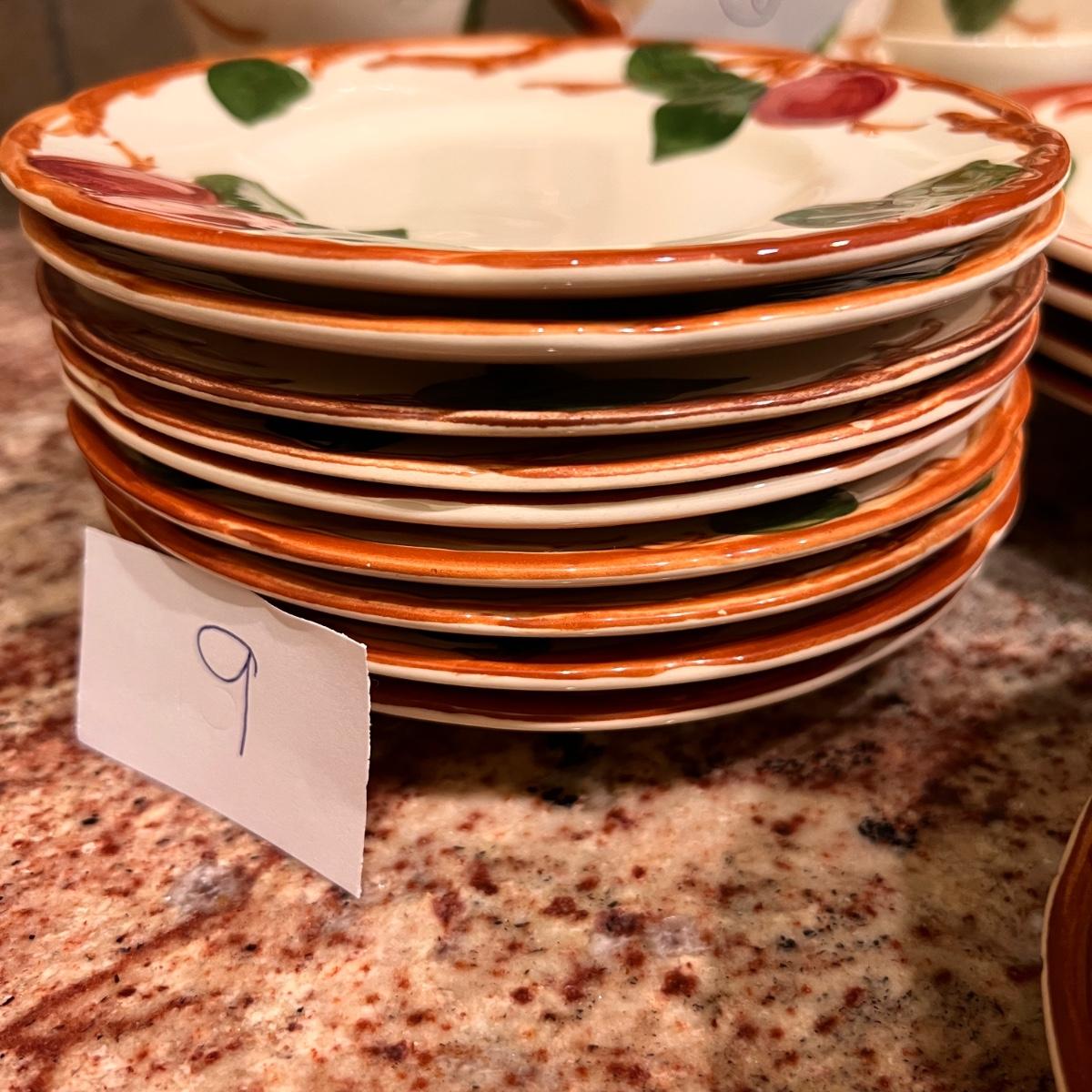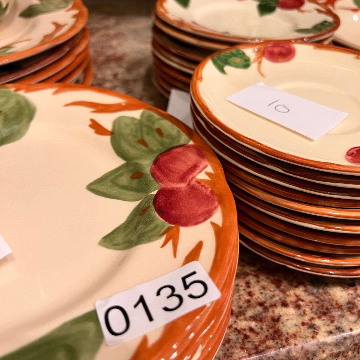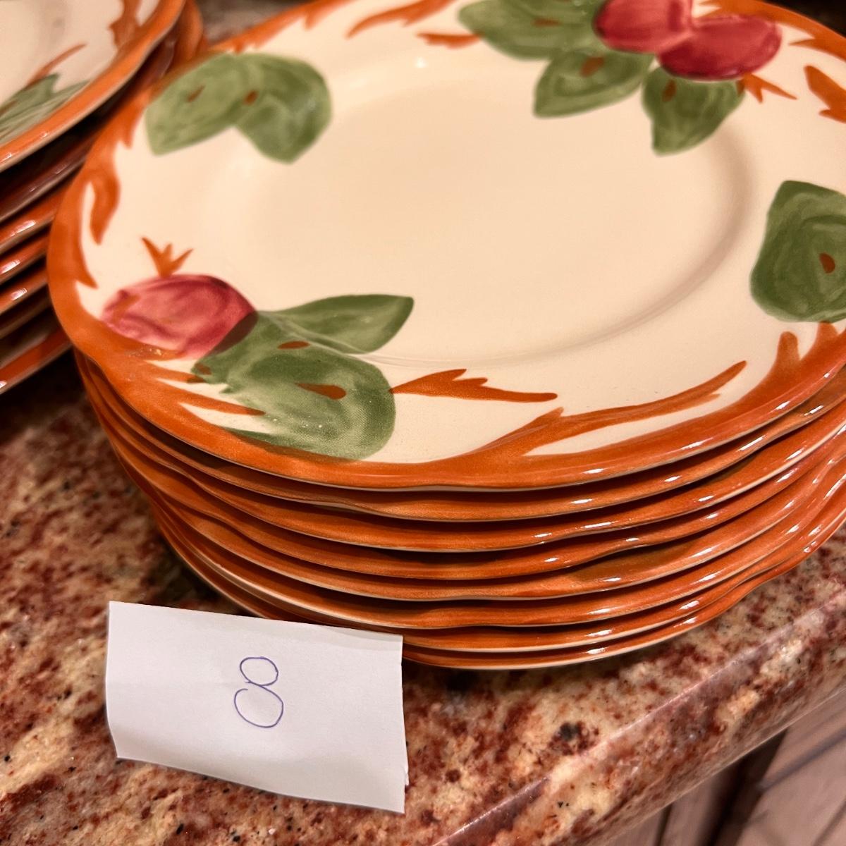 62 pieces of Franciscan (a member of the Wedgwood Group) dinnerware including serving dishes. I found 1 chip shown in pics on a dinner plate. Otherwise great condition!