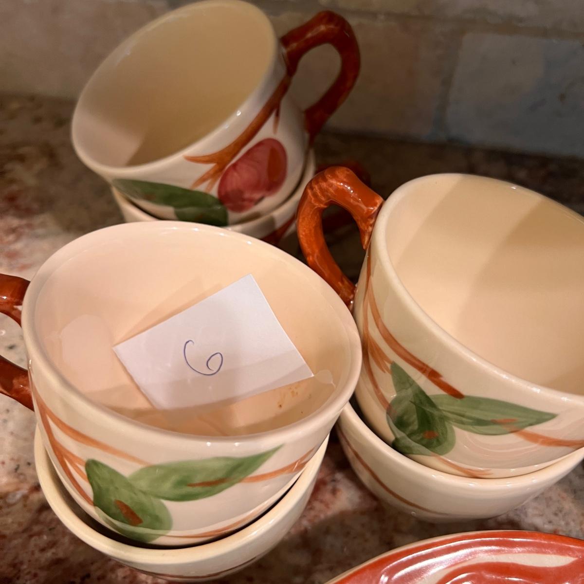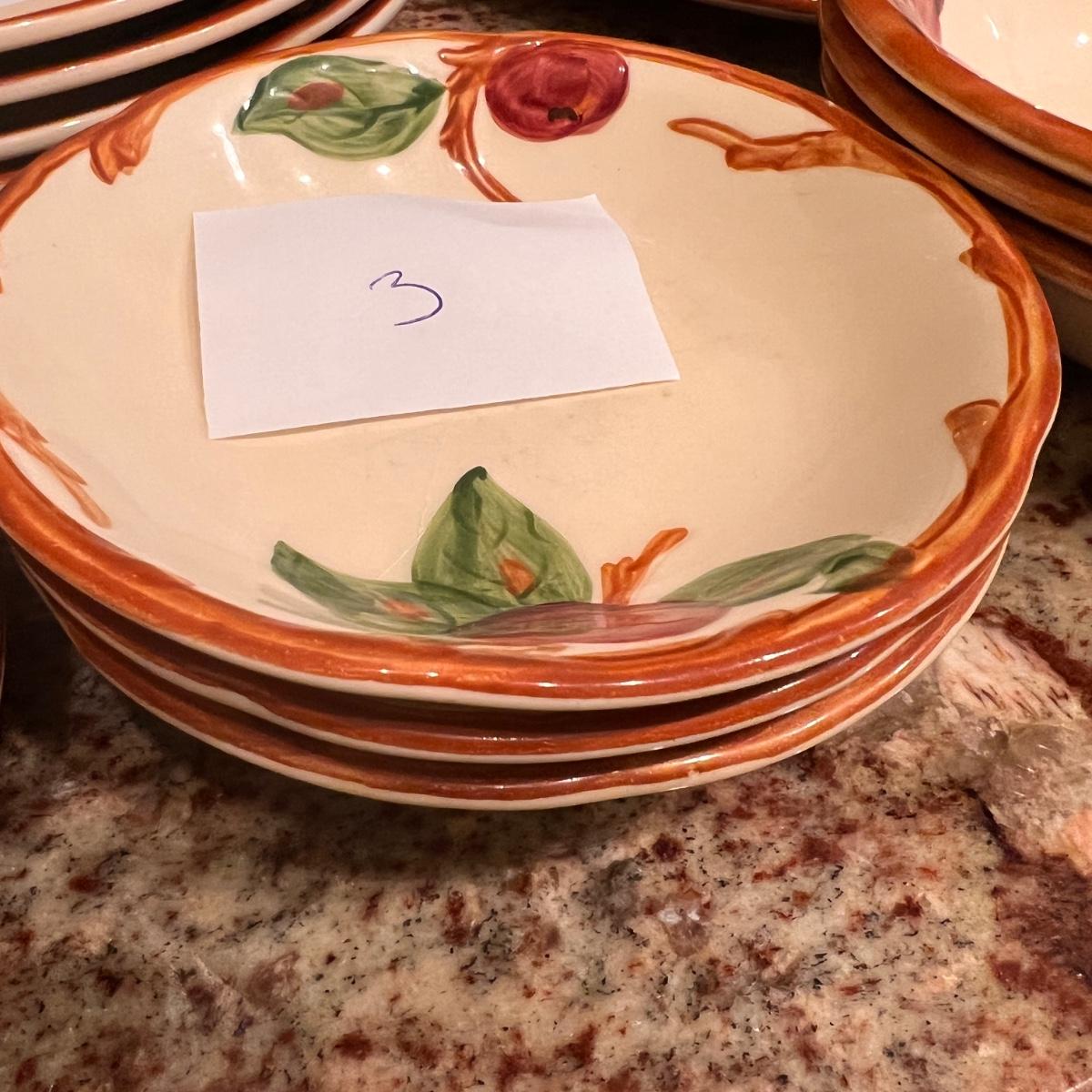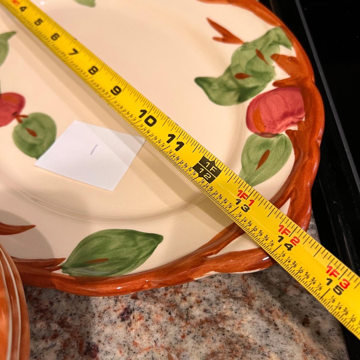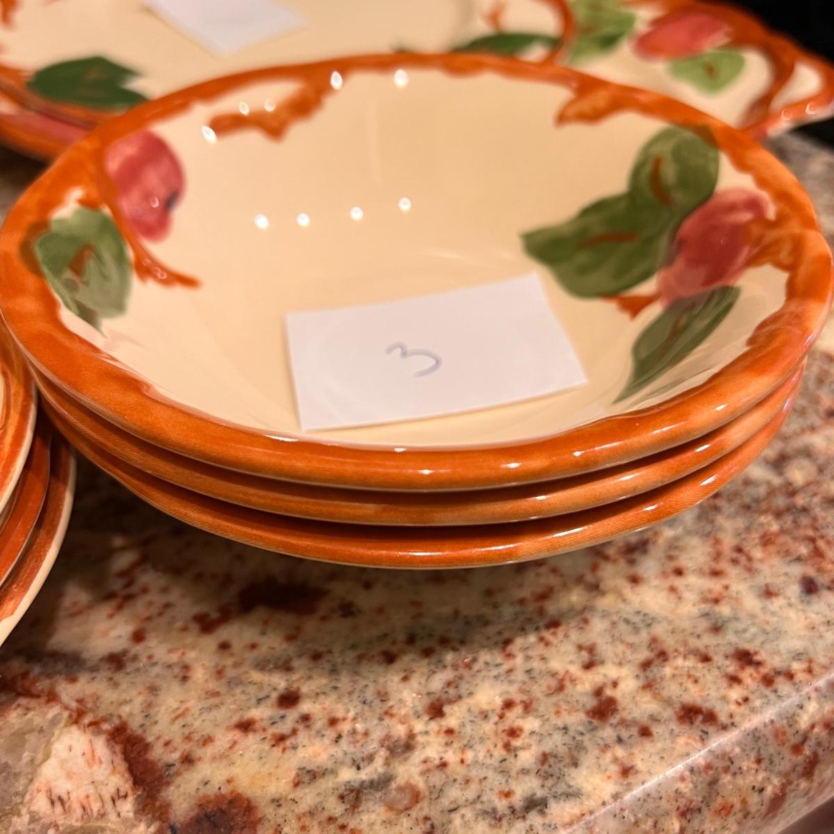 62 pieces of Franciscan (a member of the Wedgwood Group) dinnerware including serving dishes. I found 1 chip shown in pics on a dinner plate. Otherwise great condition!