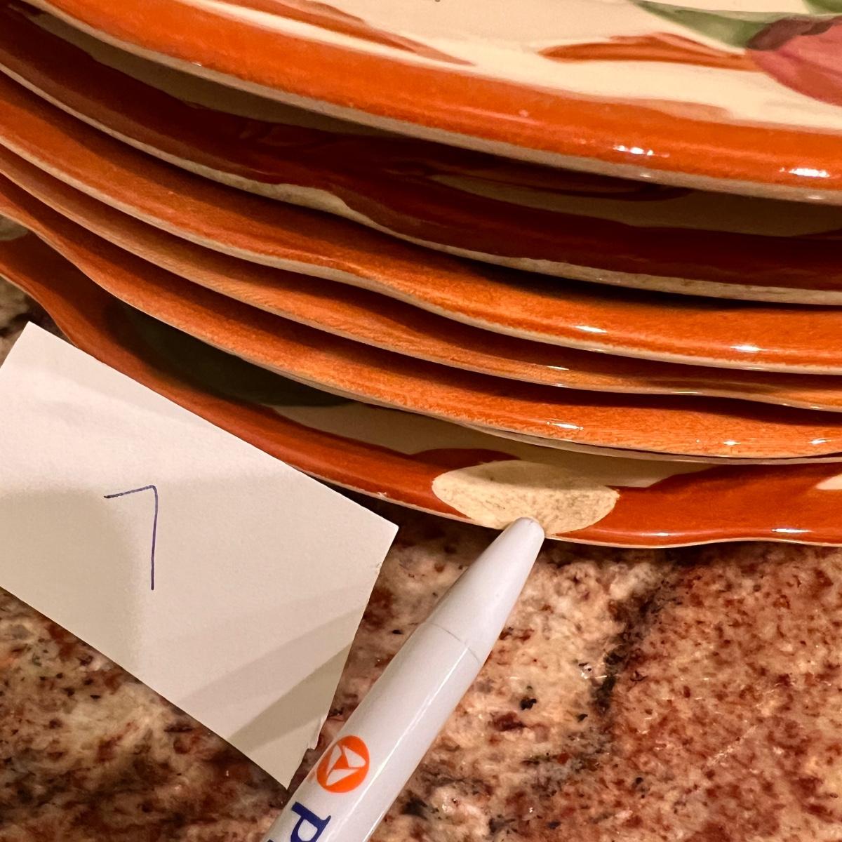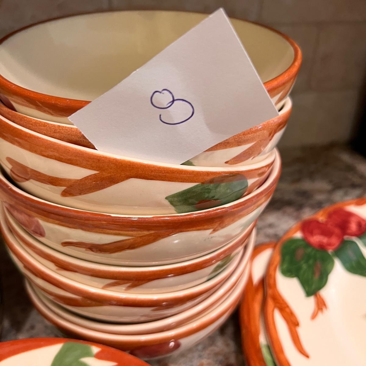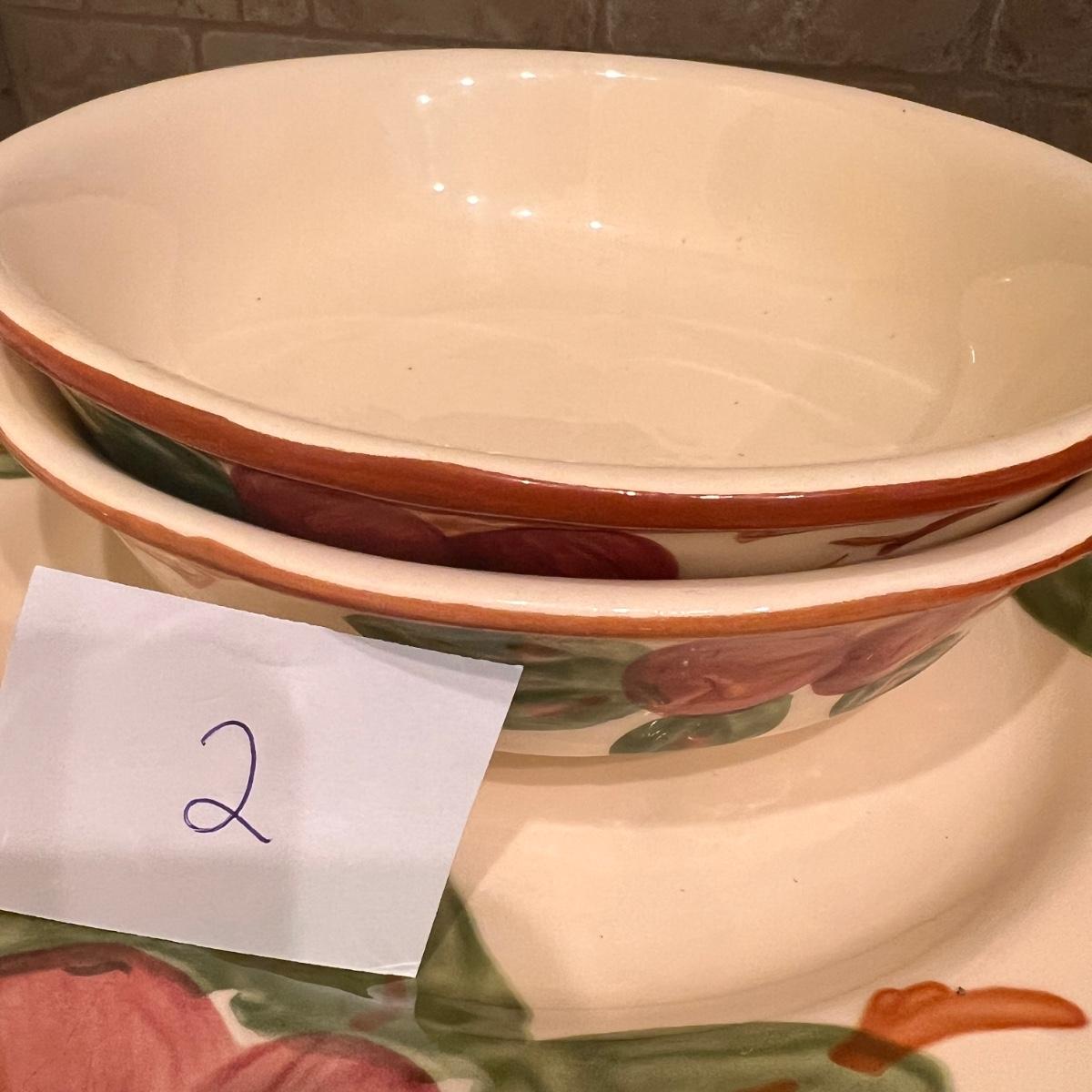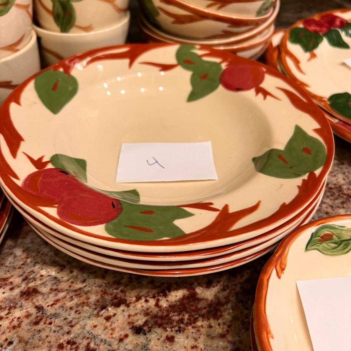 62 pieces of Franciscan (a member of the Wedgwood Group) dinnerware including serving dishes. I found 1 chip shown in pics on a dinner plate. Otherwise great condition!