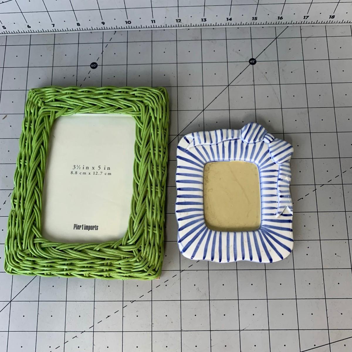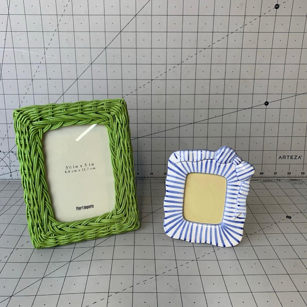 #62 Pier 1 Import Green Woven 3.5 x 5" Frame & Small Blue/White Photo Frame
