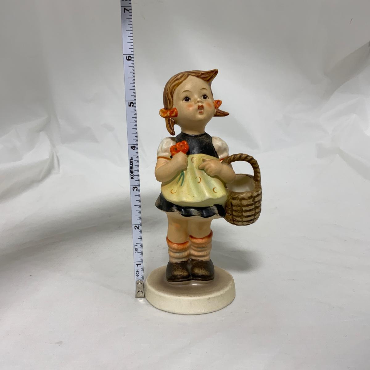 You’ve got to take this little girl home! Sister, Hum 98. TMK-3. Please see photos for details and condition. No Cracks, Chips or Crazing noted. ::: Shipping is available on this lot. If you require shipping you must let us know at the close of the auction. We will coordinate with you after the item has been won. Shipping fees will include insurance up to or exceeding the value of all items being mailed. If you have any questions regarding this lot please contact the auctioneer either via this website, by direct email or by phone. PICK UP TIMES and other important information can be found in the TERMS and DESCRIPTION of the auction. Please take a look for pertinent information. Thanks!