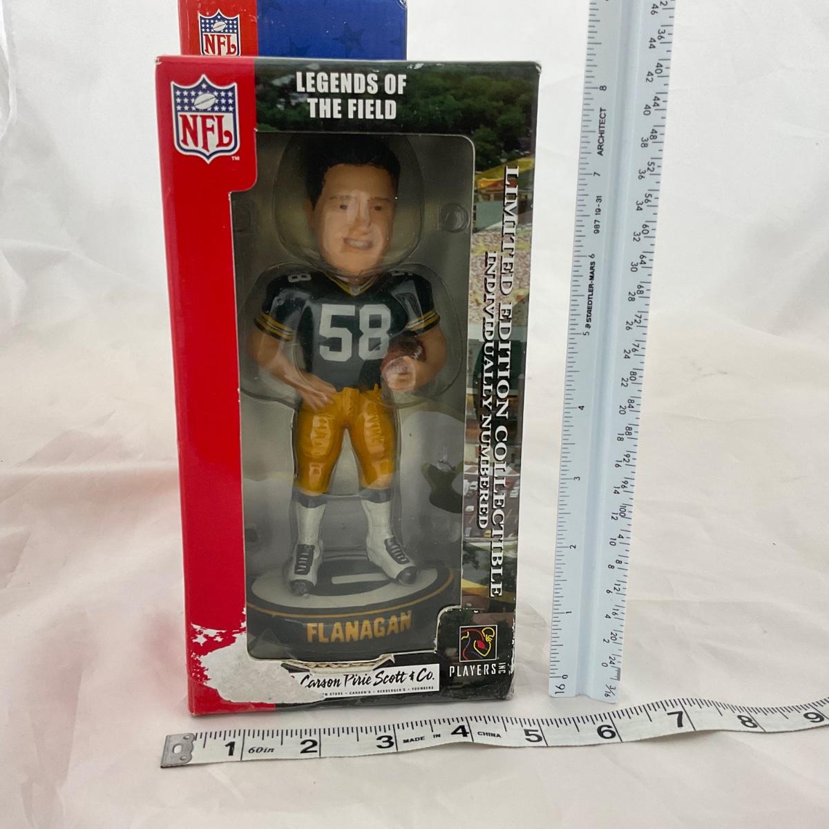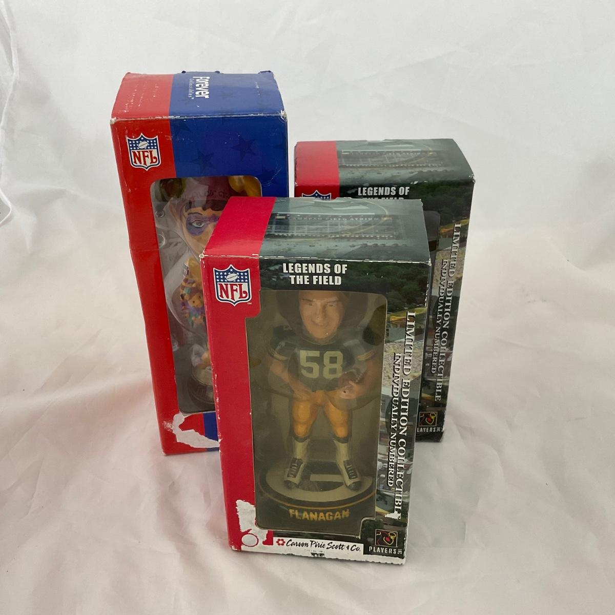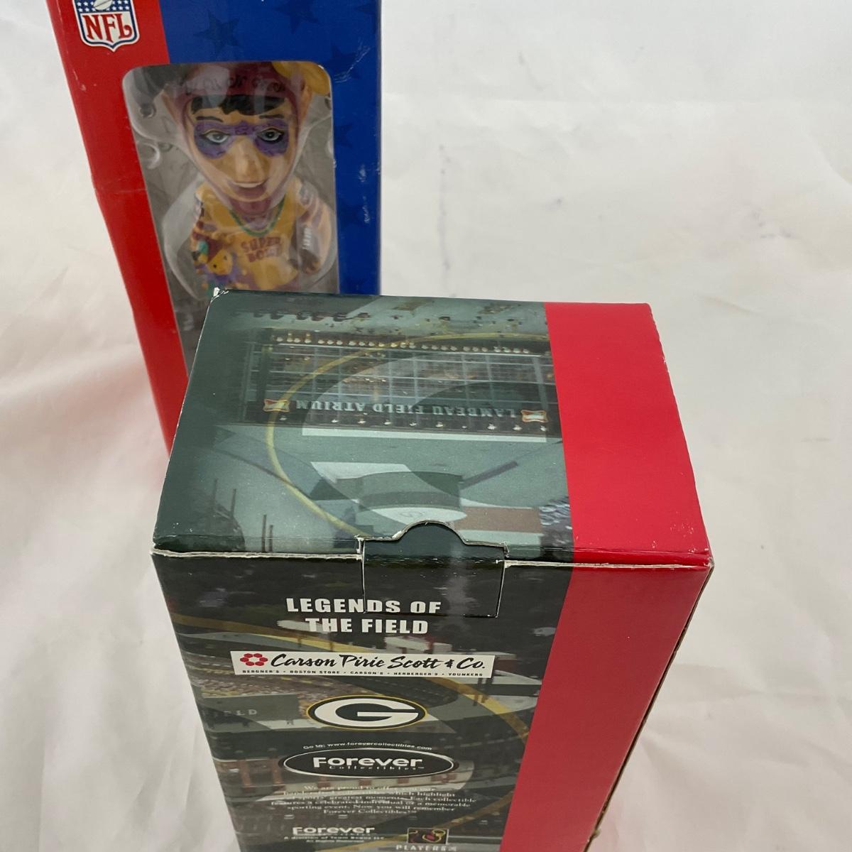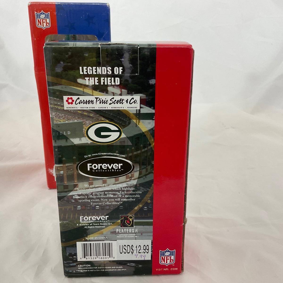Three vintage Green Bay Packers bobbleheads in box. Boxes have some wear and damage. Please see photos for details and condition. ::: Shipping is available on this lot. If you require shipping you must let us know at the close of the auction. We will coordinate with you after the item has been won. Shipping fees will include insurance up to or exceeding the value of all items being mailed. If you have any questions regarding this lot please contact the auctioneer either via this website, by direct email or by phone. PICK UP TIMES and other important information can be found in the TERMS and DESCRIPTION of the auction. Please take a look for pertinent information. Thanks!