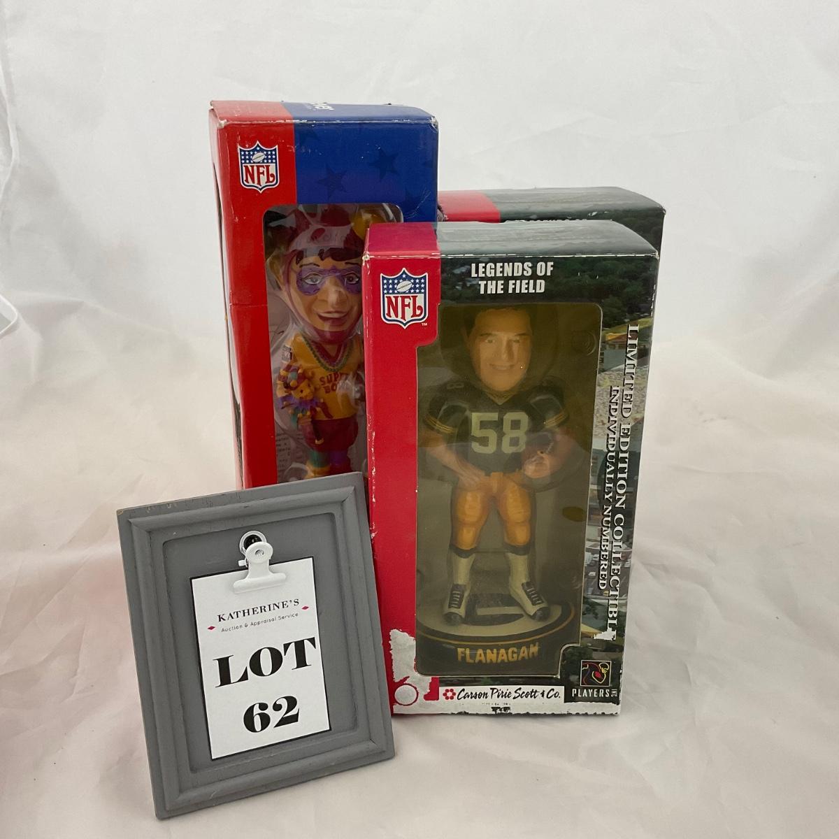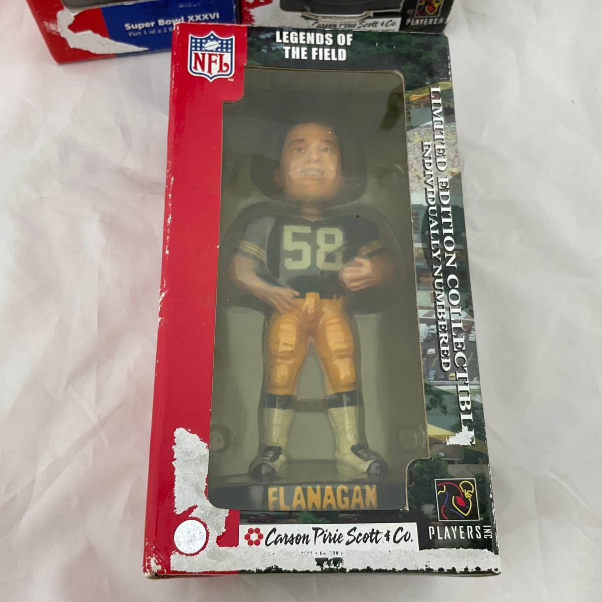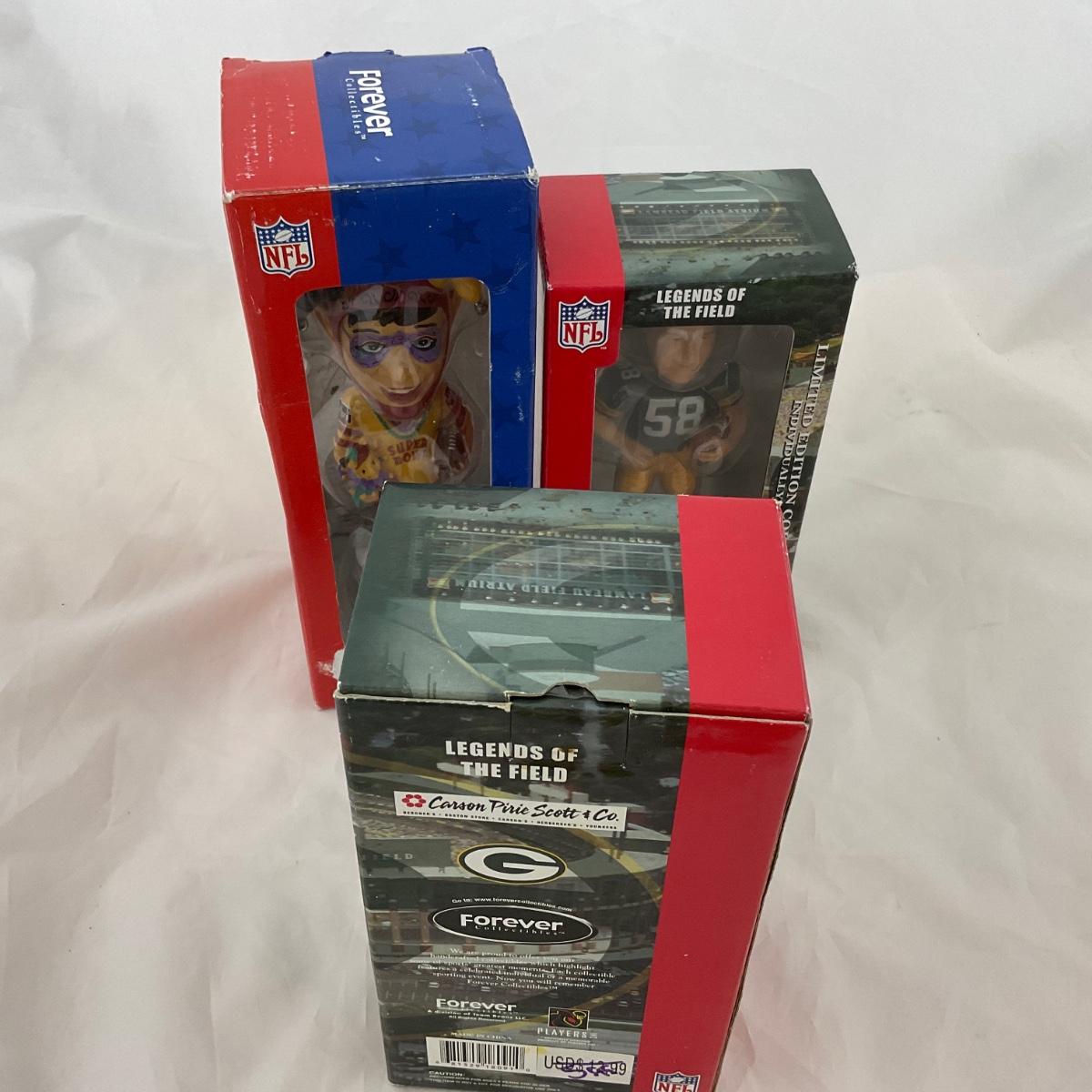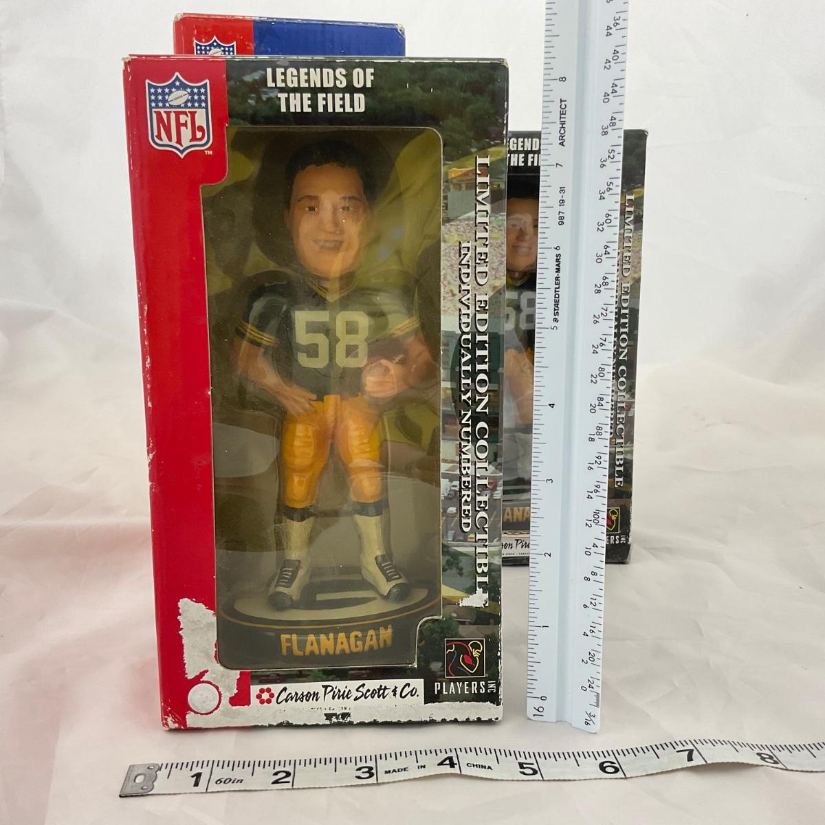 Three vintage Green Bay Packers bobbleheads in box. Boxes have some wear and damage. Please see photos for details and condition. ::: Shipping is available on this lot. If you require shipping you must let us know at the close of the auction. We will coordinate with you after the item has been won. Shipping fees will include insurance up to or exceeding the value of all items being mailed. If you have any questions regarding this lot please contact the auctioneer either via this website, by direct email or by phone. PICK UP TIMES and other important information can be found in the TERMS and DESCRIPTION of the auction. Please take a look for pertinent information. Thanks!