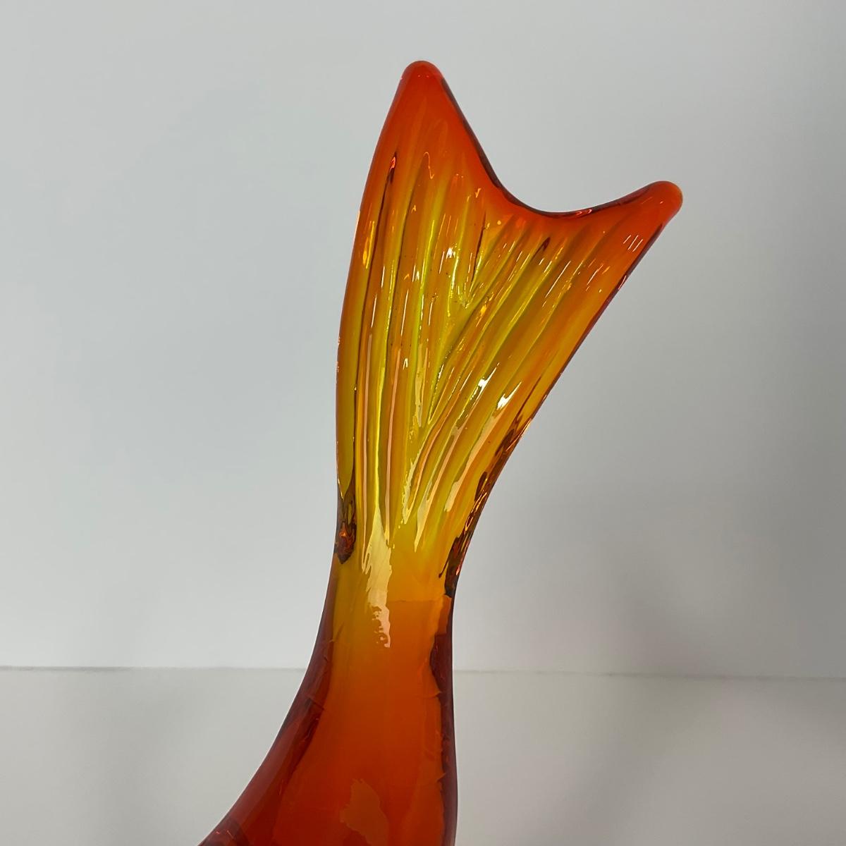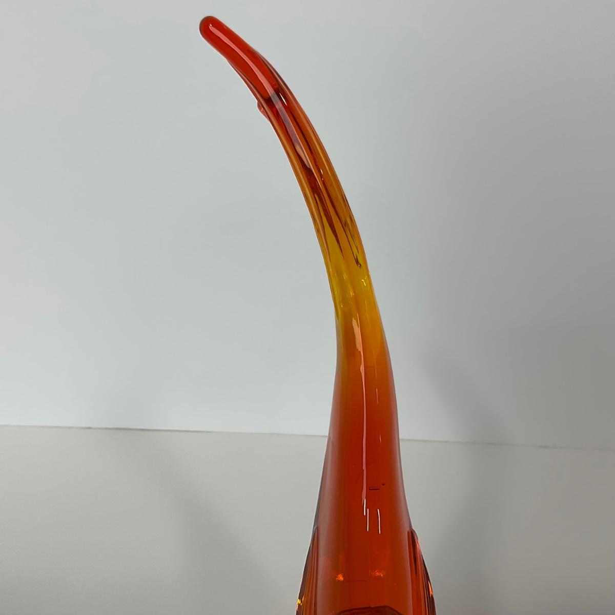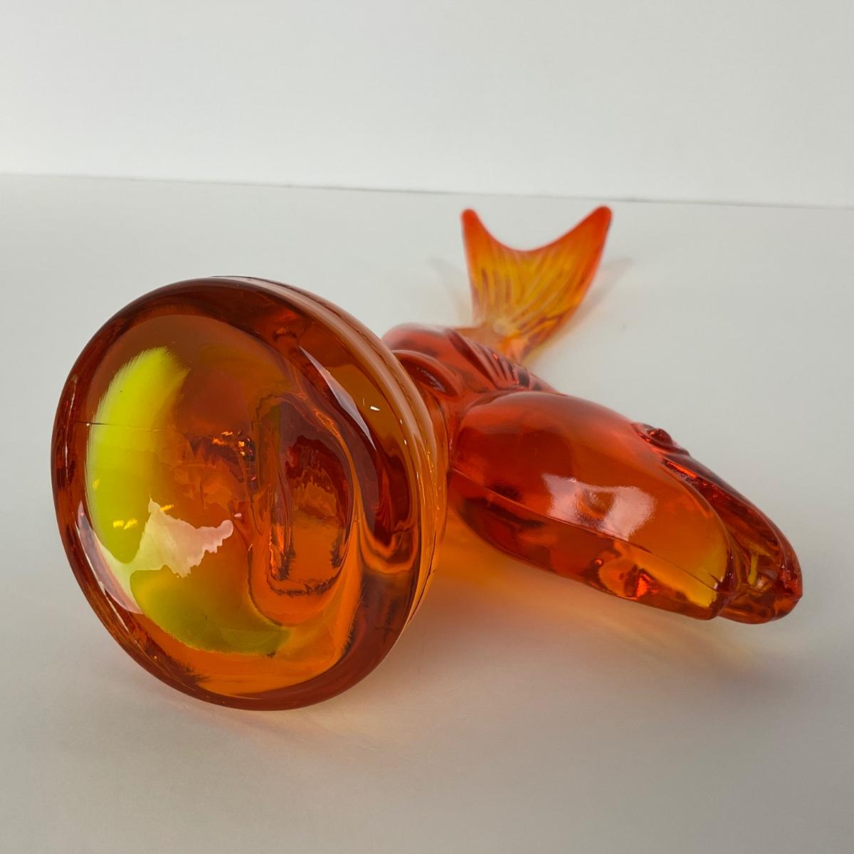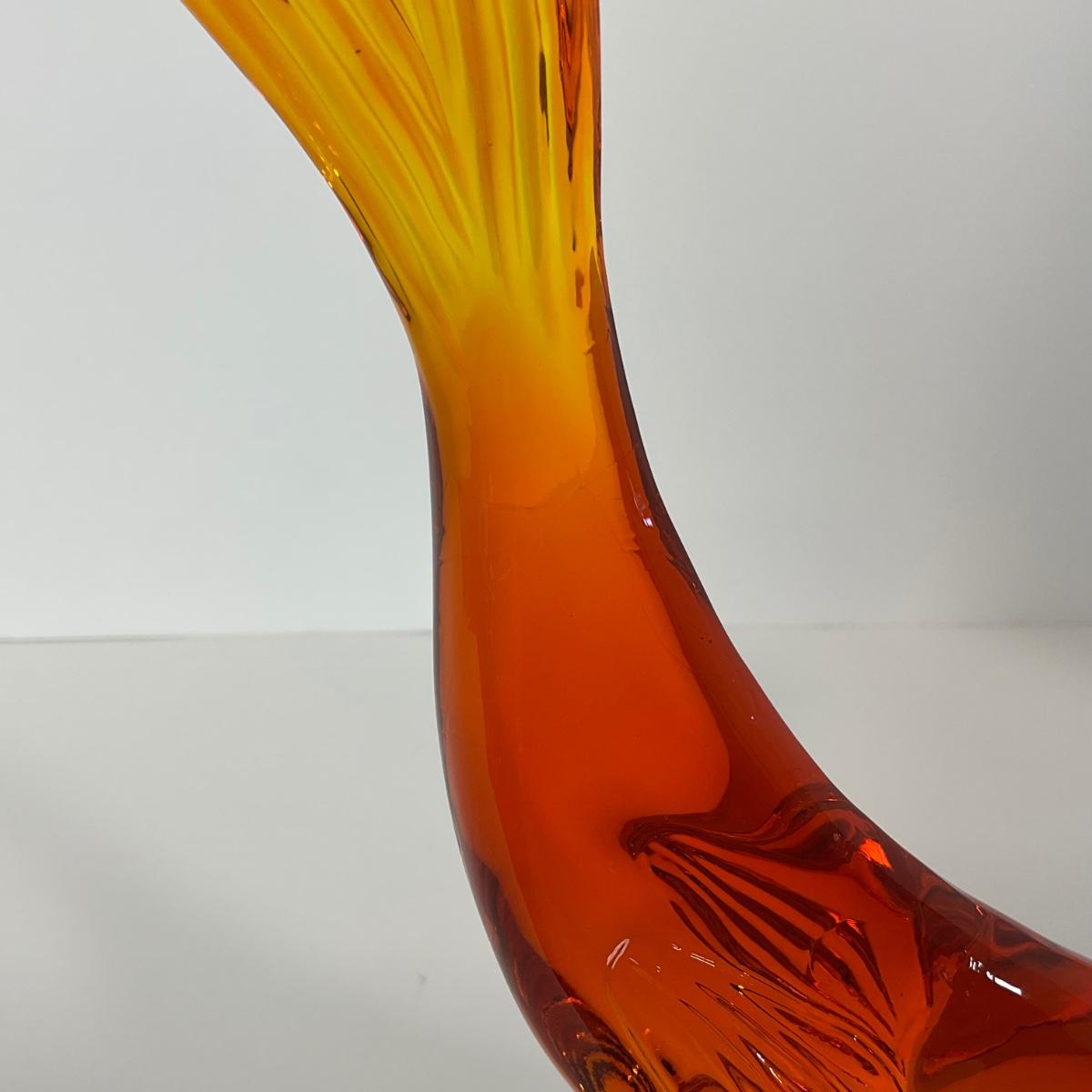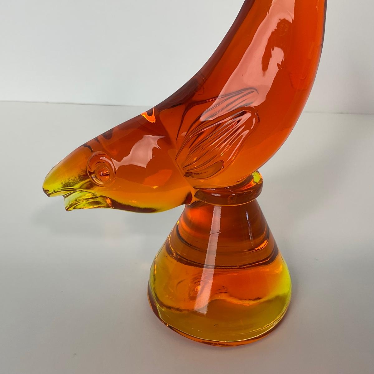 One Viking orange Amberina colored trout figure. 5 1/2 inches wide by 10 inches tall. This piece has no damage, and appears to be in great shape with no visable chips, cracks, or broken pieces. Please see photos for details and condition. Any condition statement is given as a courtesy to a client, is an opinion, and should not be treated as a statement of fact. Reference to condition written, oral or within a condition report shall not be regarded as a full account of condition and may not include all defects, alterations, or restorations. Absence of a condition report does not imply a lot is flawless or lacking imperfections or damage. Katherine’s Auction & Appraisal Service shall have no responsibility for any error or omission. Returns shall not be accepted on the basis of condition. ::: Shipping is available on this lot. If you require shipping you must let us know at the close of the auction. We will coordinate with you after the item has been won. Shipping fees will include insurance up to or exceeding the value of all items being mailed. If you have any questions regarding this lot please contact the auctioneer either via this website, by direct email or by phone. PICK UP TIMES and other important information can be found in the TERMS and DESCRIPTION of the auction. Please take a look for pertinent information. Thanks!