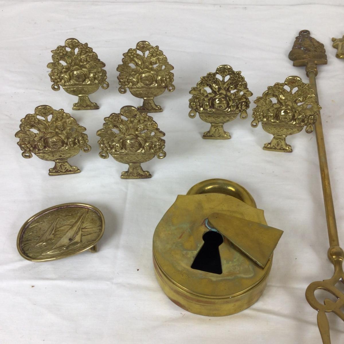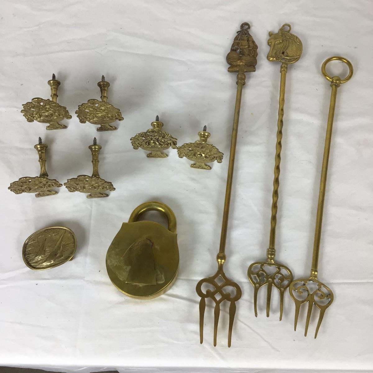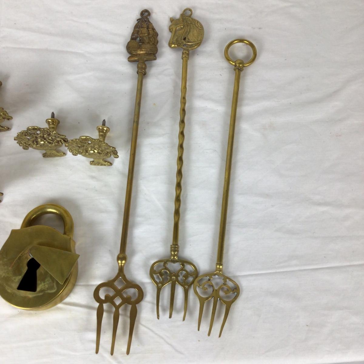 6207 Assortment of Brass Curtain Ties/Toasting Forks/Belt Buckle/Ashtray