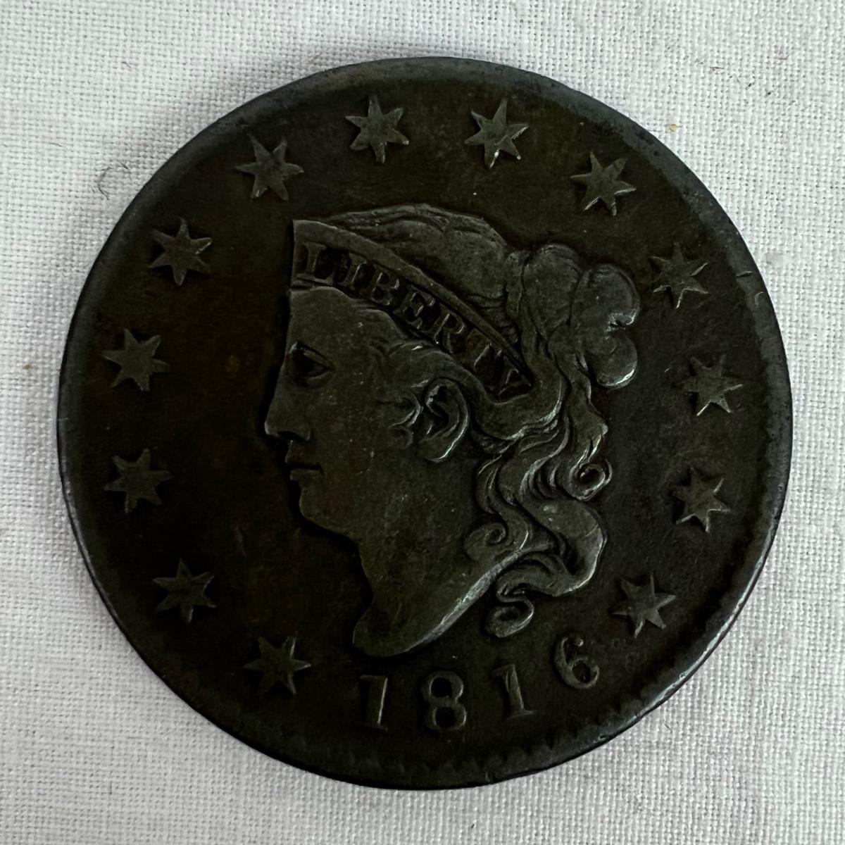 1816 Coronet Head Large Copper Penny U.S. Coin. Over 200 years old.