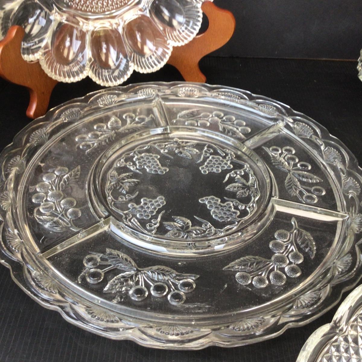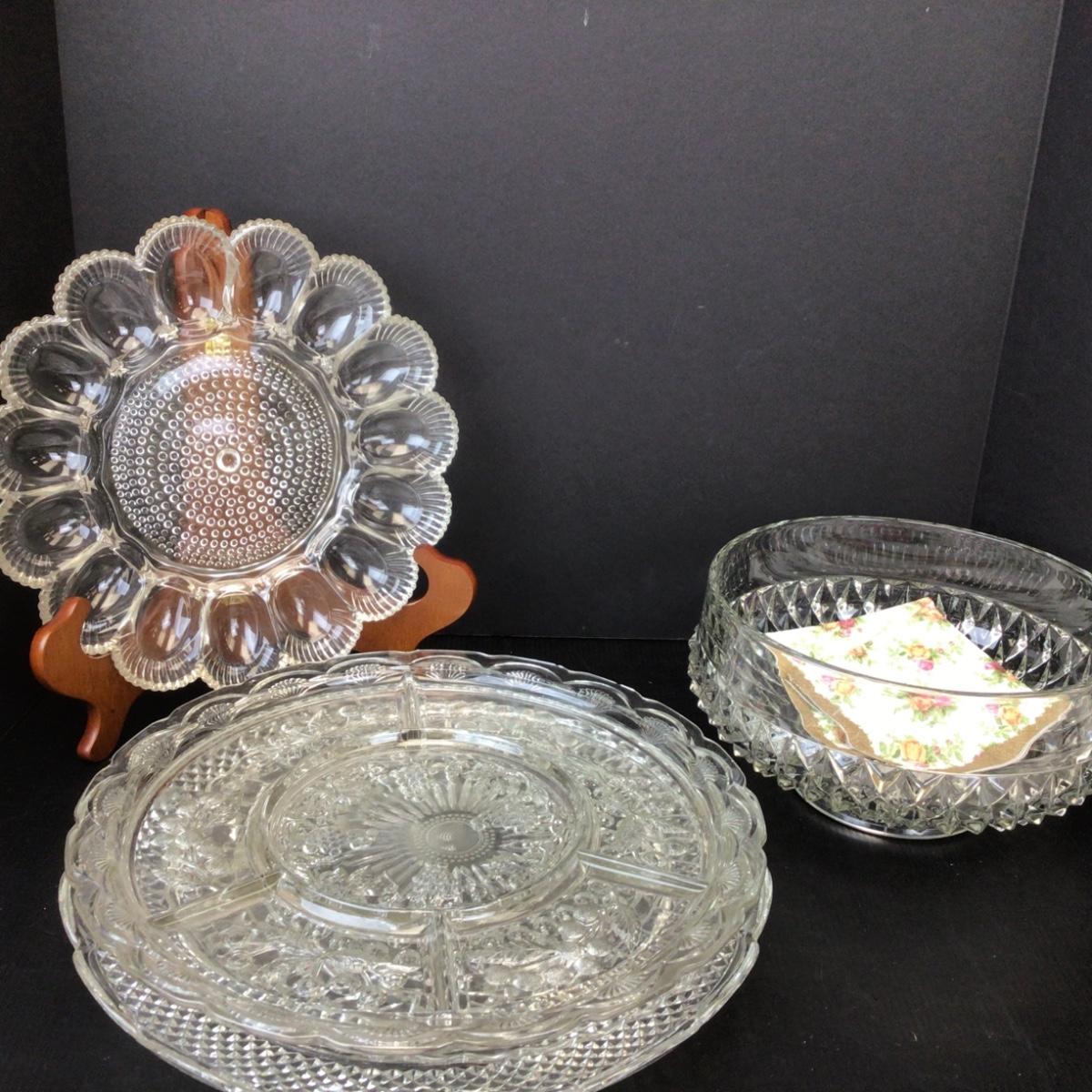 Dishes include-egg tray, cake plate, trays, serving bowl and more.