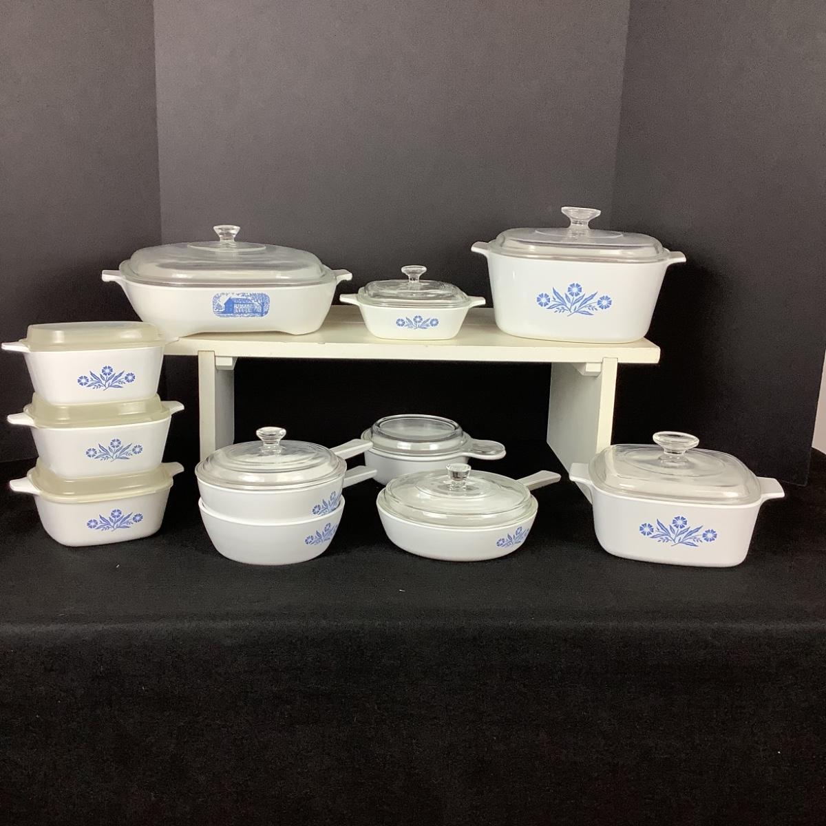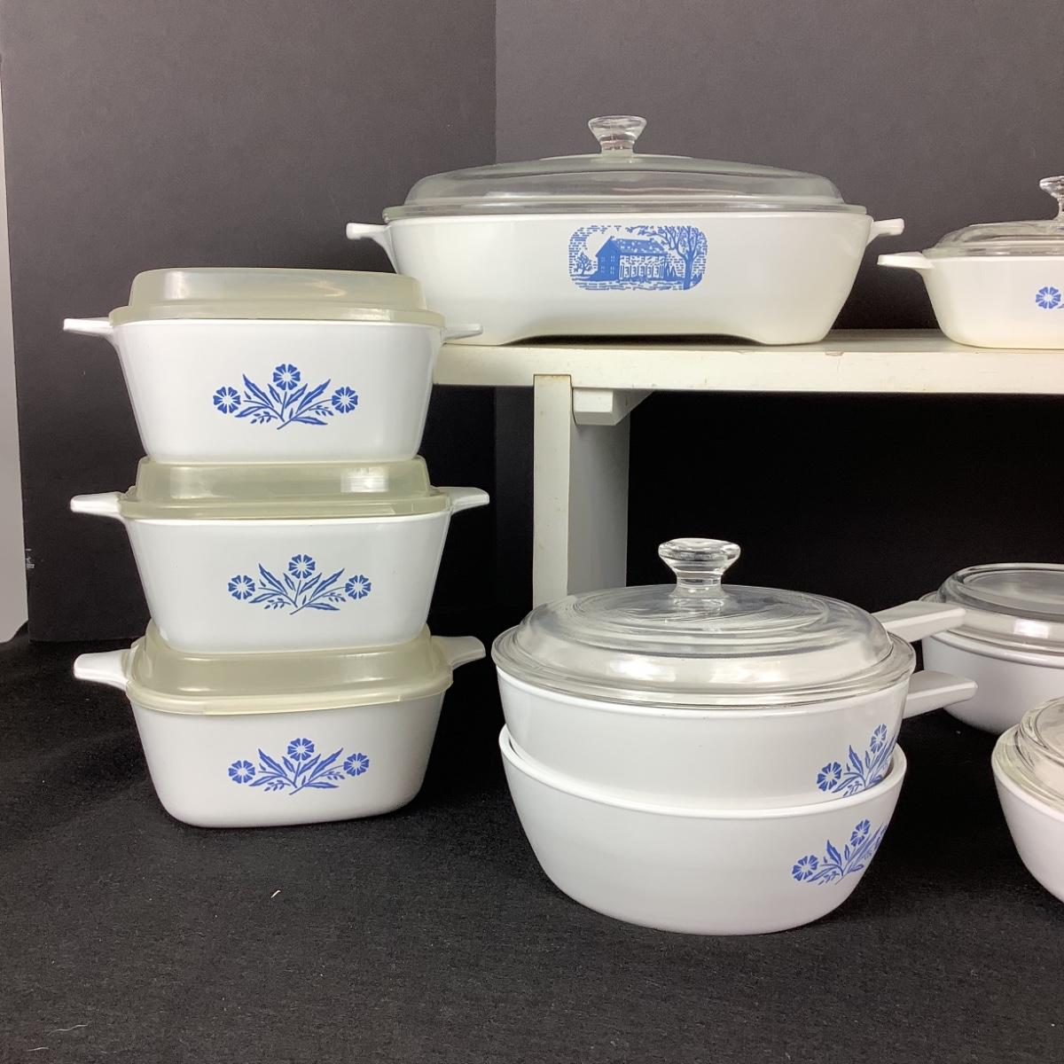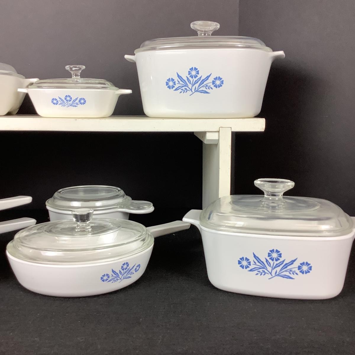 Corning Ware Cornflower Blue Set of 9 Casserole Dishes.