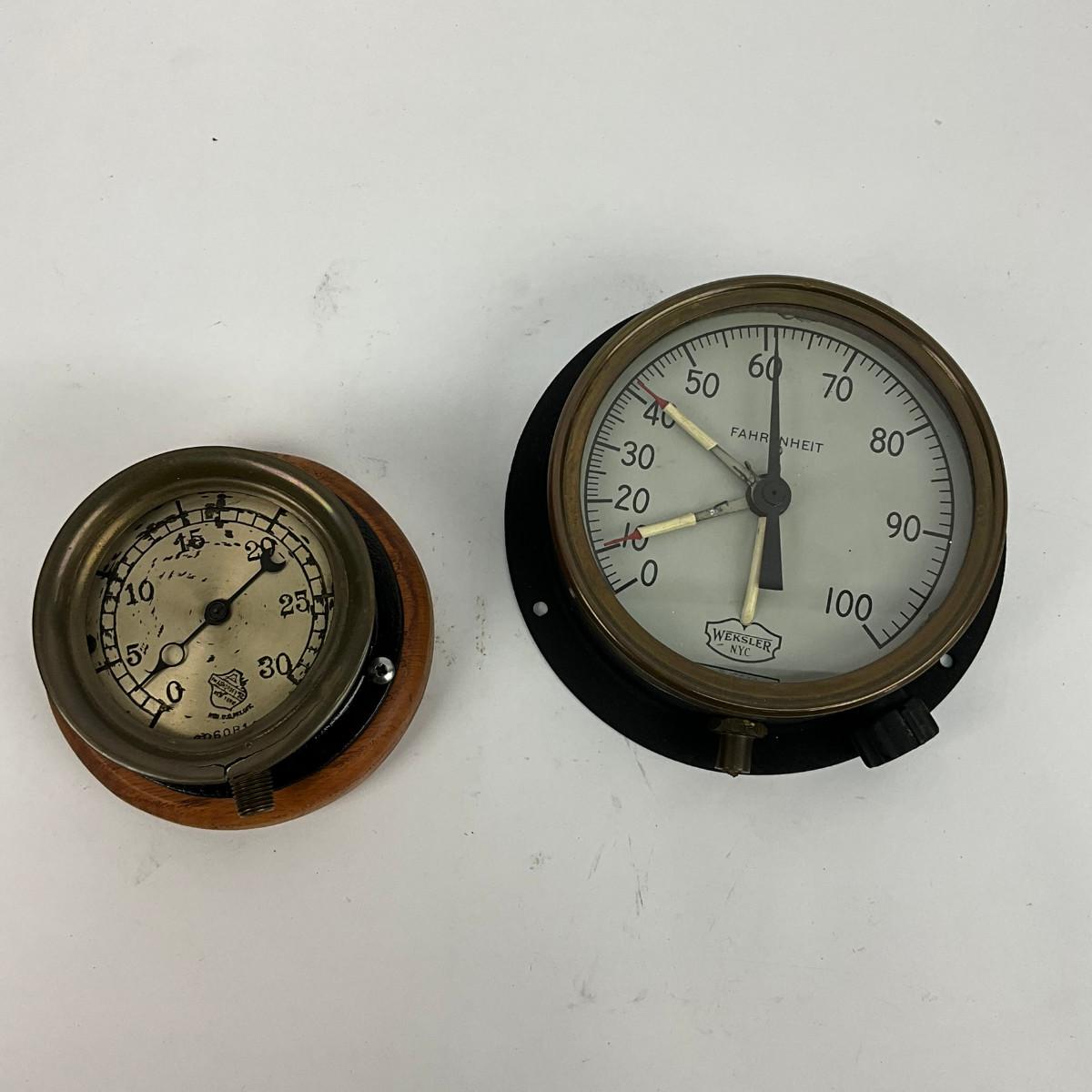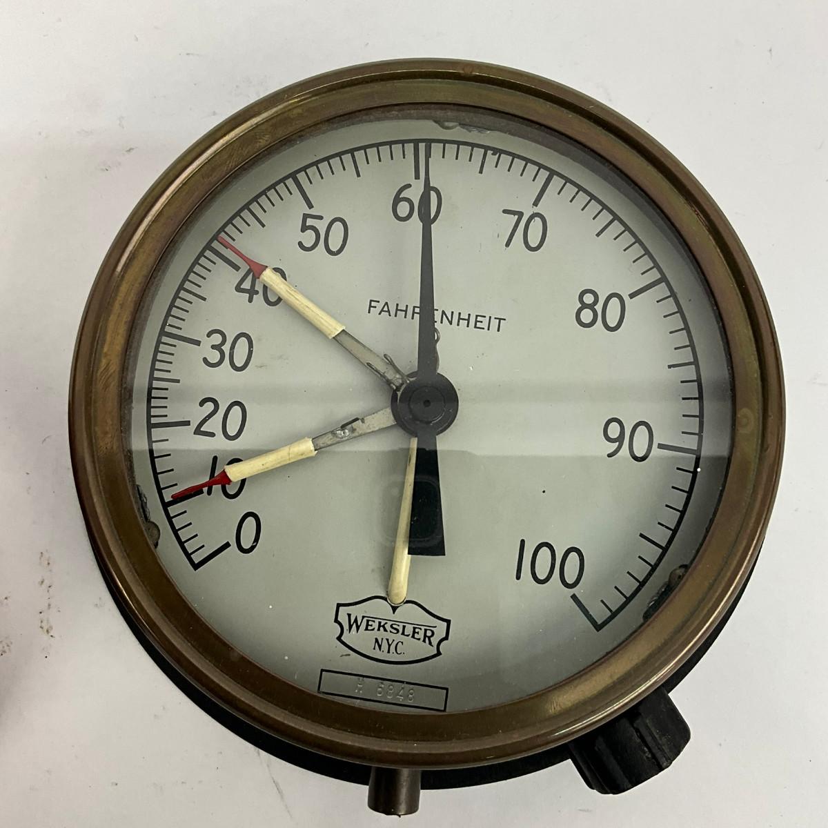 622 Pair Of Two Athcroft & Weksler New York Farenheight & Pressure Gauges