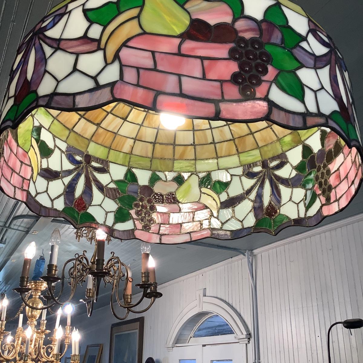 Vintage Reproduction Tiffany Style Hanging Lamp. Electrical bulb socket not original.