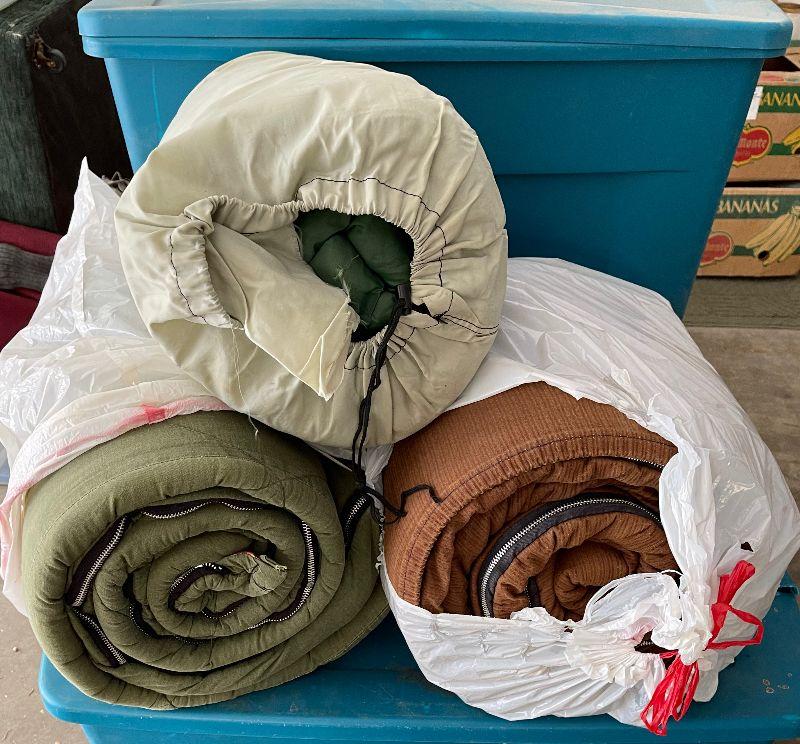 #622G 3 VINTAGE Sleeping Bags, 2 fabric and 1 polyester synthetic