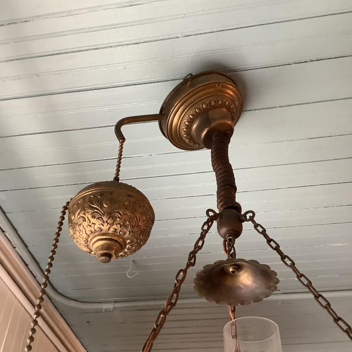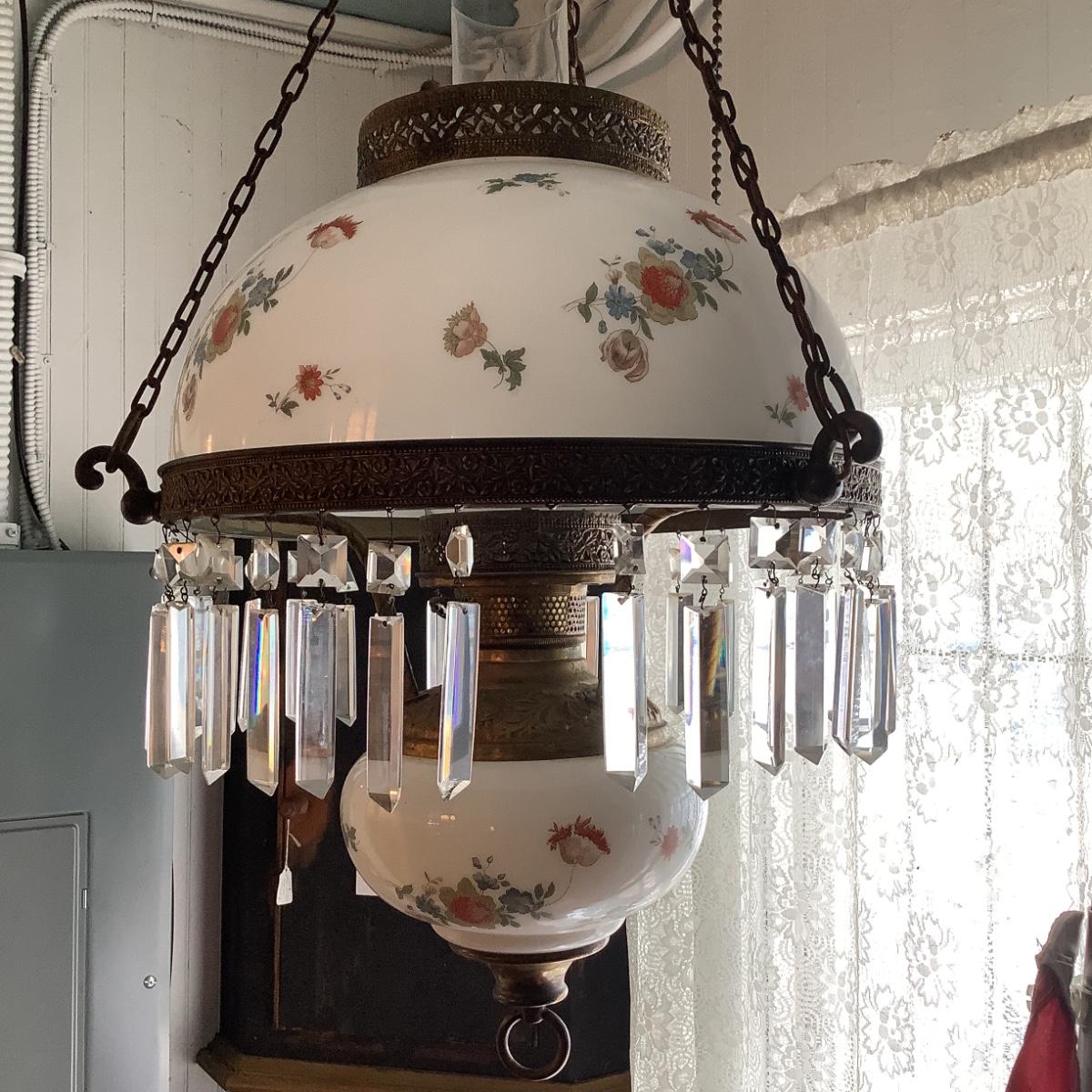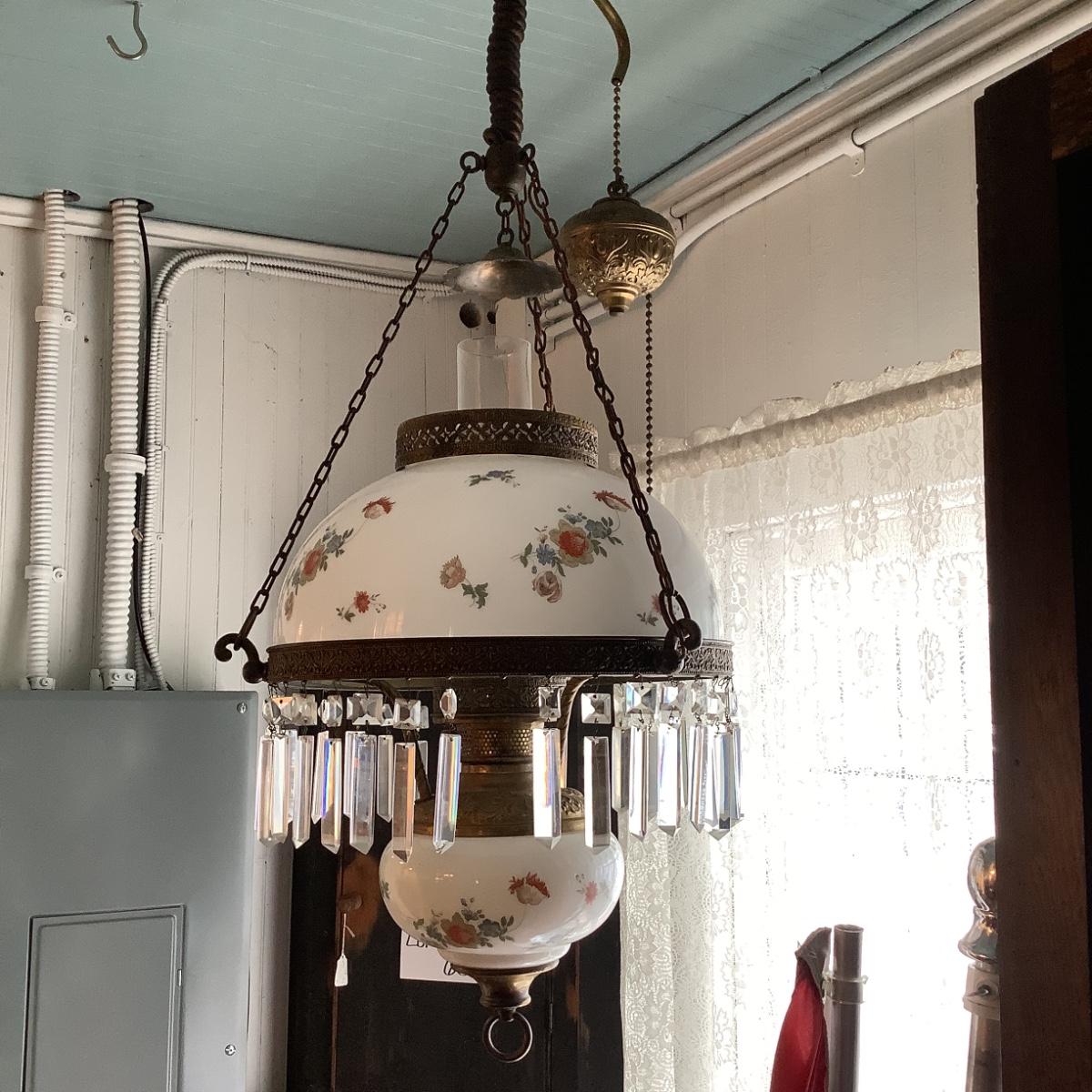 623 Antique Electrified Hanging Lamp w/Floral Design