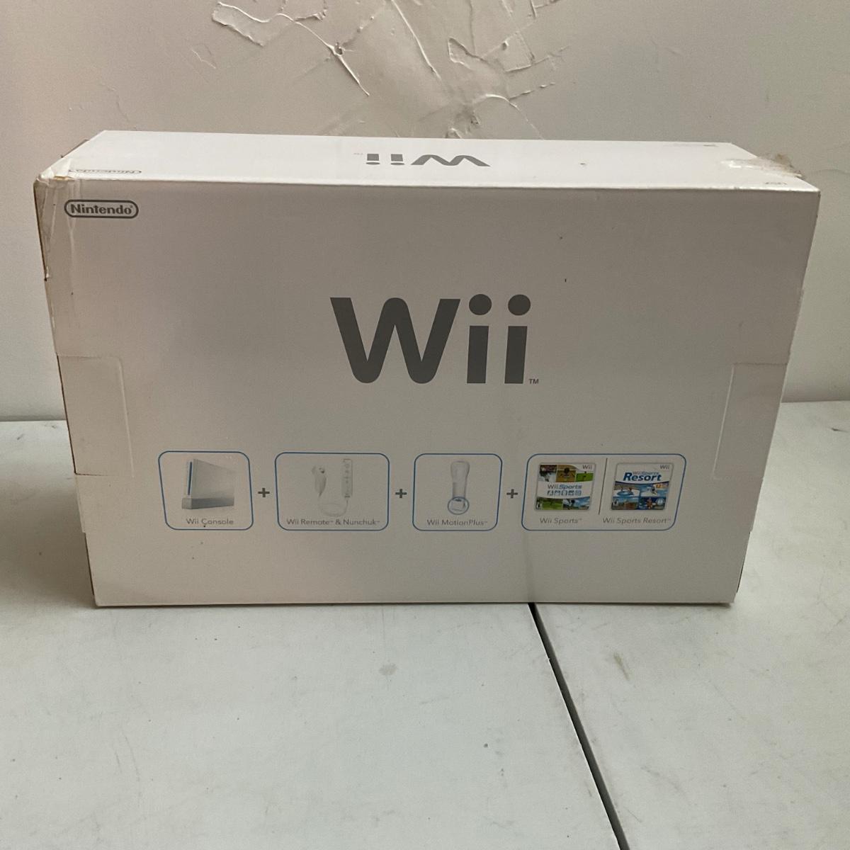 comes with gaming console , one controller and Wii Sports and Resort
