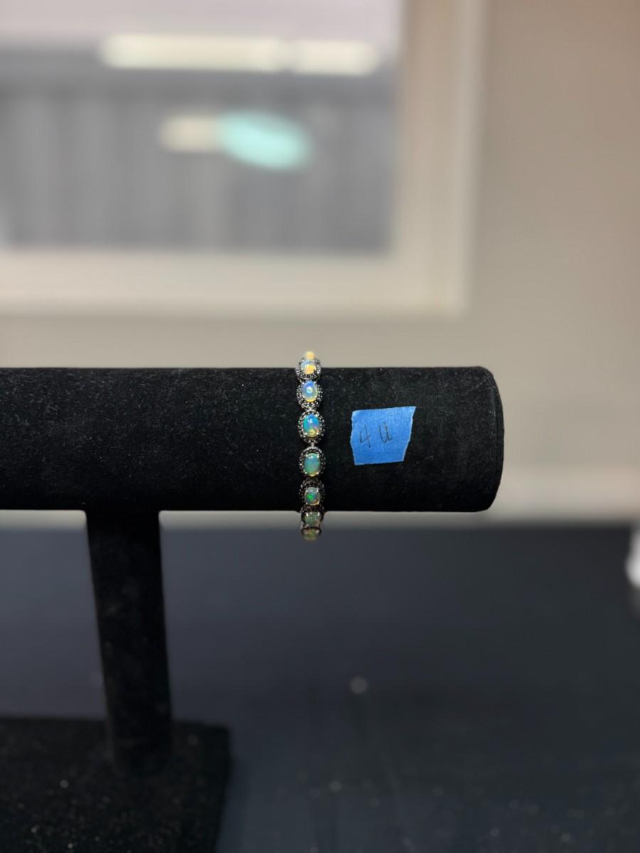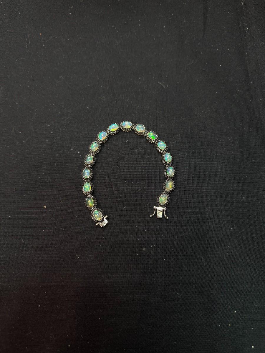 6.25CTW Oval Cabochon Eth opal and 3CTW Round Black Spinel Sterlin (925)