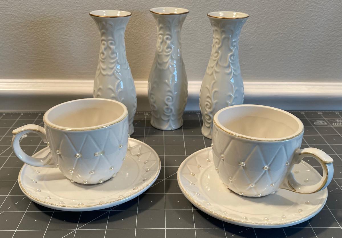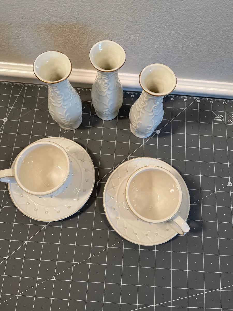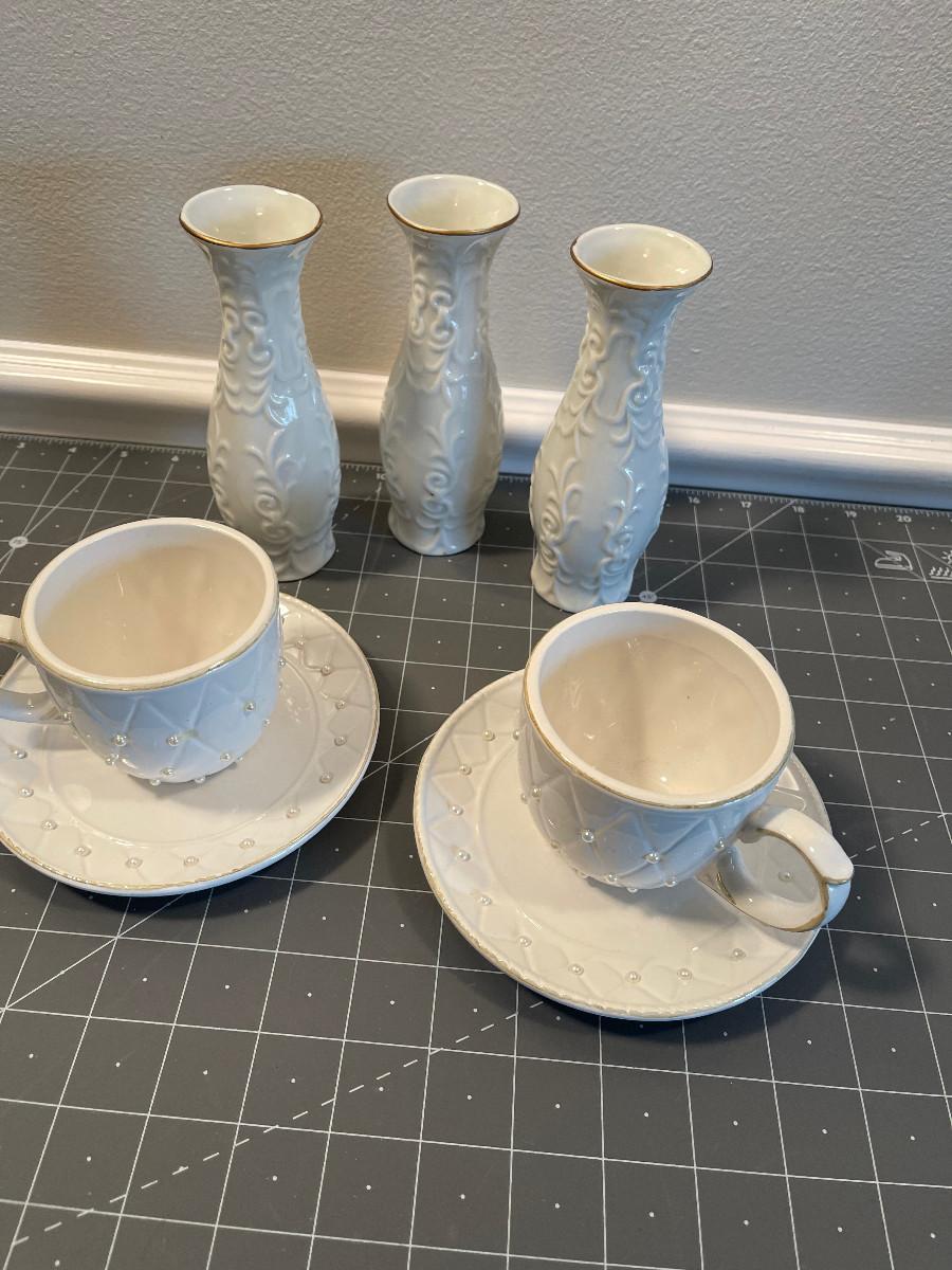 #626 Tea Cups and Bud Vases - White Lot, China