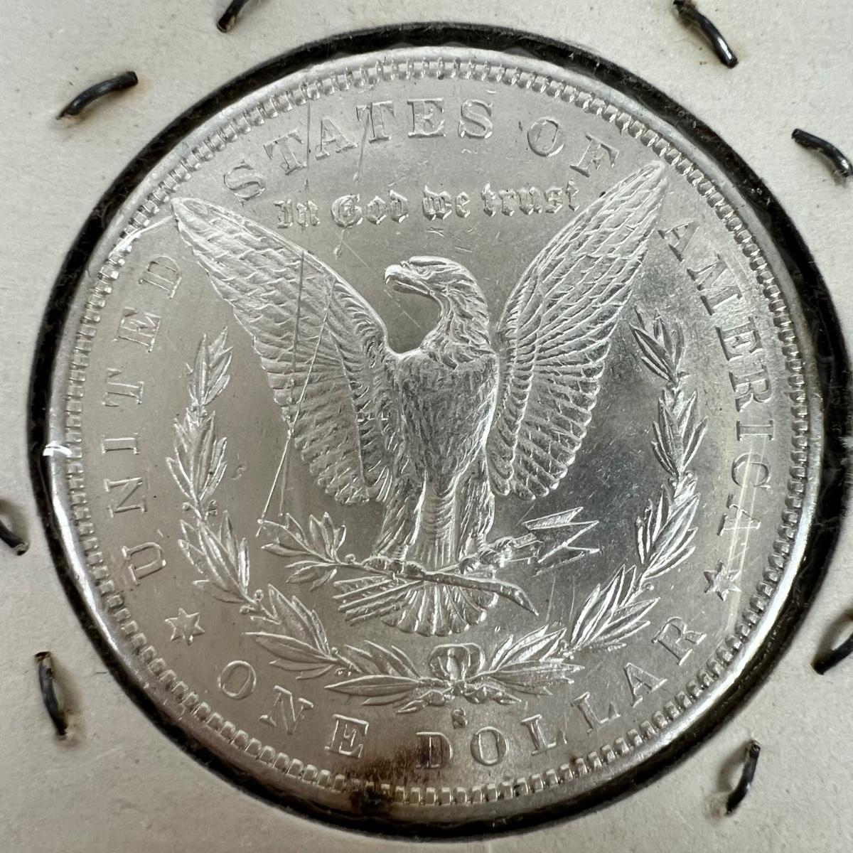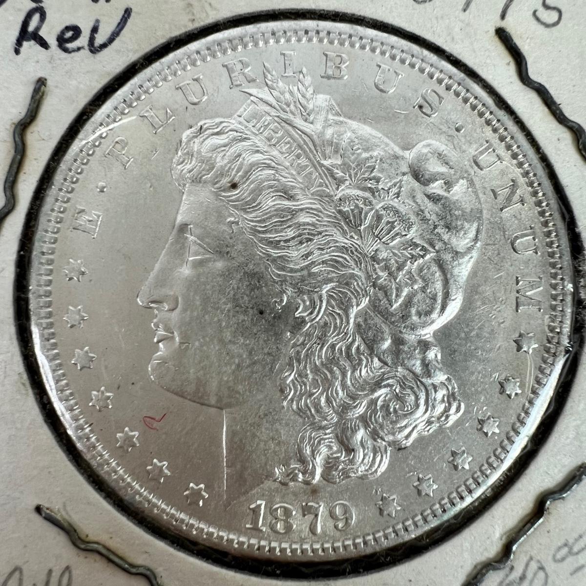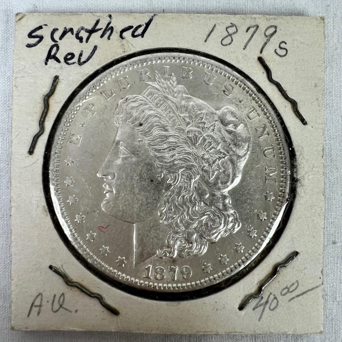 1879-S AU Morgan Silver Dollar. Reversed side scratched.