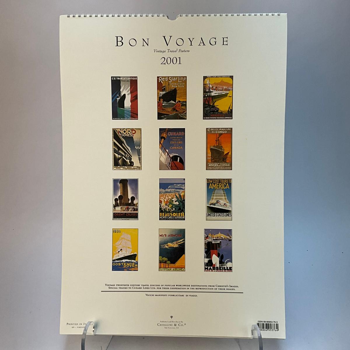 627 Cavallini & Co. 2001 Bon Voyage Posters Wall Calender
