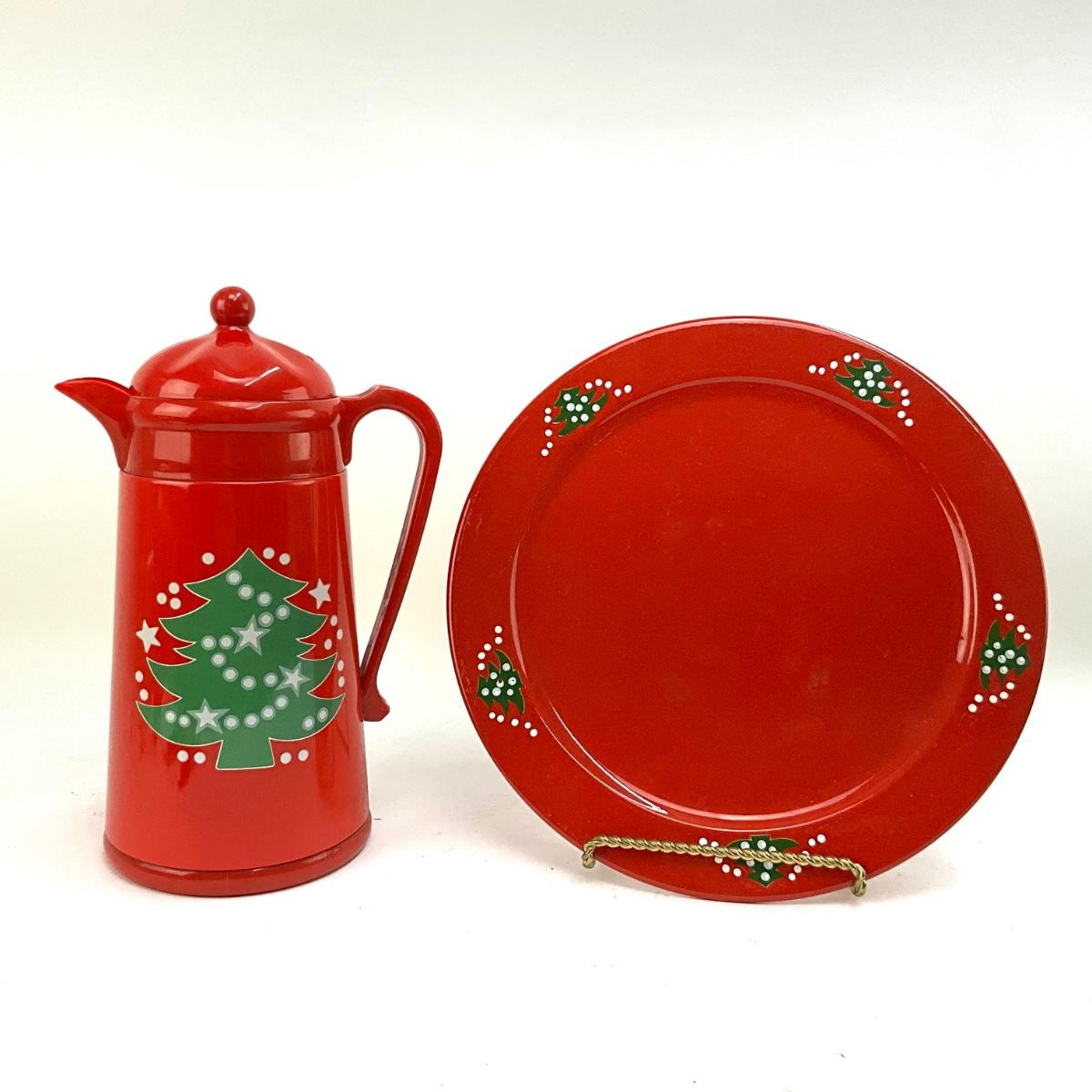 627 Waechtersbach German Red Christmas Carafe and Charger