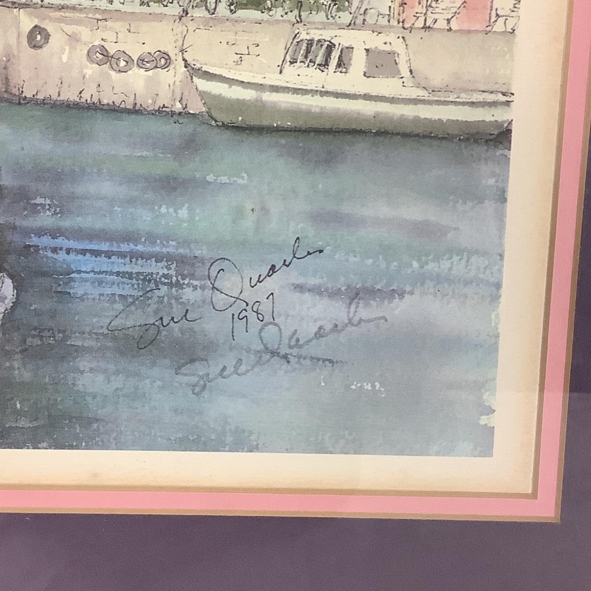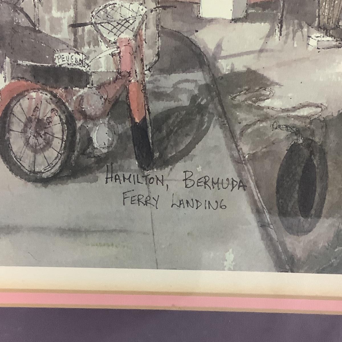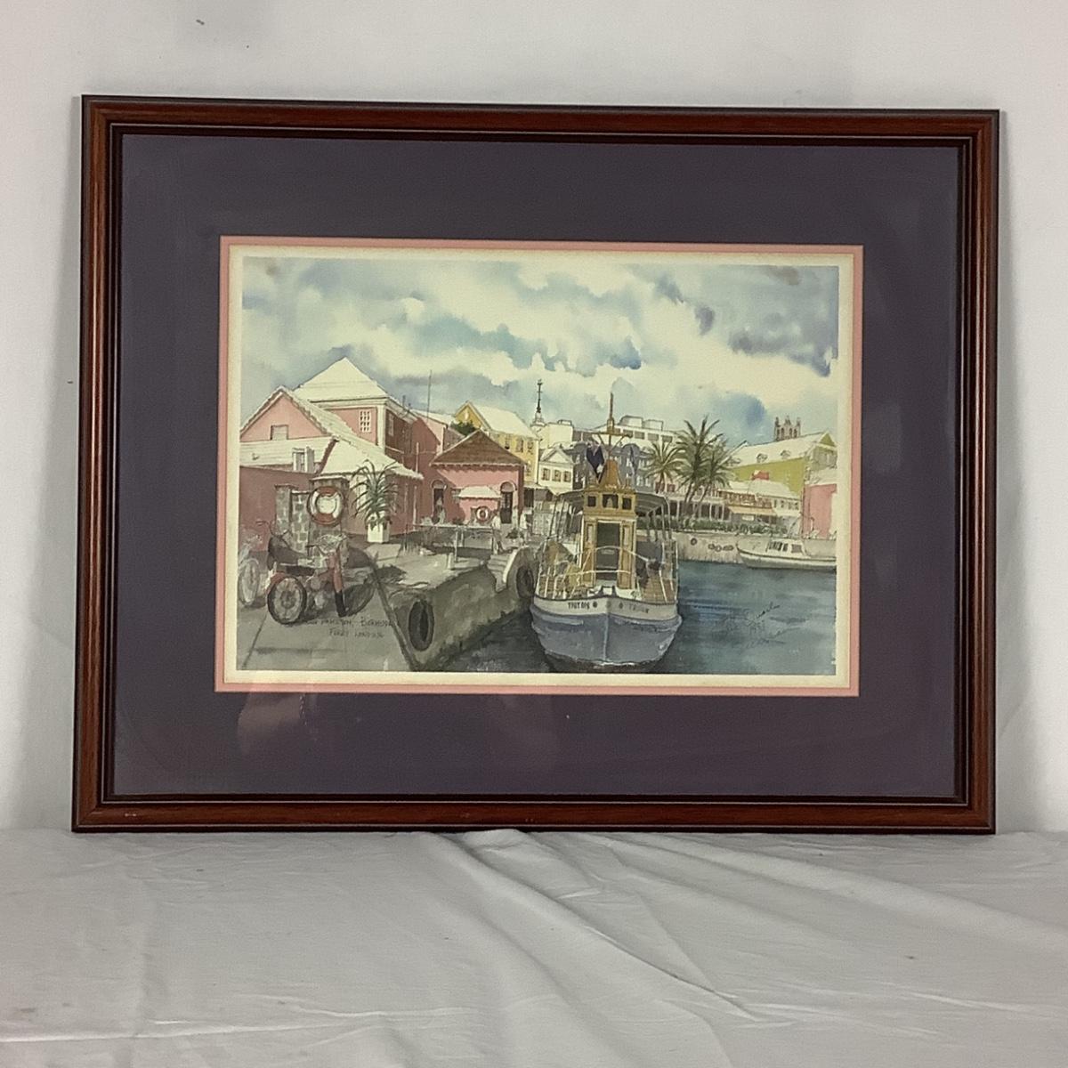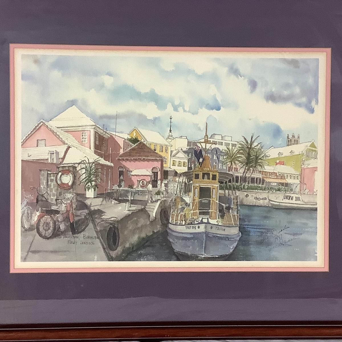 Vintage Signed Watercolor Print by Sue Quarles 1987. HamiltonB Bermuda Ferry Landing.