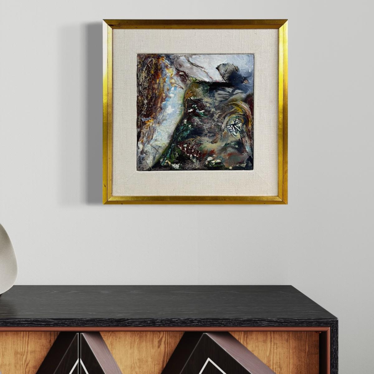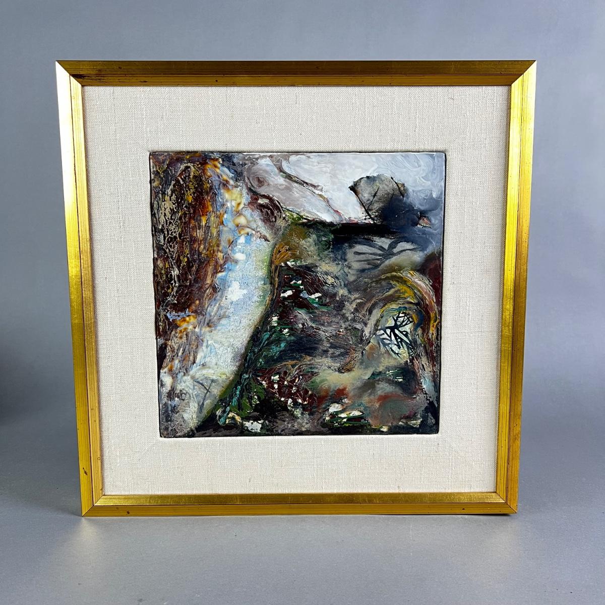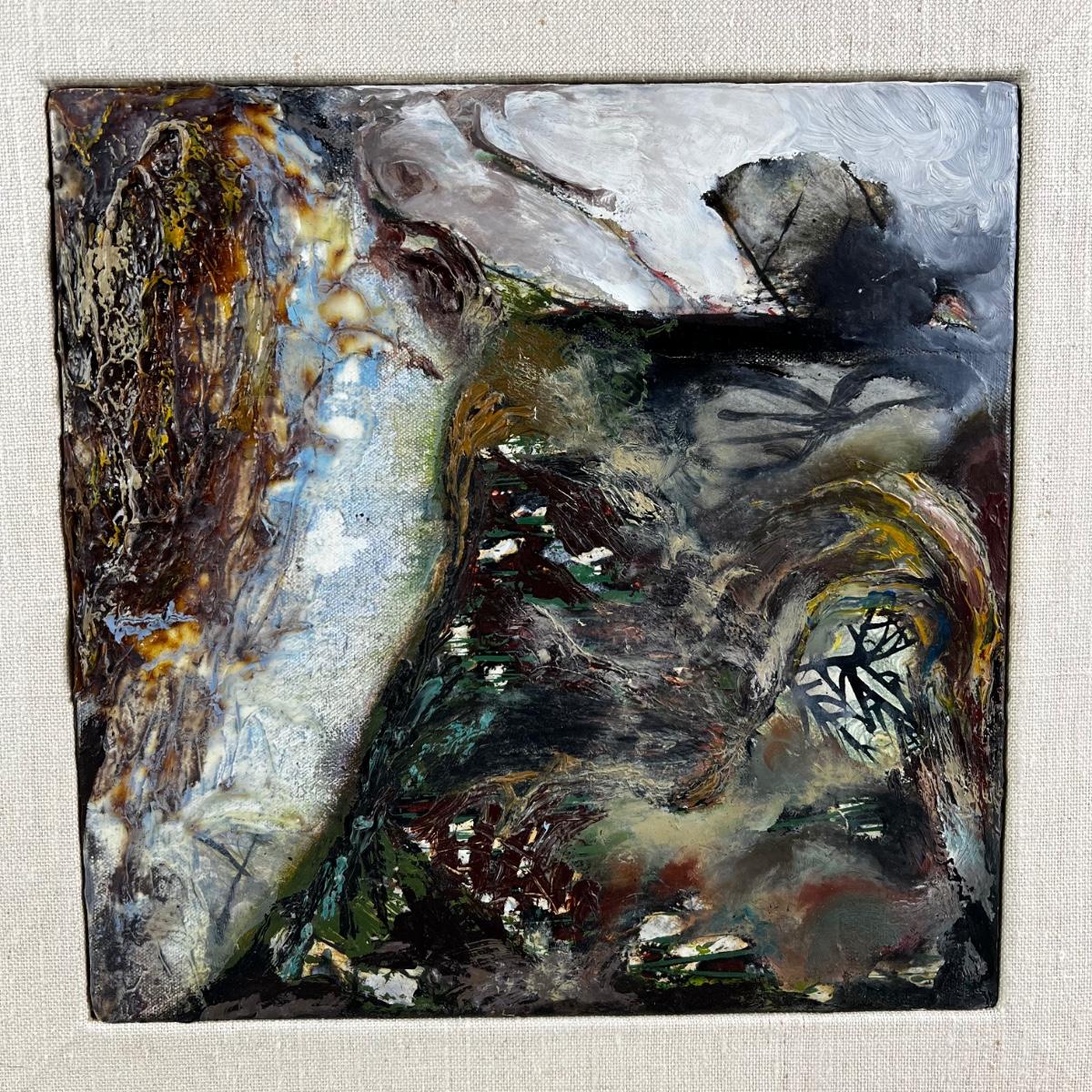 Mixed media painting is 17.5" x 17.5", signed by artist Marc Boone and dated 1990. The artist Marc Boone has had a long career spanning both the East and West coast. His paintings are interpretations of natural phenomena. He searches for the magic in nature-the Columbia Pacific region inspires his work.