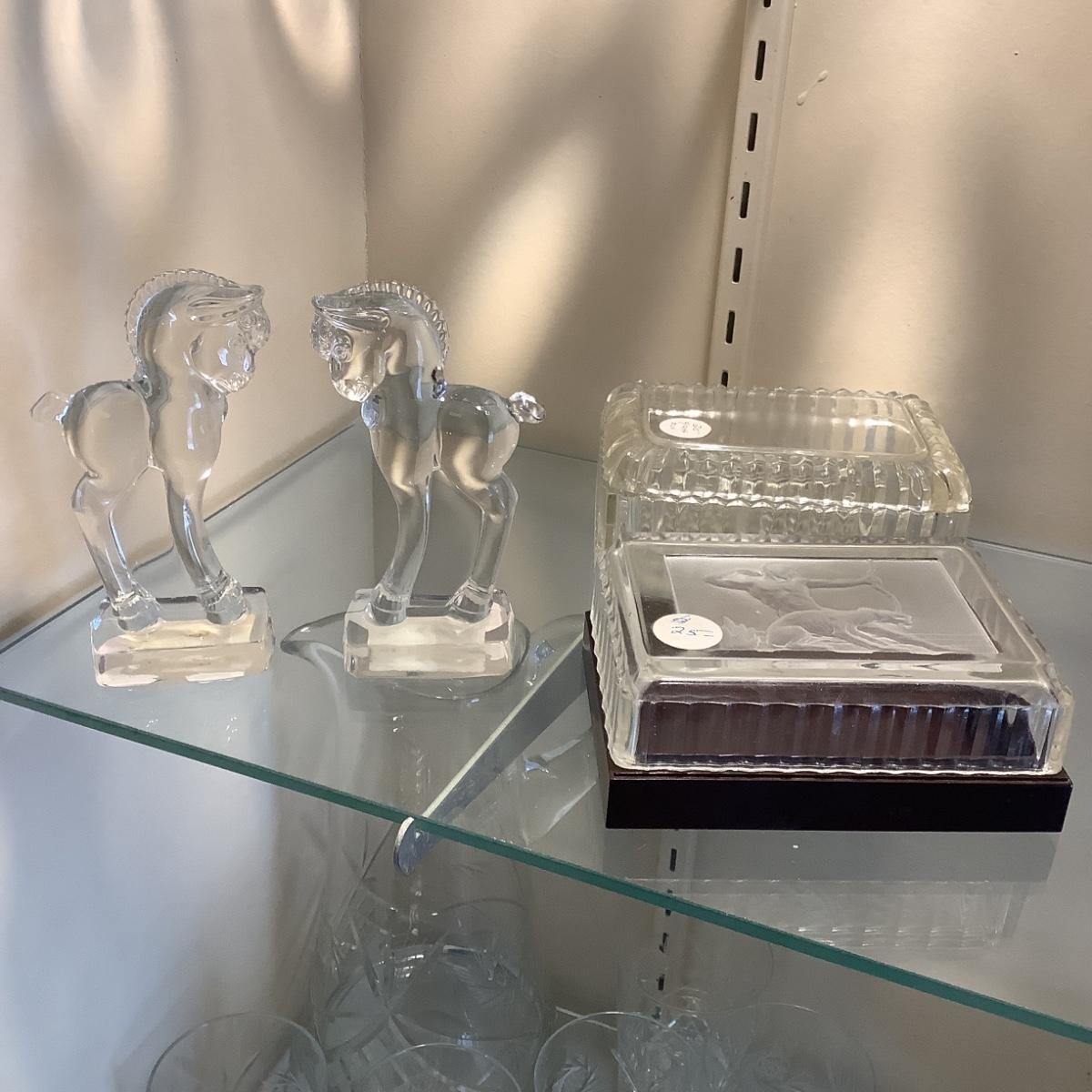 629 Pair of Heisey Standing Pony Figures with Two Glass Covered Boxes