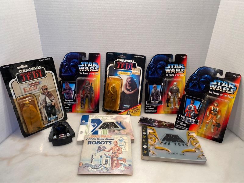 5 Vintage Kenner STAR WARS Figures in Original Packaging plus bonus booklets