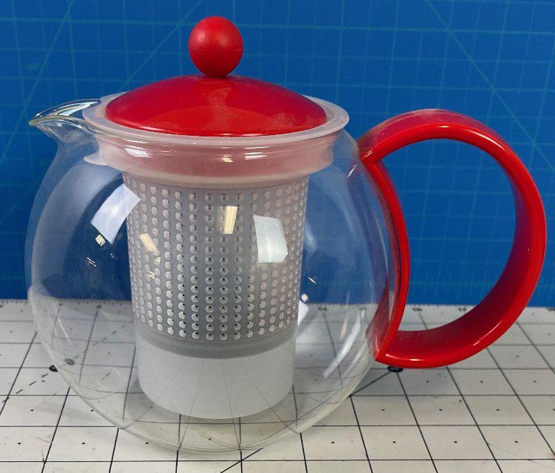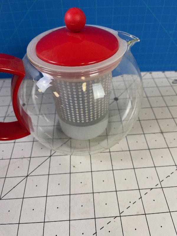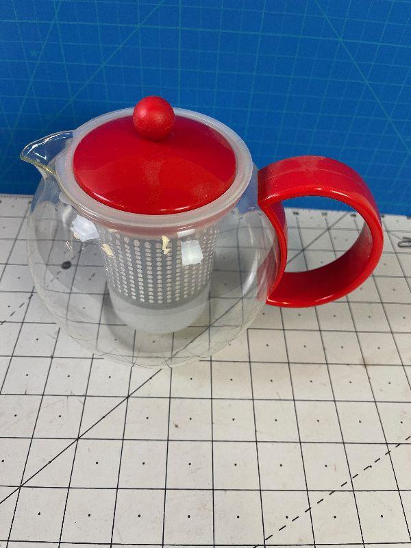 #63 Bodum Tea Pot 0 Red and Clear Glass