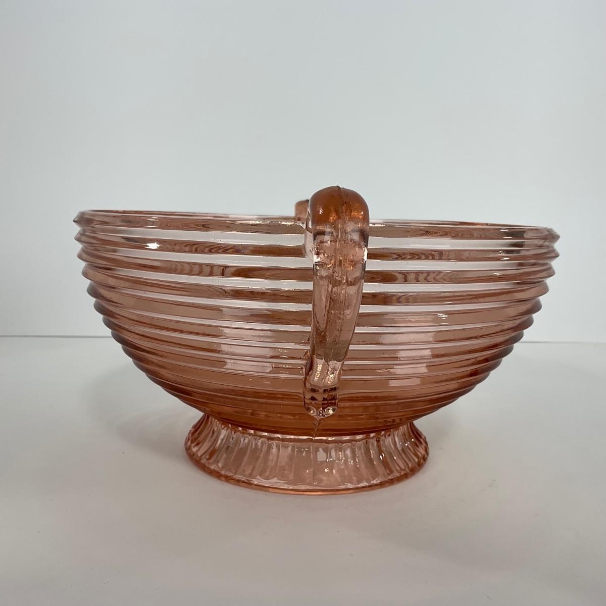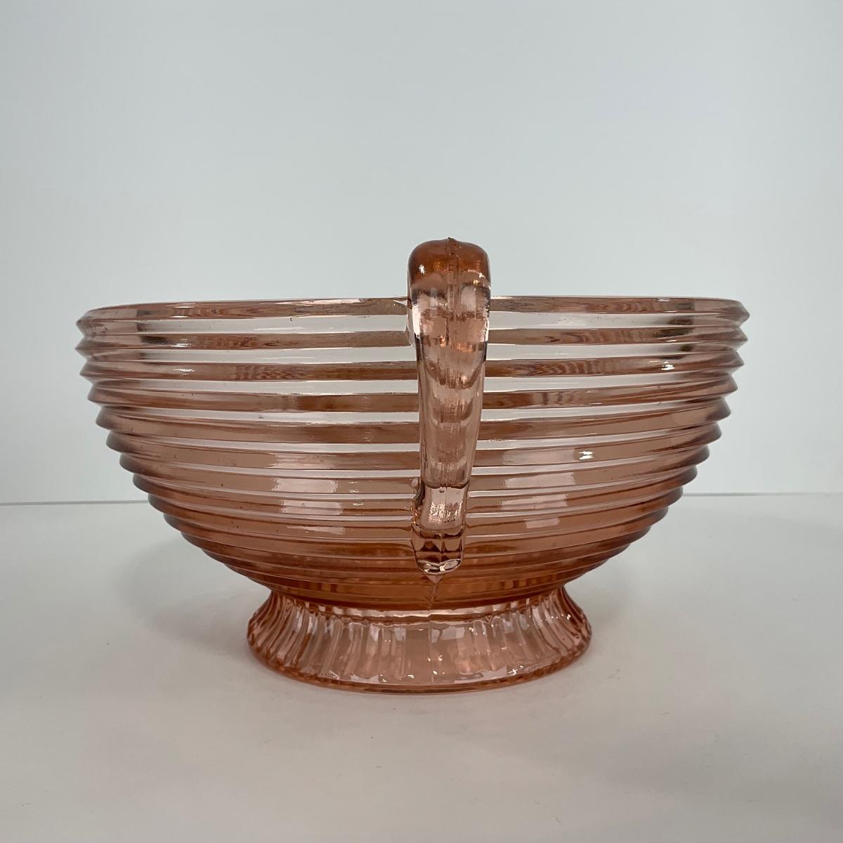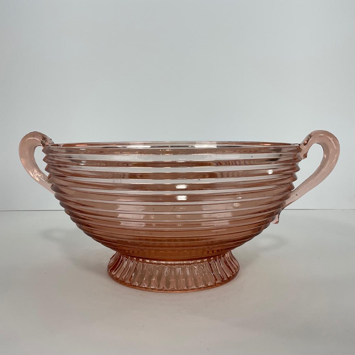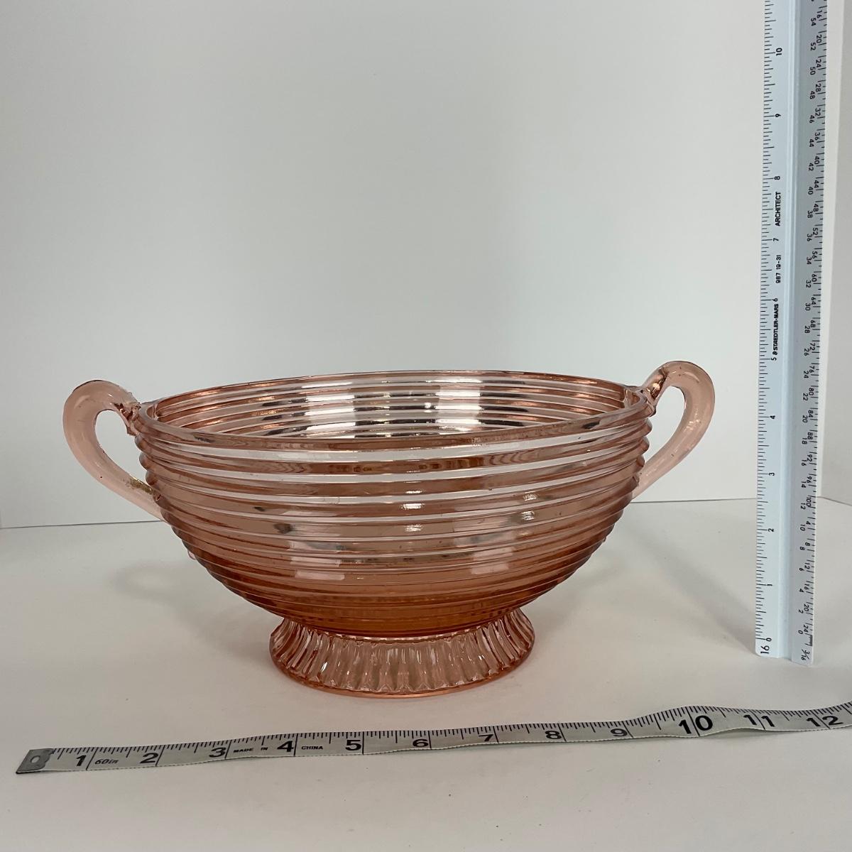 One large pink depression glass Manhattan fruit bowl. In amazing condition. Please see photos for details and condition. ::: Shipping is available on this lot. If you require shipping you must let us know at the close of the auction. We will coordinate with you after the item has been won. Shipping fees will include insurance up to or exceeding the value of all items being mailed. If you have any questions regarding this lot please contact the auctioneer either via this website, by direct email or by phone. PICK UP TIMES and other important information can be found in the TERMS and DESCRIPTION of the auction. Please take a look for pertinent information. Thanks!