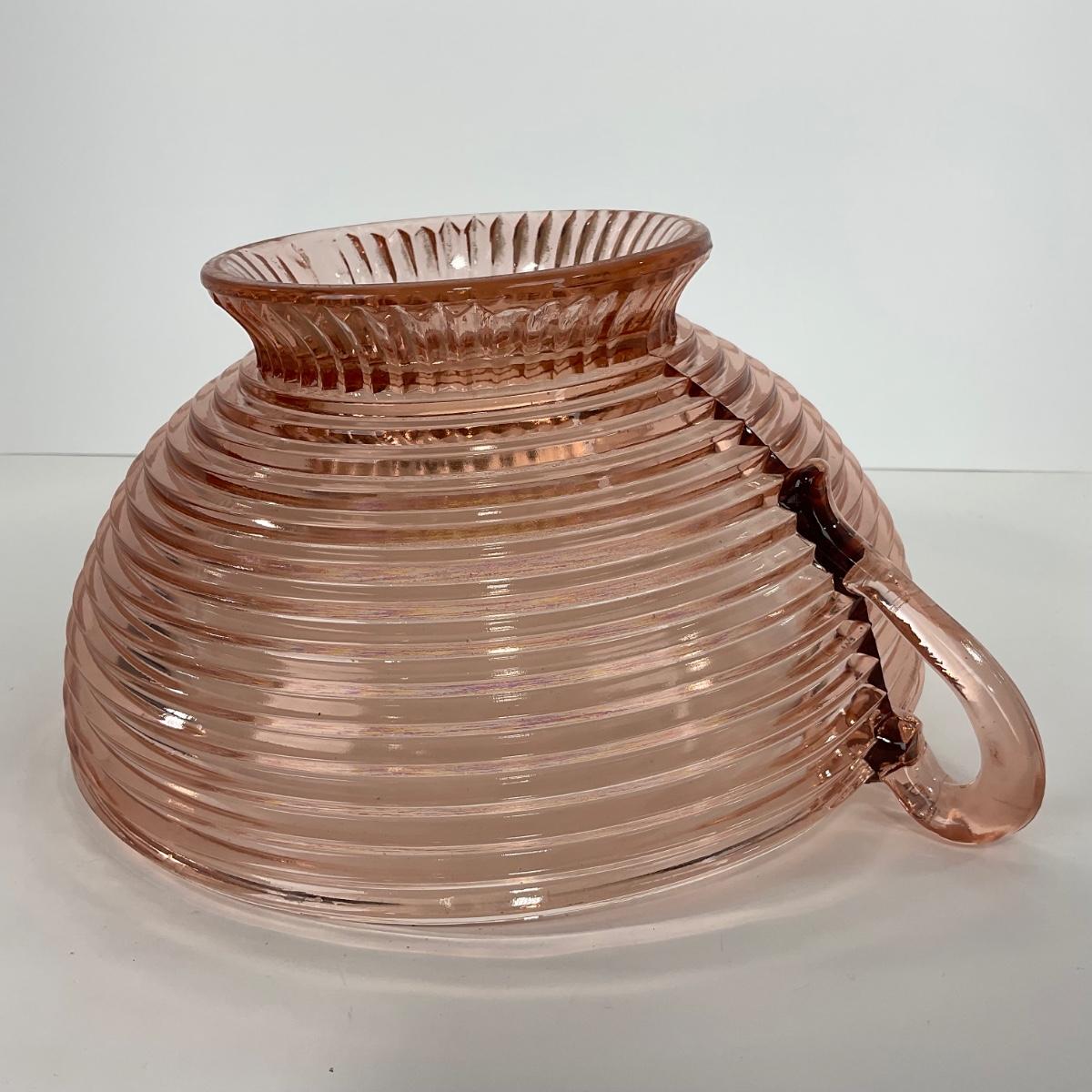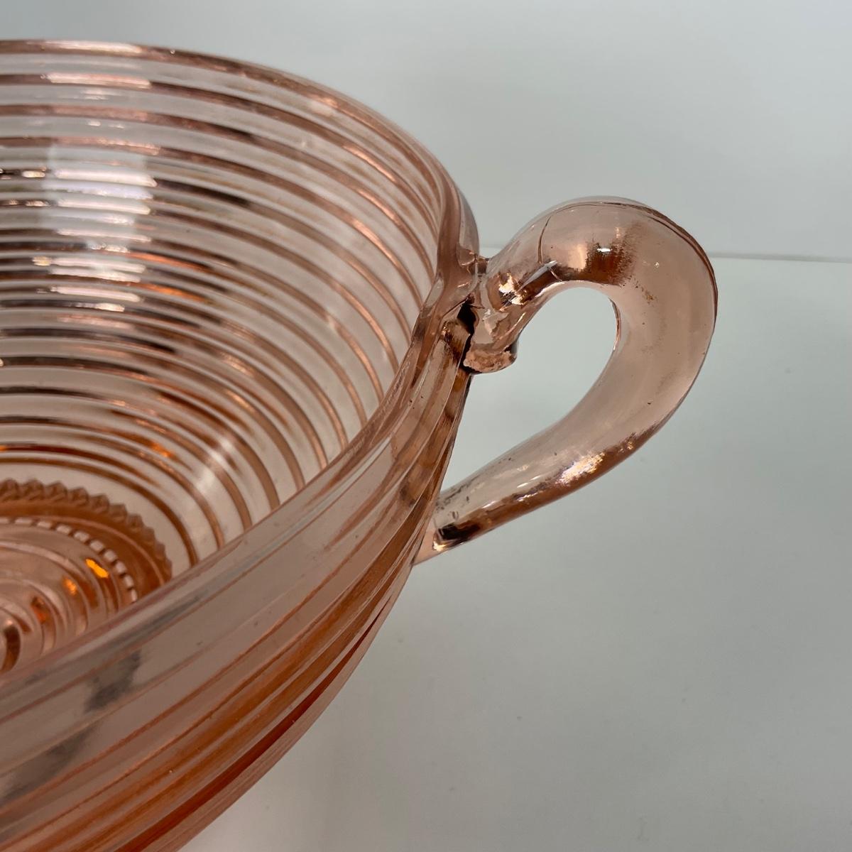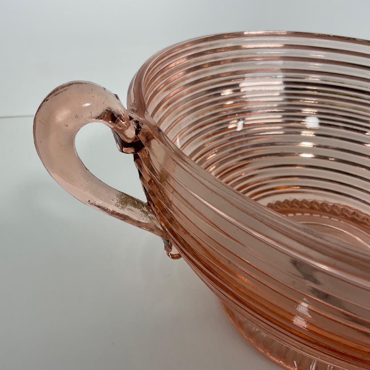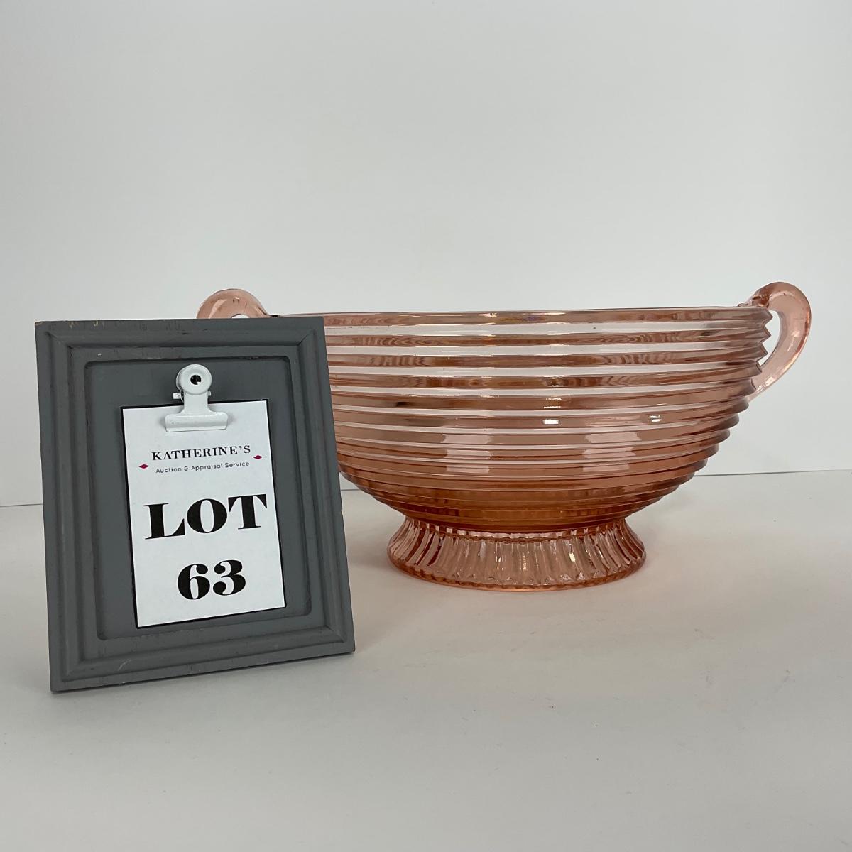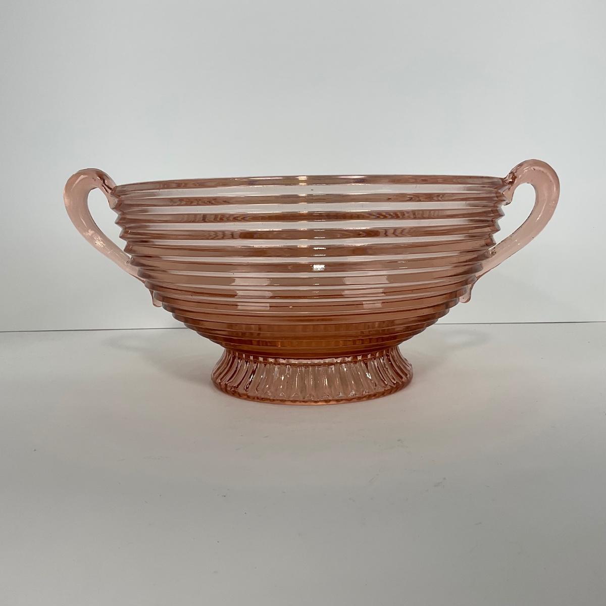One large pink depression glass Manhattan fruit bowl. In amazing condition. Please see photos for details and condition. ::: Shipping is available on this lot. If you require shipping you must let us know at the close of the auction. We will coordinate with you after the item has been won. Shipping fees will include insurance up to or exceeding the value of all items being mailed. If you have any questions regarding this lot please contact the auctioneer either via this website, by direct email or by phone. PICK UP TIMES and other important information can be found in the TERMS and DESCRIPTION of the auction. Please take a look for pertinent information. Thanks!