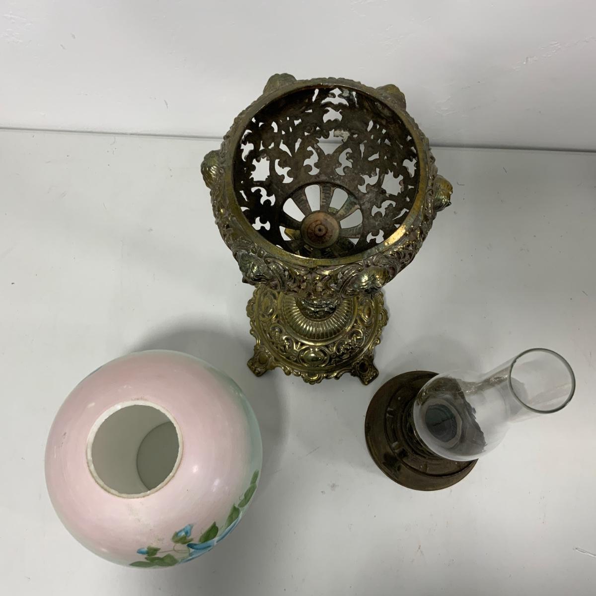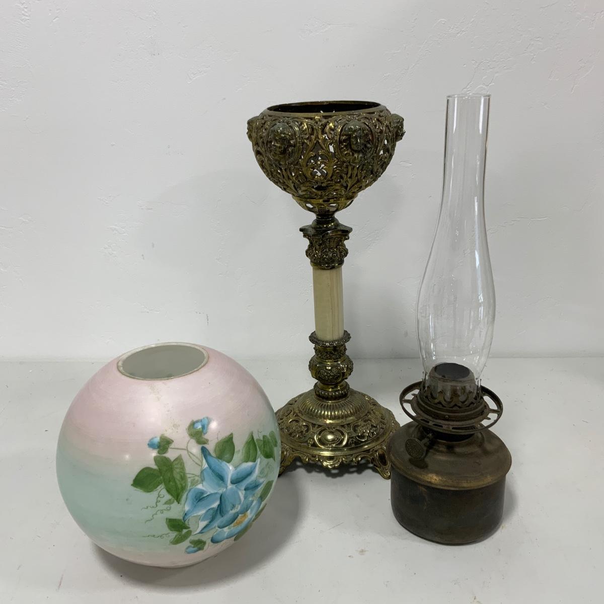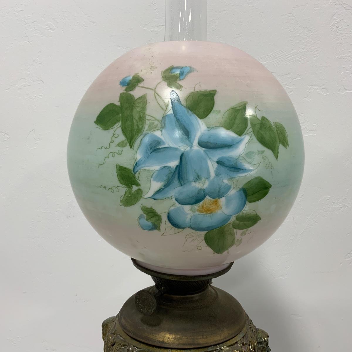 Stunning Hand Painted Banquet Lamp with an Onyx Stem. This lamp is all original and would be an incredible addition to any home looking for high quality antiques. Lamp measures 7.5” square at the base, 33” tall including chimney, and approximately 9” at it’s widest. Please see photos for details and condition. ::: Shipping is NOT available on this lot. If you have any questions regarding this lot please contact the auctioneer either via this website, by direct email or by phone. PICK UP TIMES and other important information can be found in the TERMS and DESCRIPTION of the auction. Please take a look for pertinent information. Thanks!