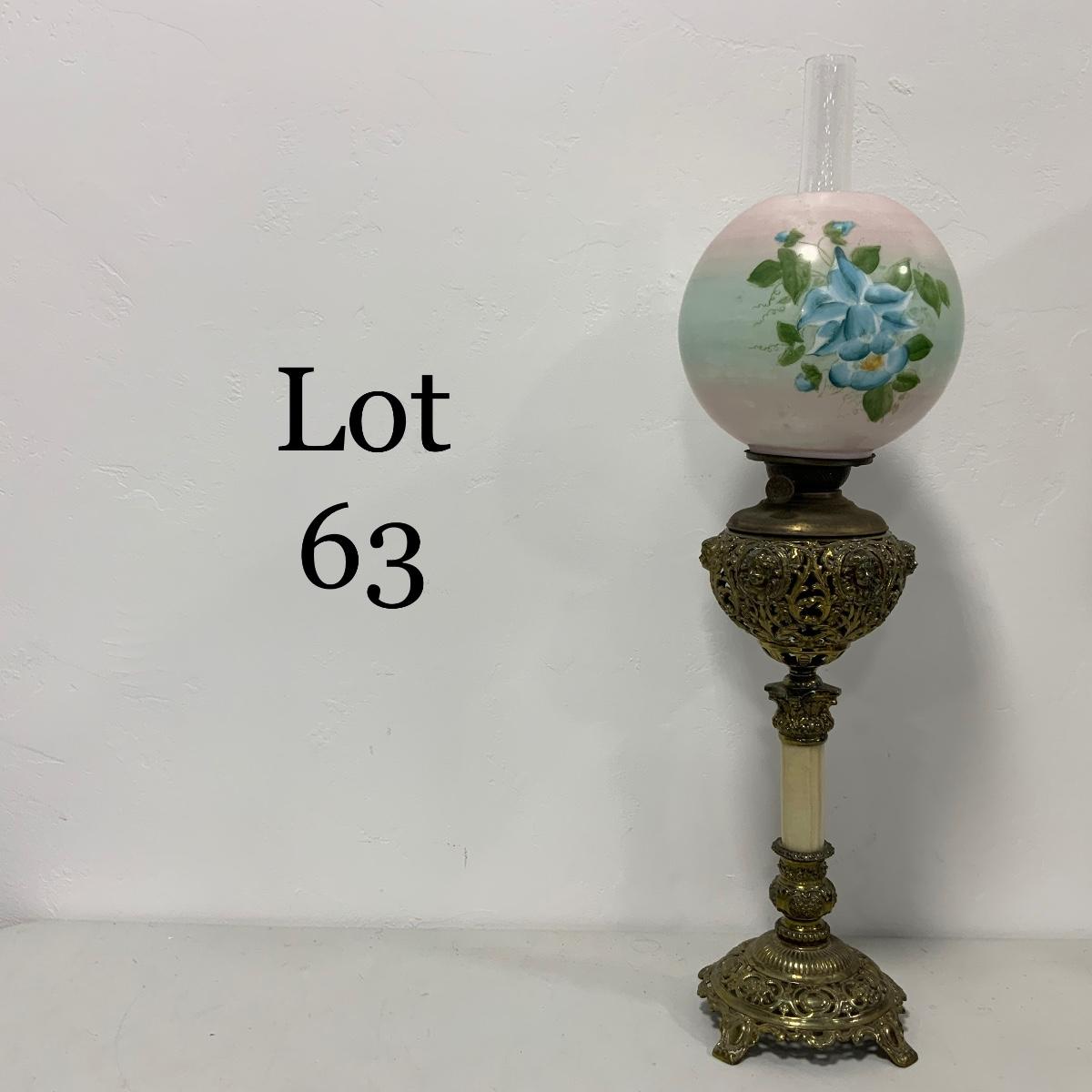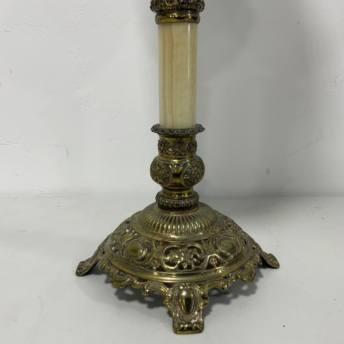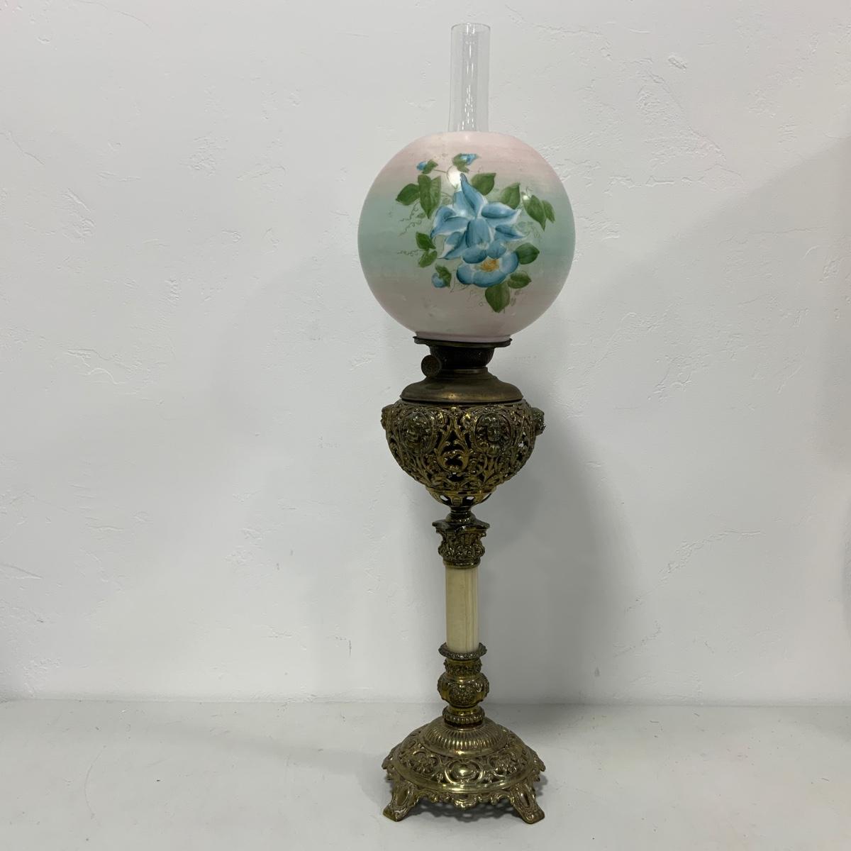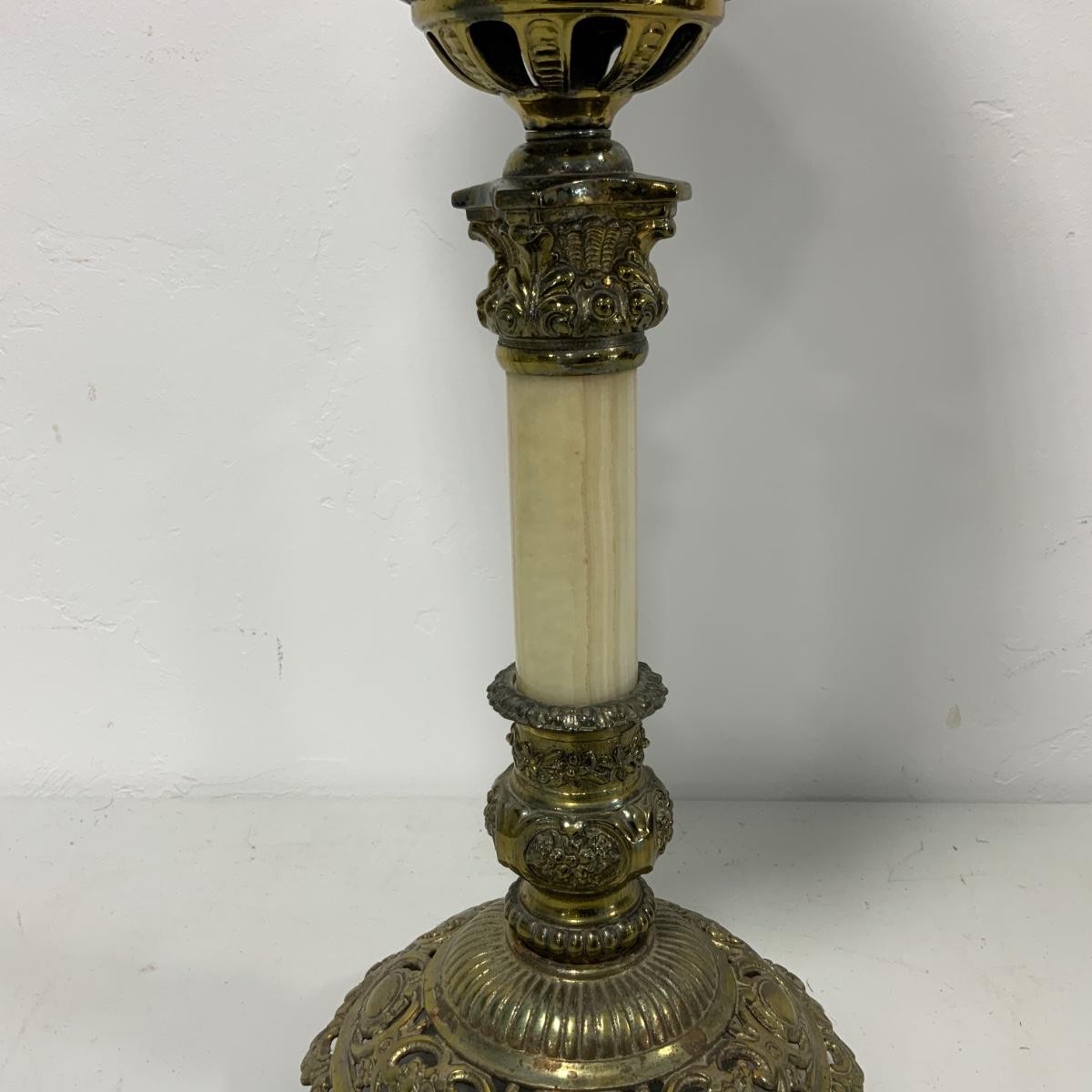 .63. Hand Painted Banquet Lamp | Onyx Stem | c. 1890