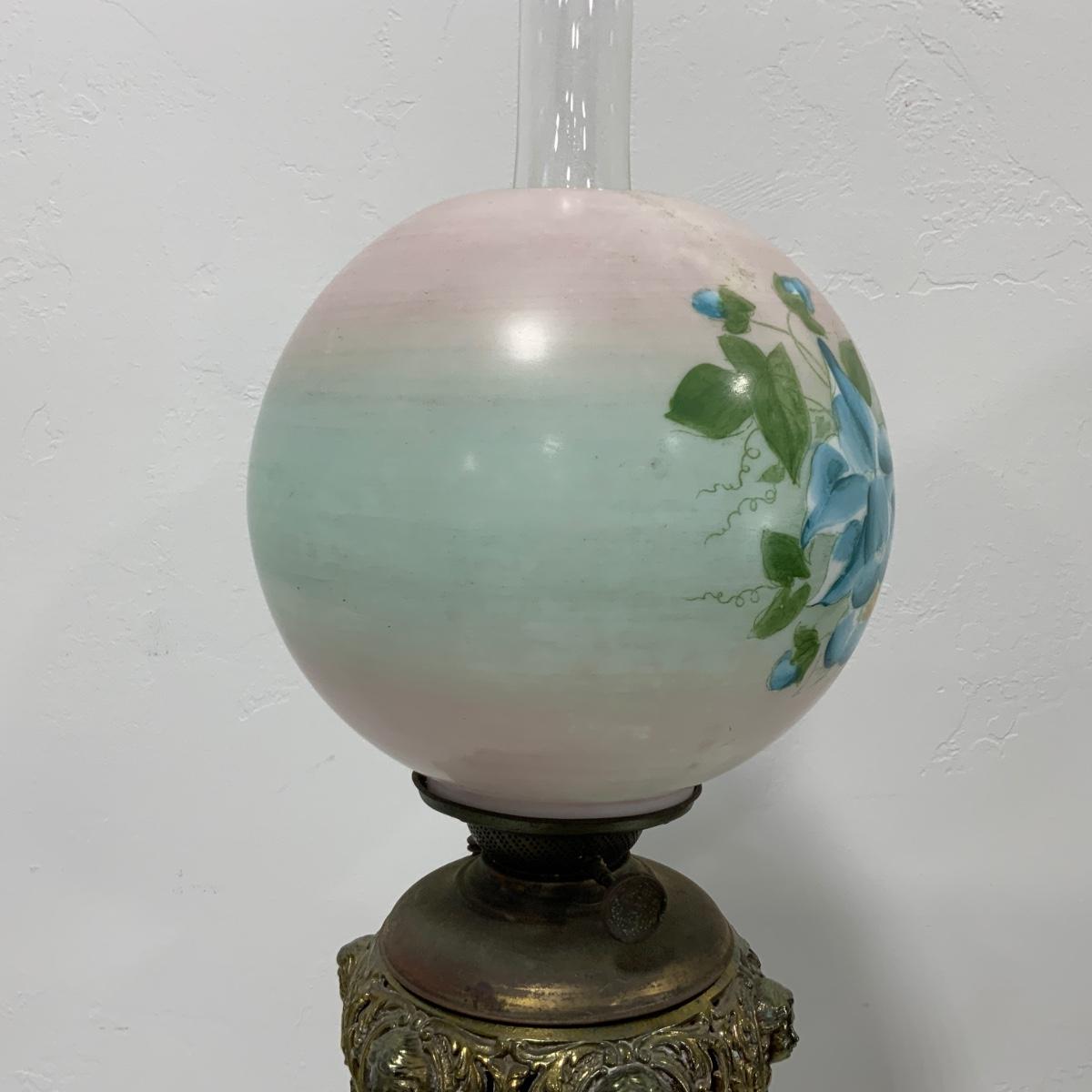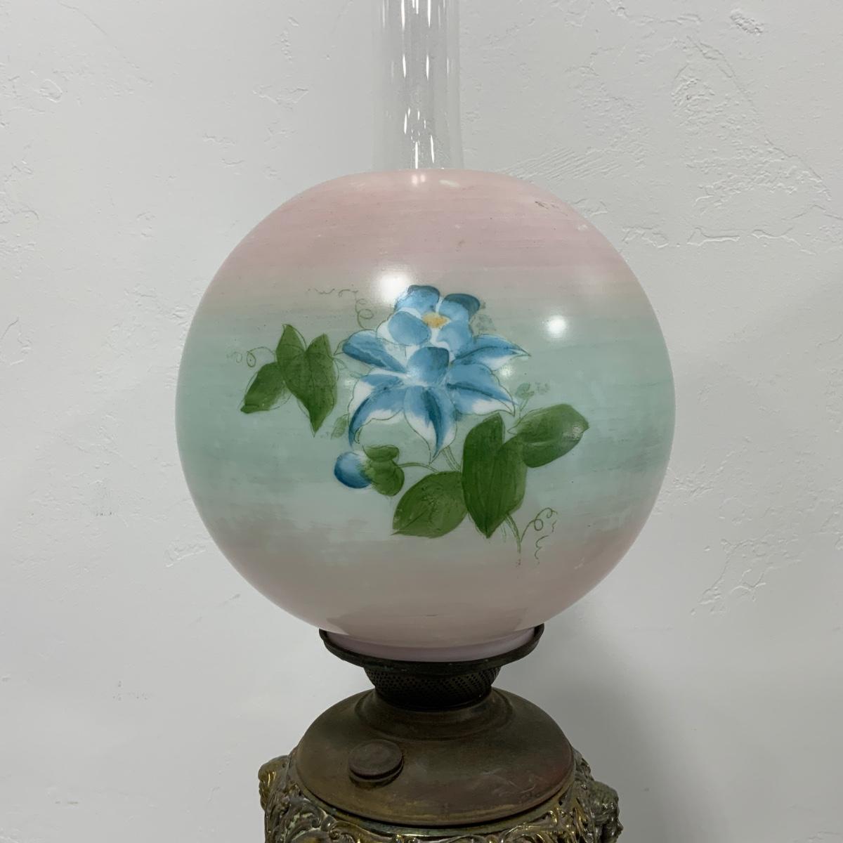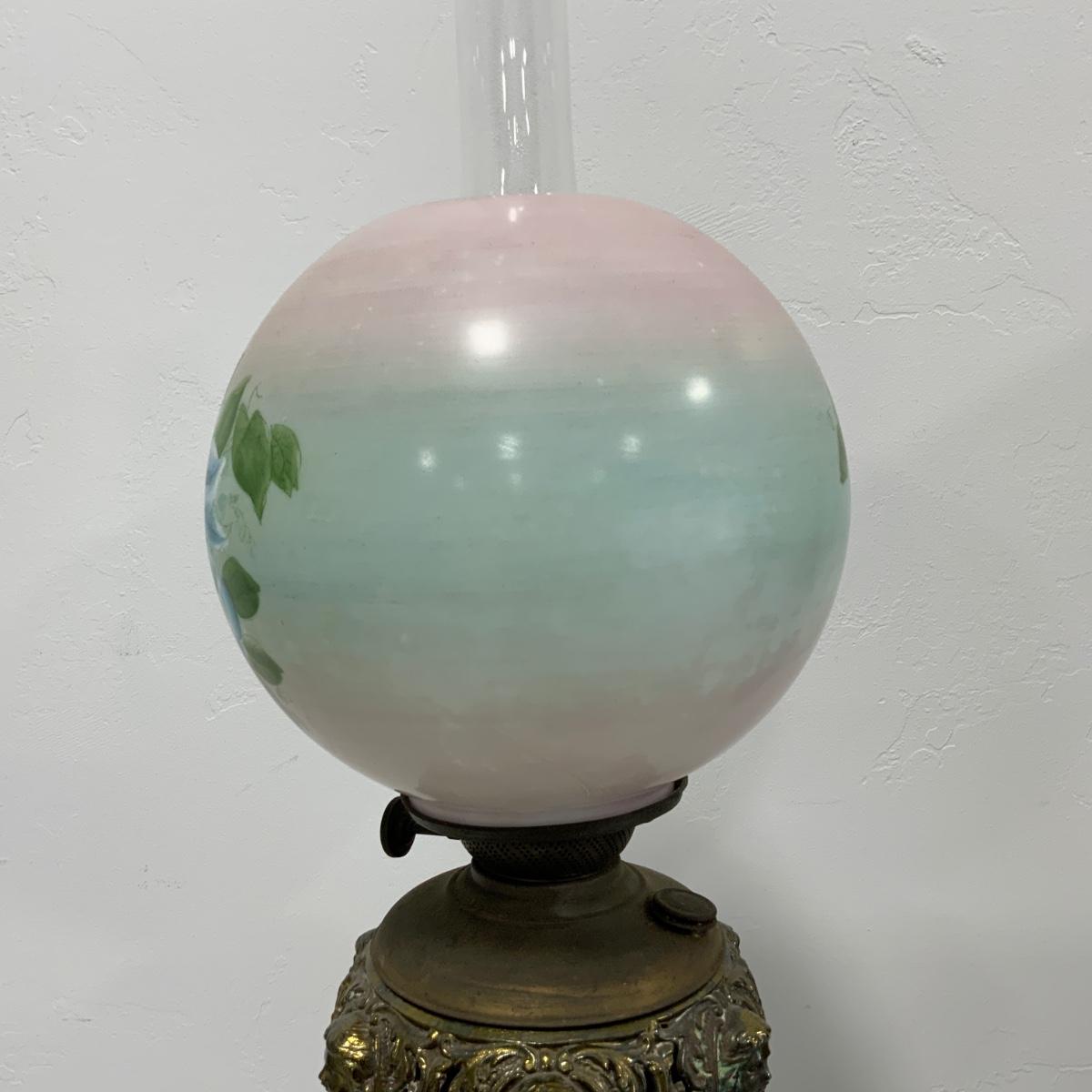 .63. Hand Painted Banquet Lamp | Onyx Stem | c. 1890
